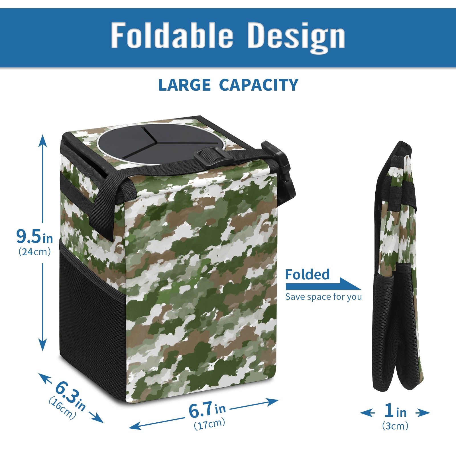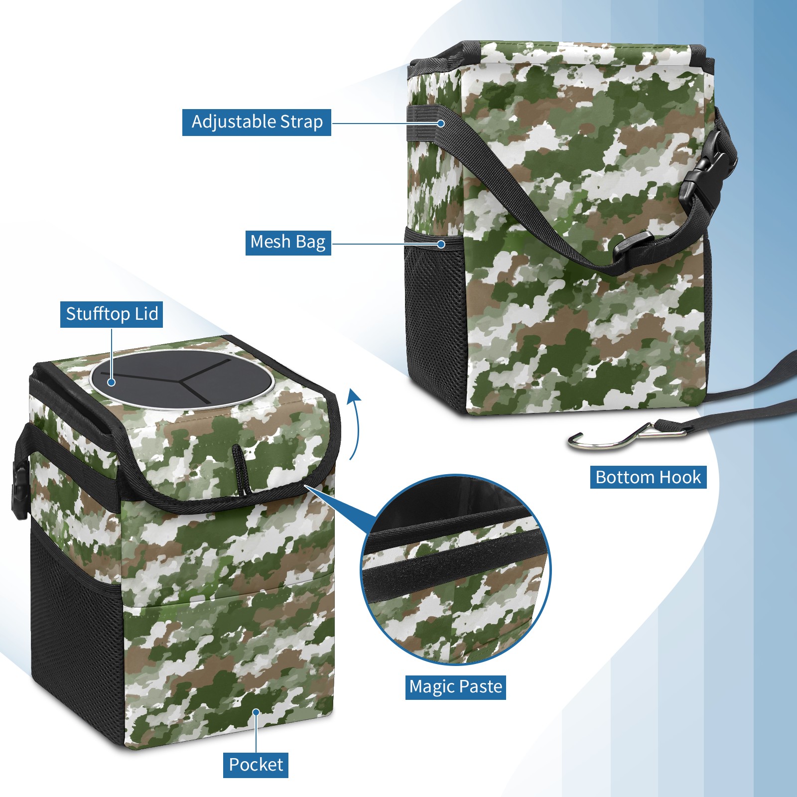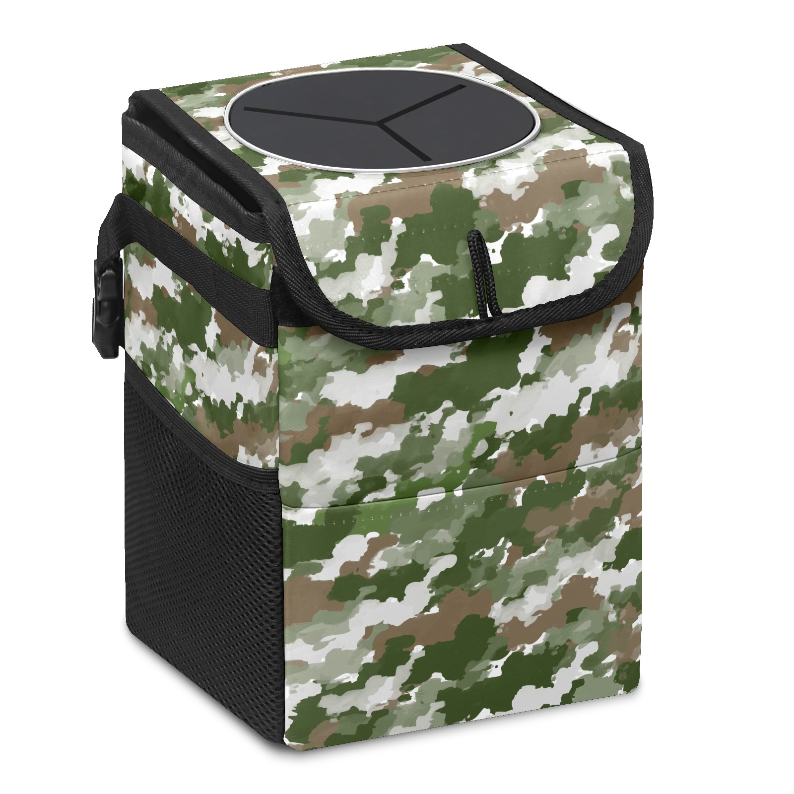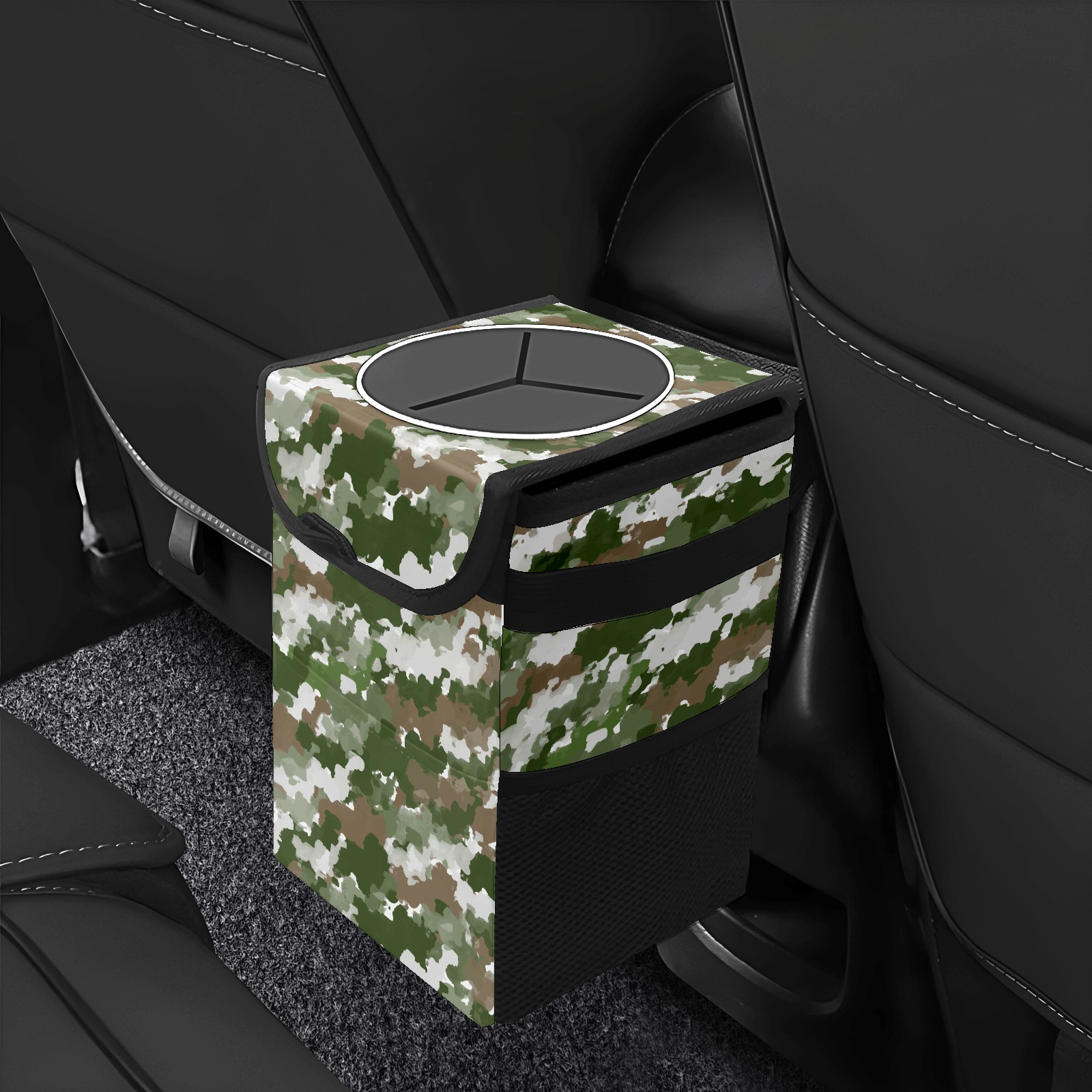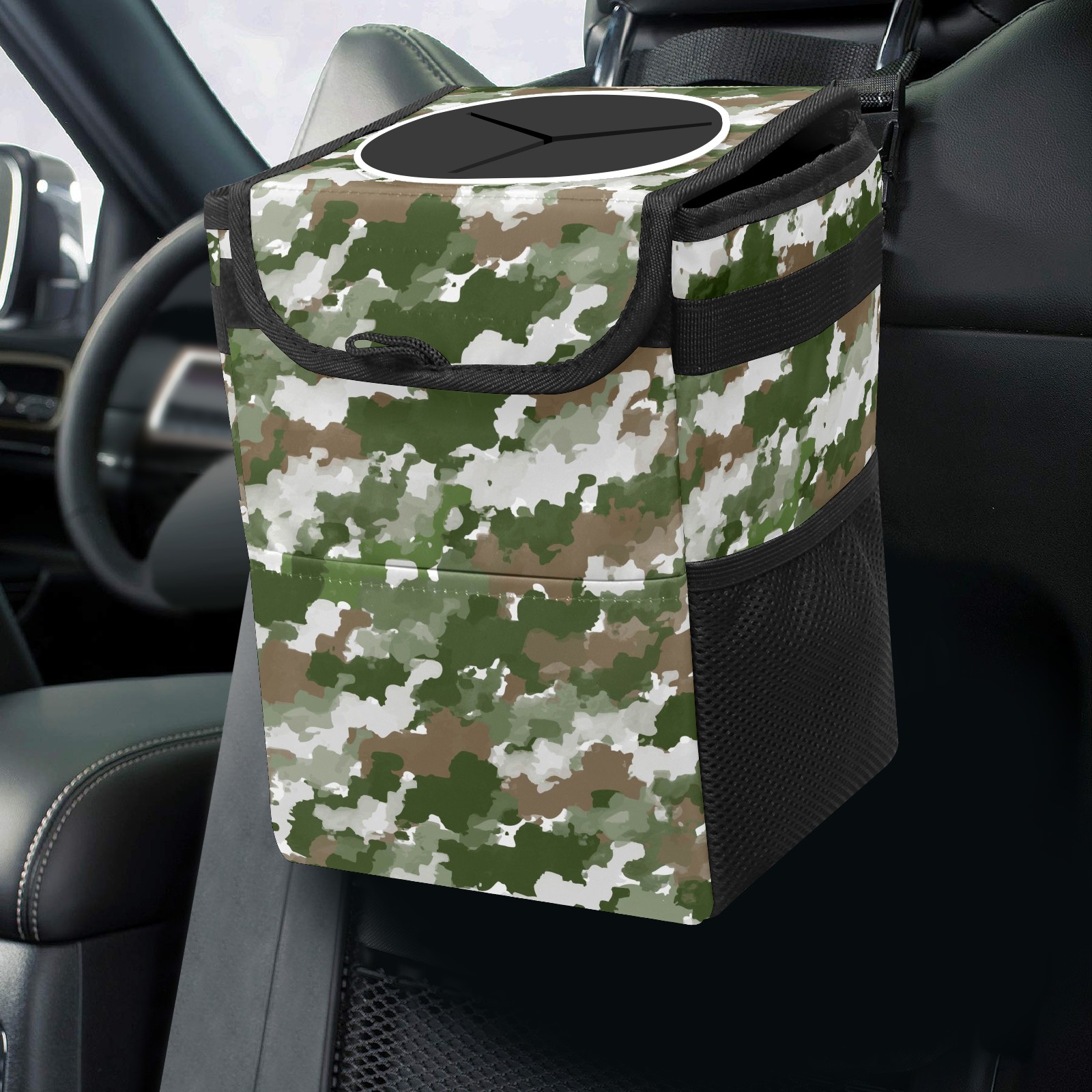 Car Garbage Can — Multi-functional, Lightweight Portable, Reusable Vehicle Trash Can, Waterproof with Sufficient Storage Capacity Watercolor Camouflage Pattern Green Gray