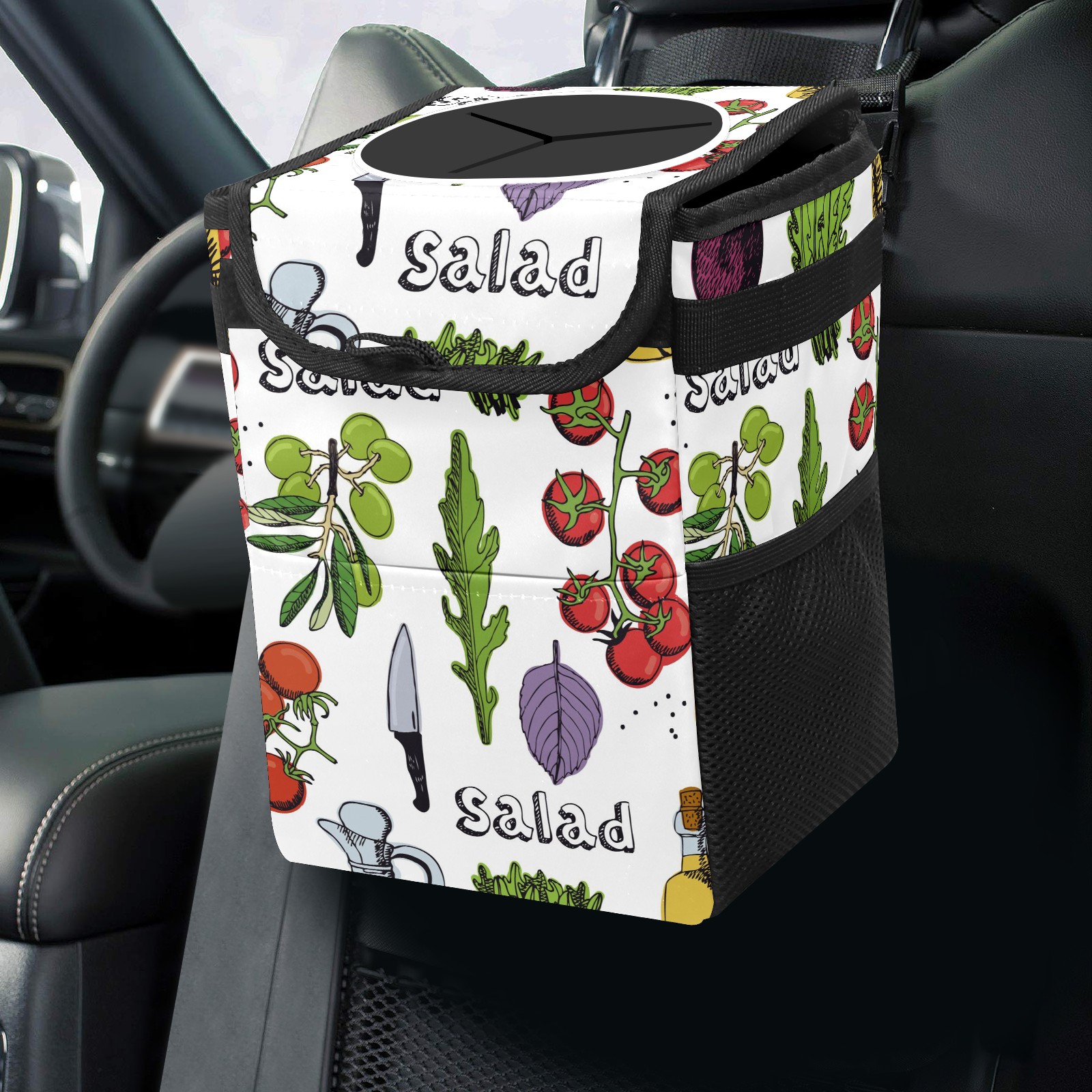 Car Garbage Can — Multi-functional, Lightweight Portable, Reusable Vehicle Trash Can, Waterproof with Sufficient Storage Capacity Salad Vegetables Pattern Tomato