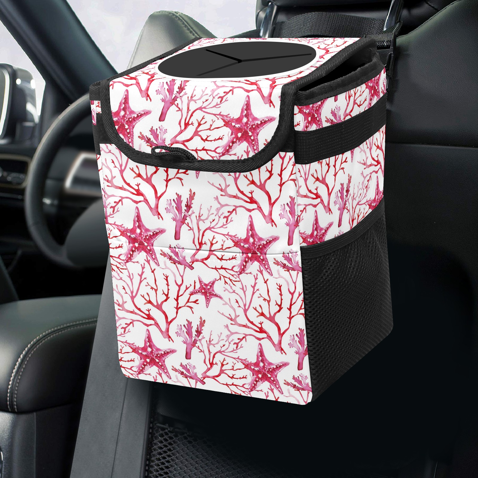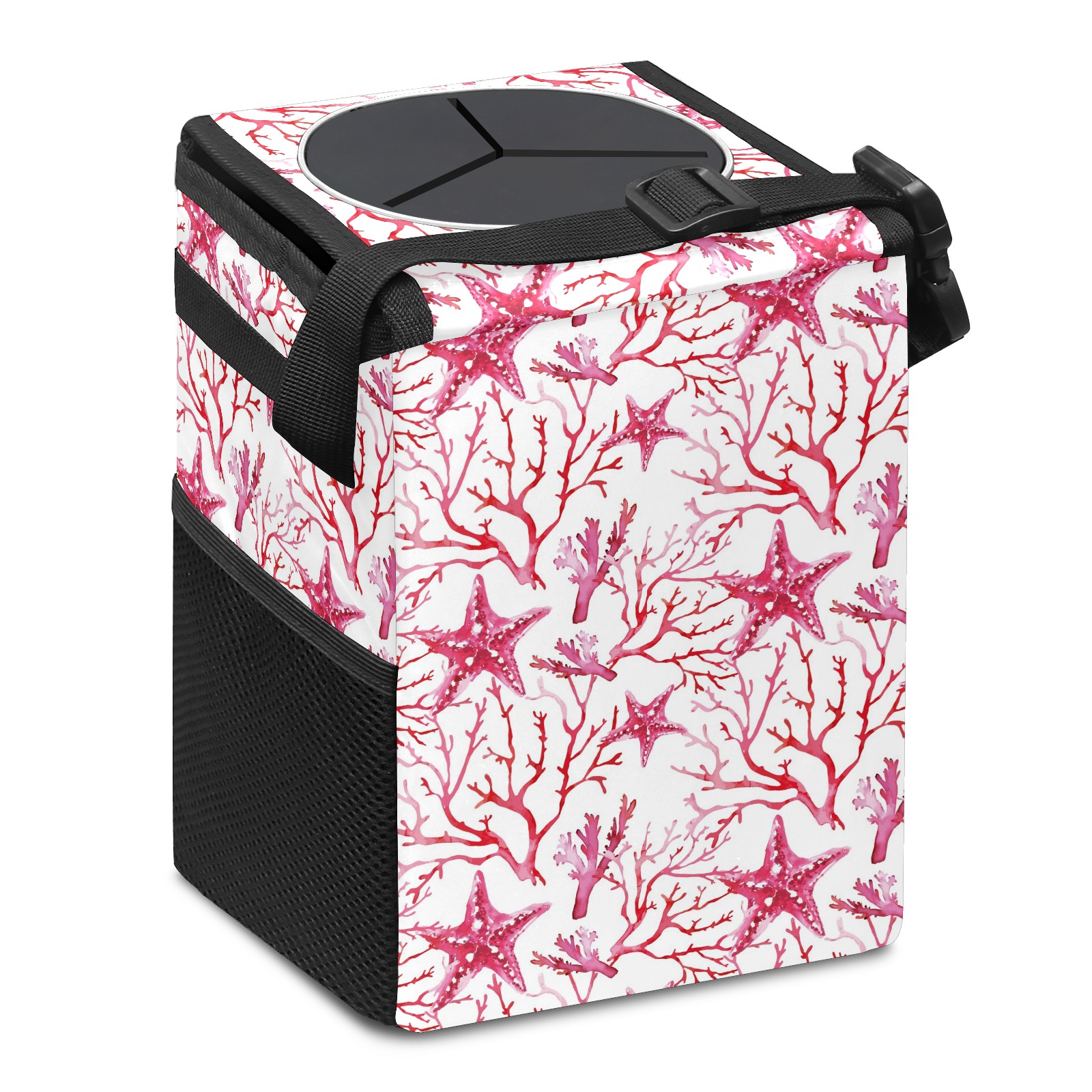Car Garbage Can — Multi-functional, Lightweight Portable, Reusable Vehicle Trash Can, Waterproof with Sufficient Storage Capacity Pink Watercolor Coral Starfishes Pattern