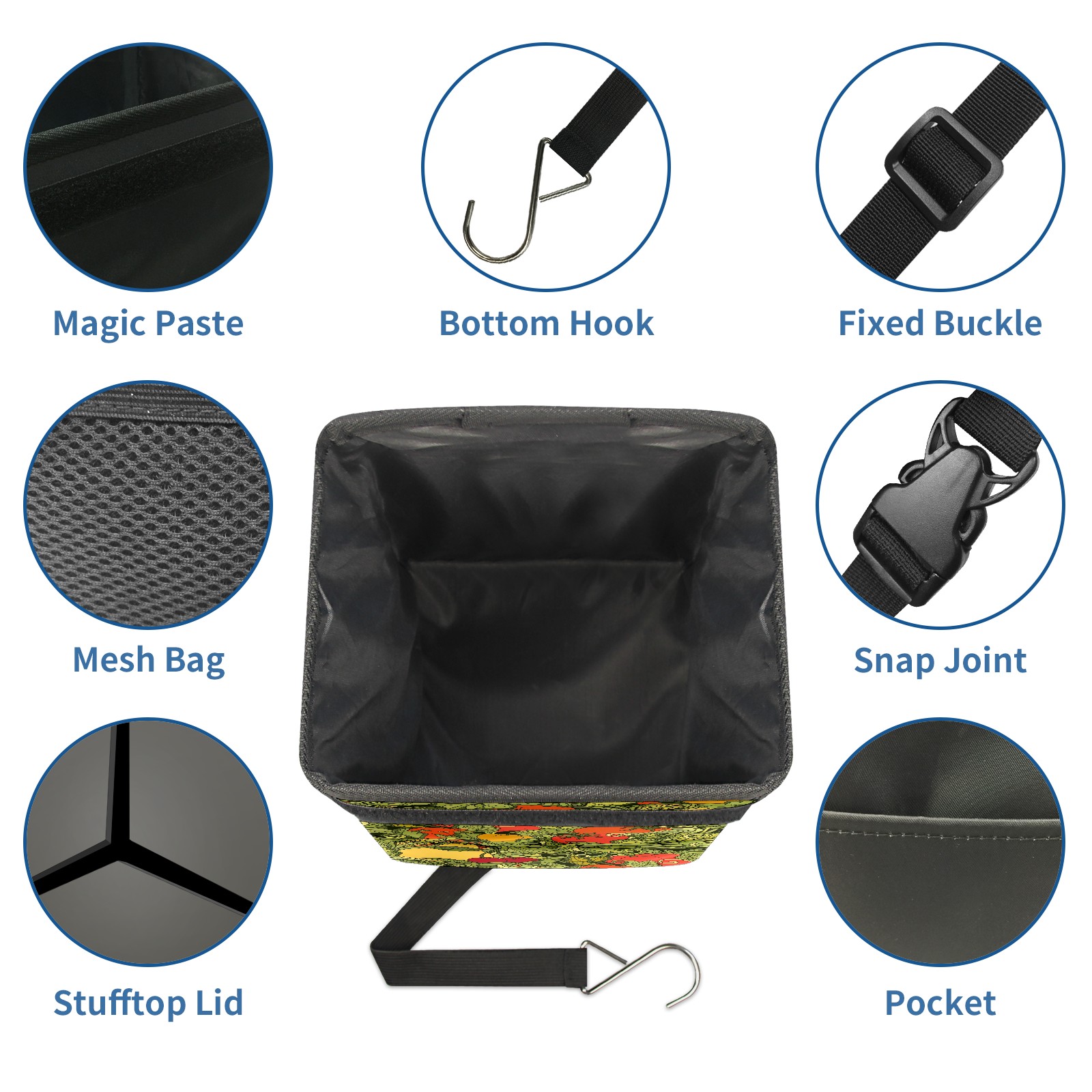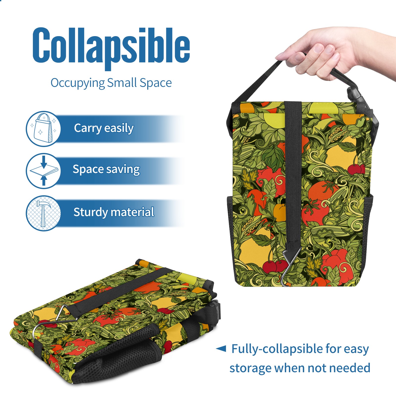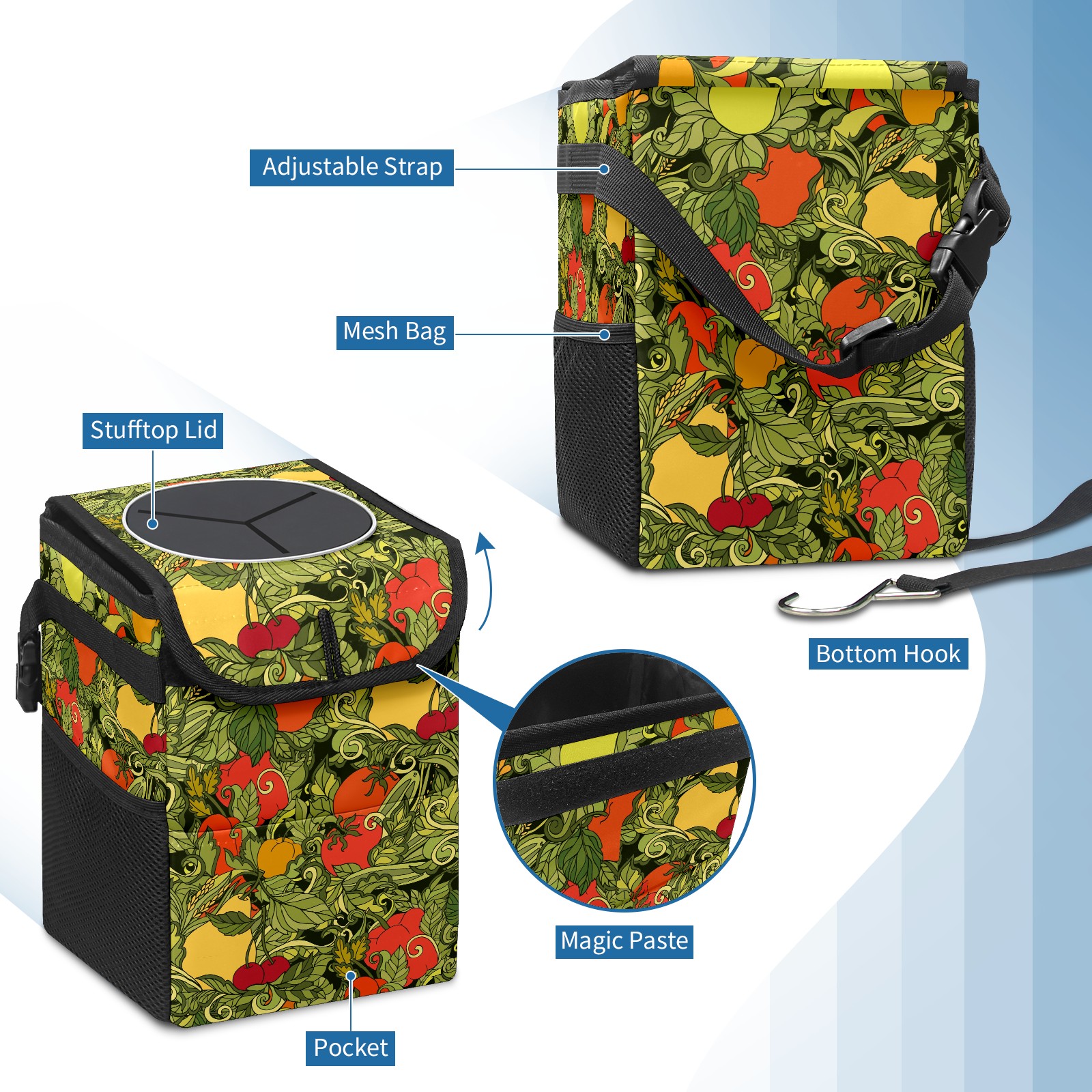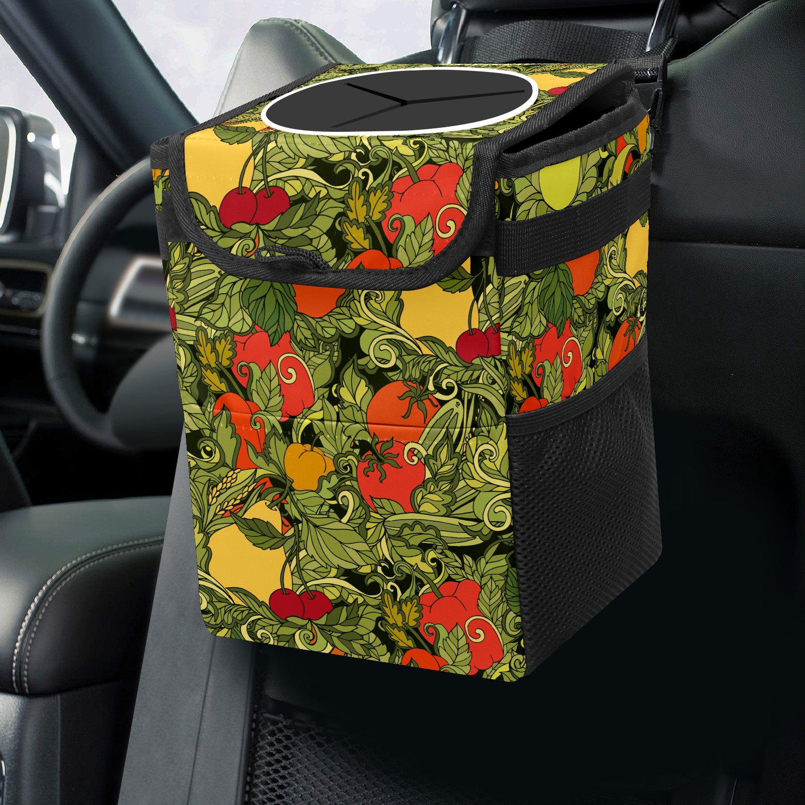 Car Garbage Can — Multi-functional, Lightweight Portable, Reusable Vehicle Trash Can, Waterproof with Sufficient Storage Capacity Leaves Vegetables Fruits Red Cherry Tomato