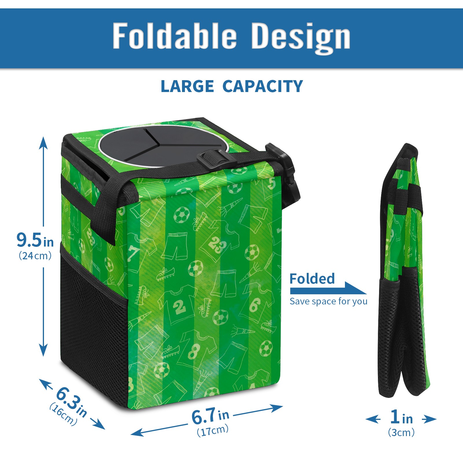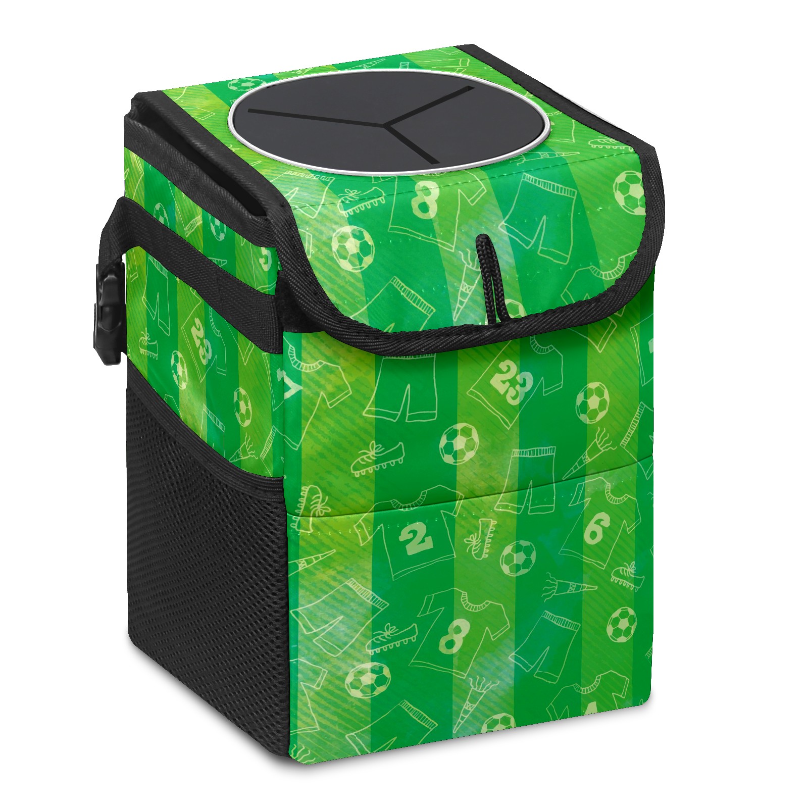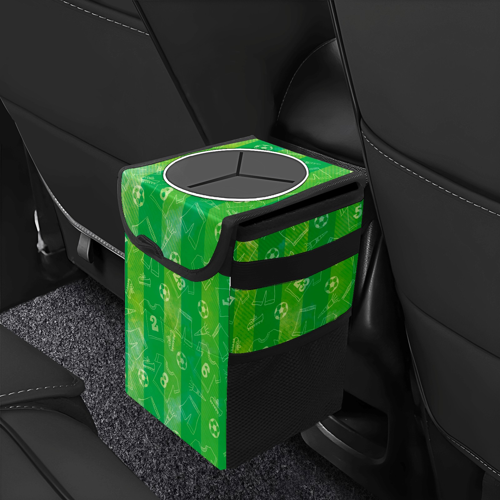Car Garbage Can — Multi-functional, Lightweight Portable, Reusable Vehicle Trash Can, Waterproof with Sufficient Storage Capacity Green Watercolor Stripe Soccer Football Tee Cloth Pattern