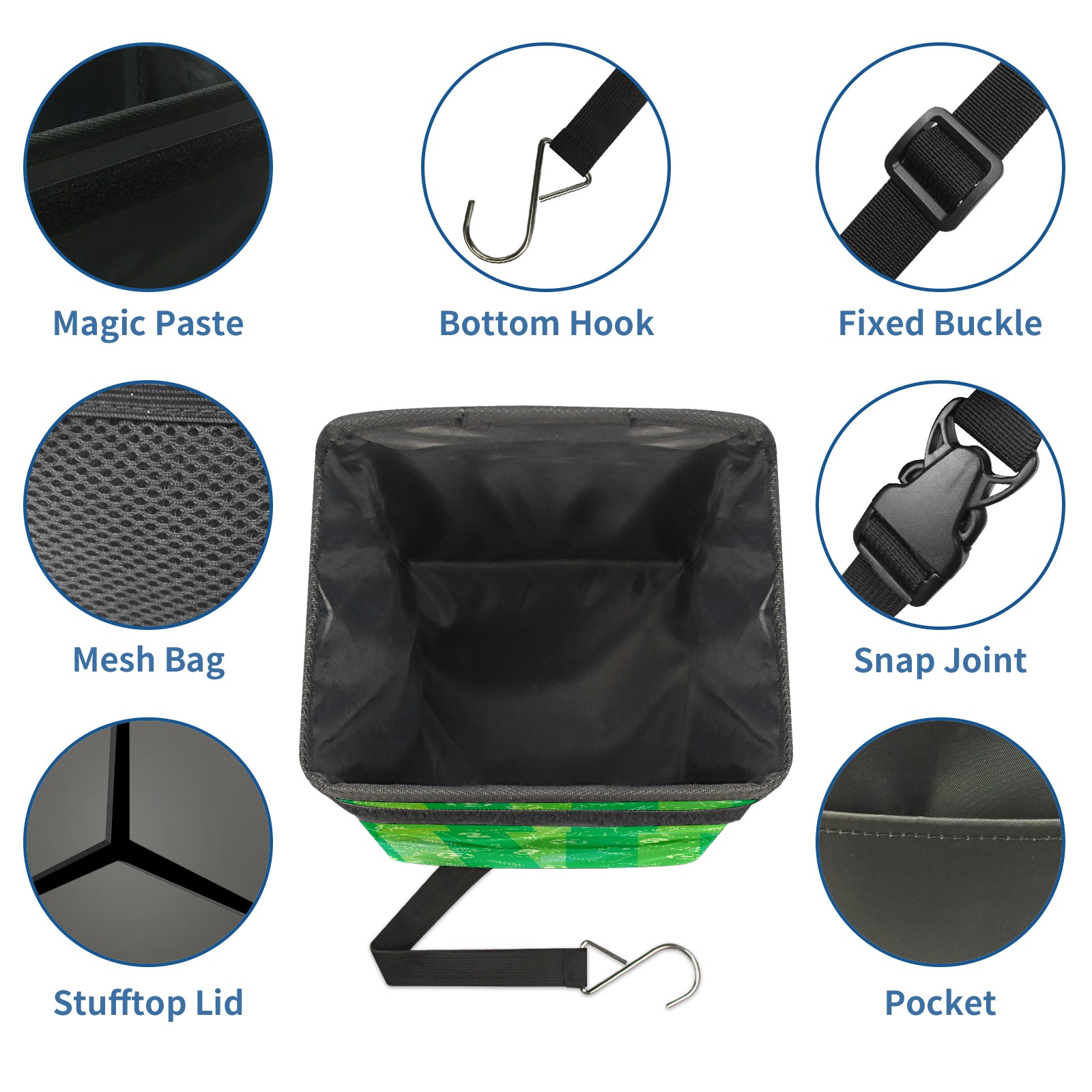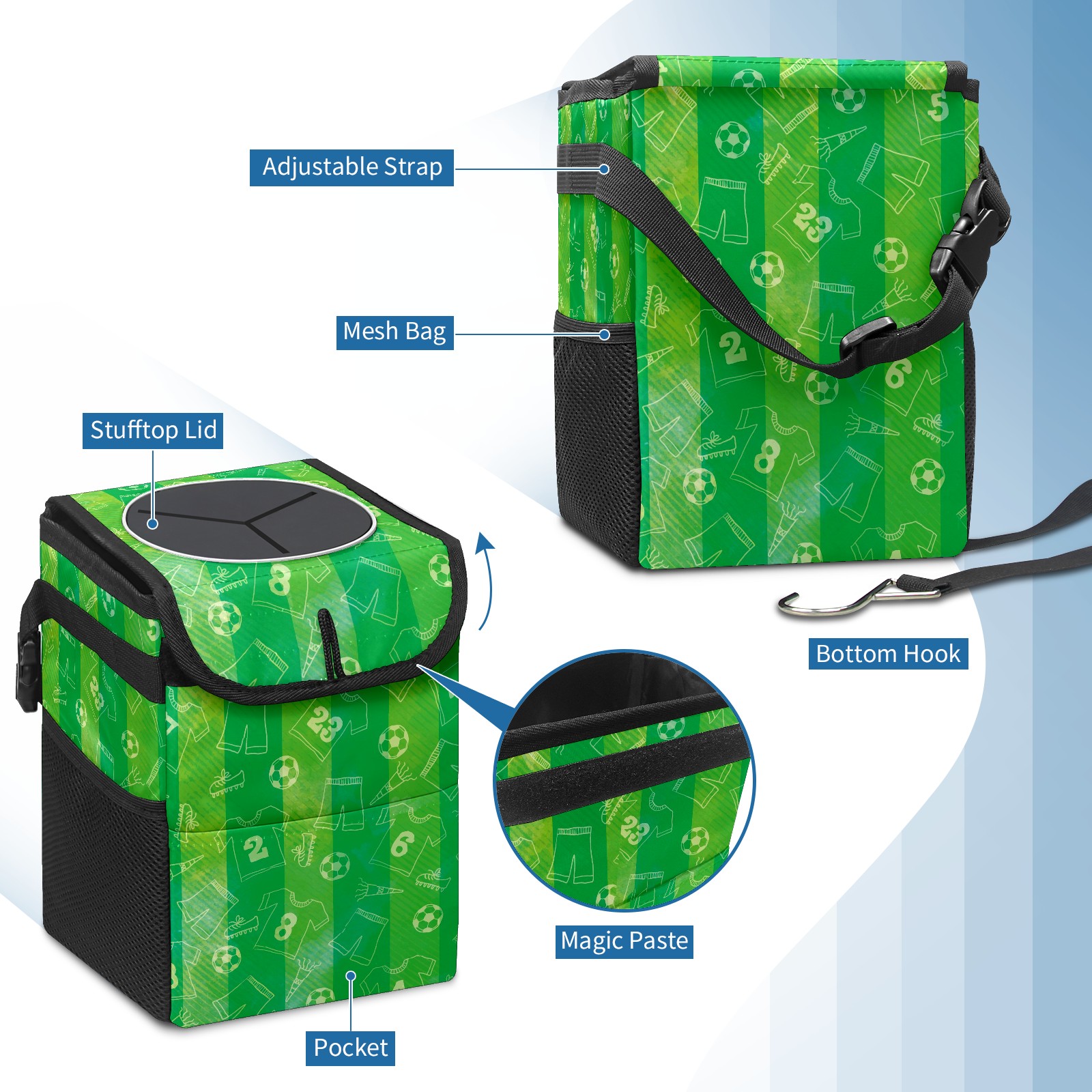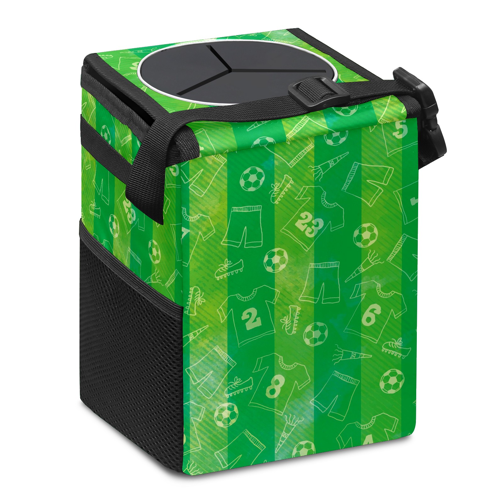 Car Garbage Can — Multi-functional, Lightweight Portable, Reusable Vehicle Trash Can, Waterproof with Sufficient Storage Capacity Green Watercolor Stripe Soccer Football Tee Cloth Pattern