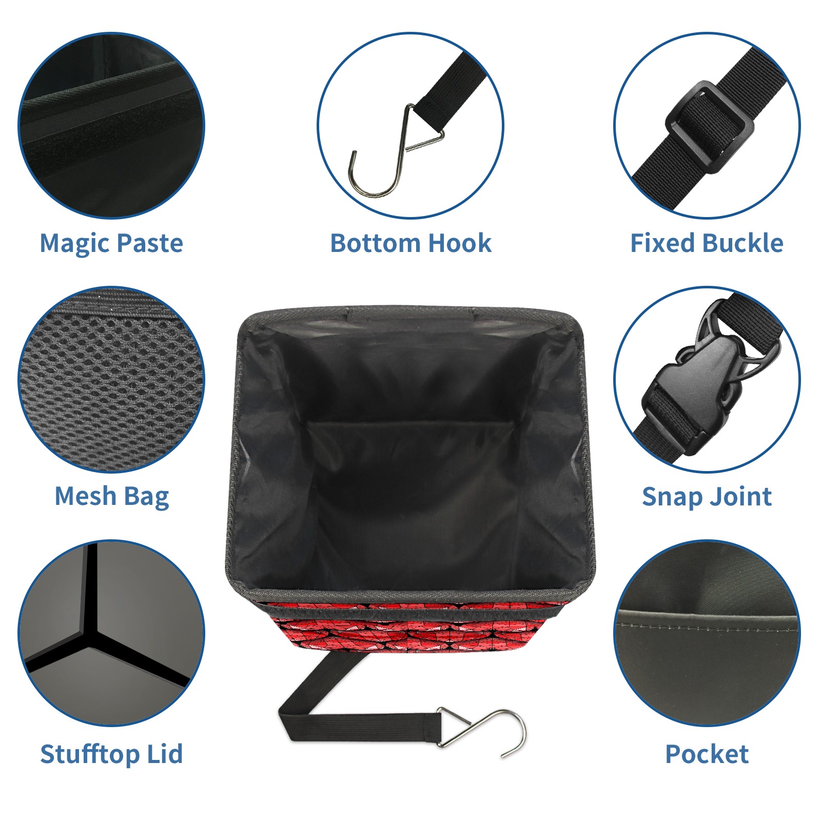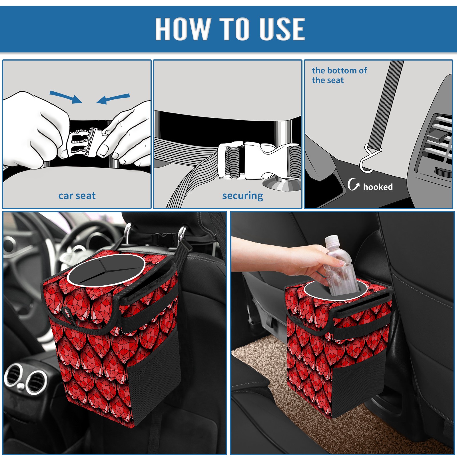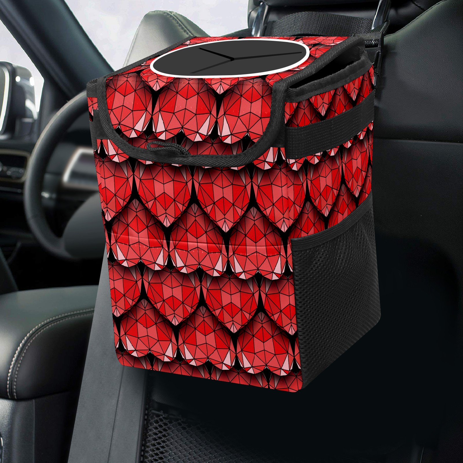 Car Garbage Can — Multi-functional, Lightweight Portable, Reusable Vehicle Trash Can, Waterproof with Sufficient Storage Capacity Geometric Hearts Love Red Pattern