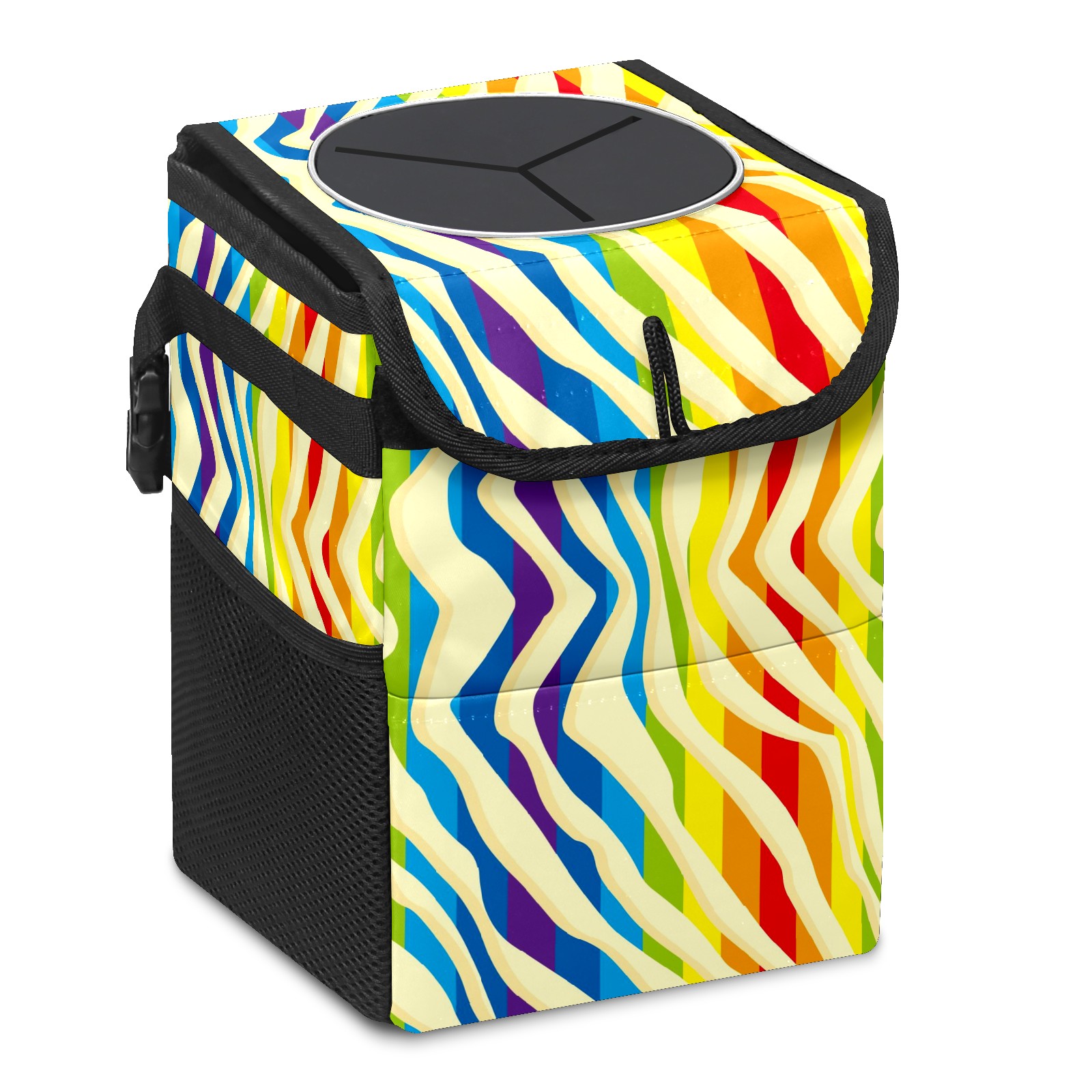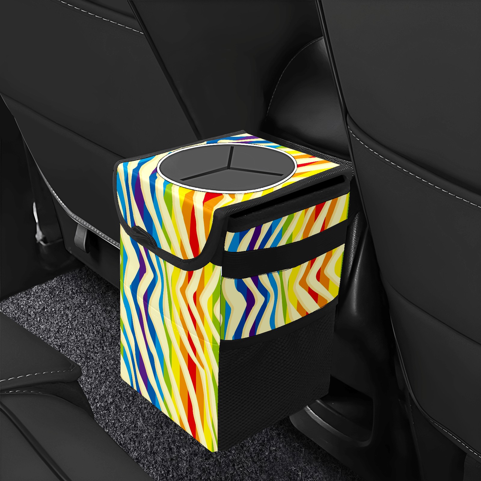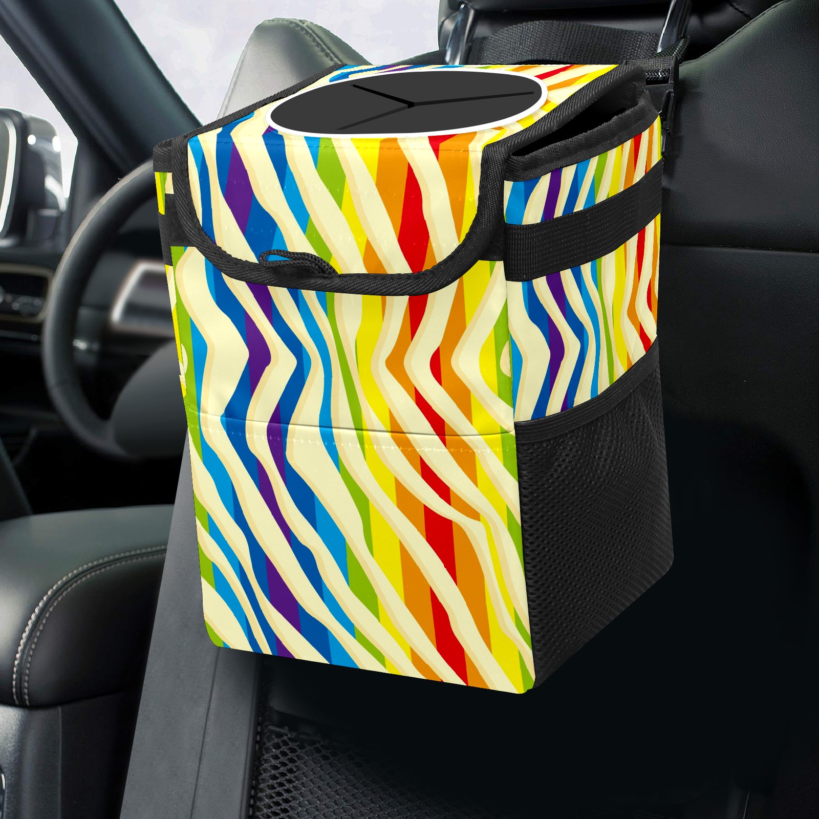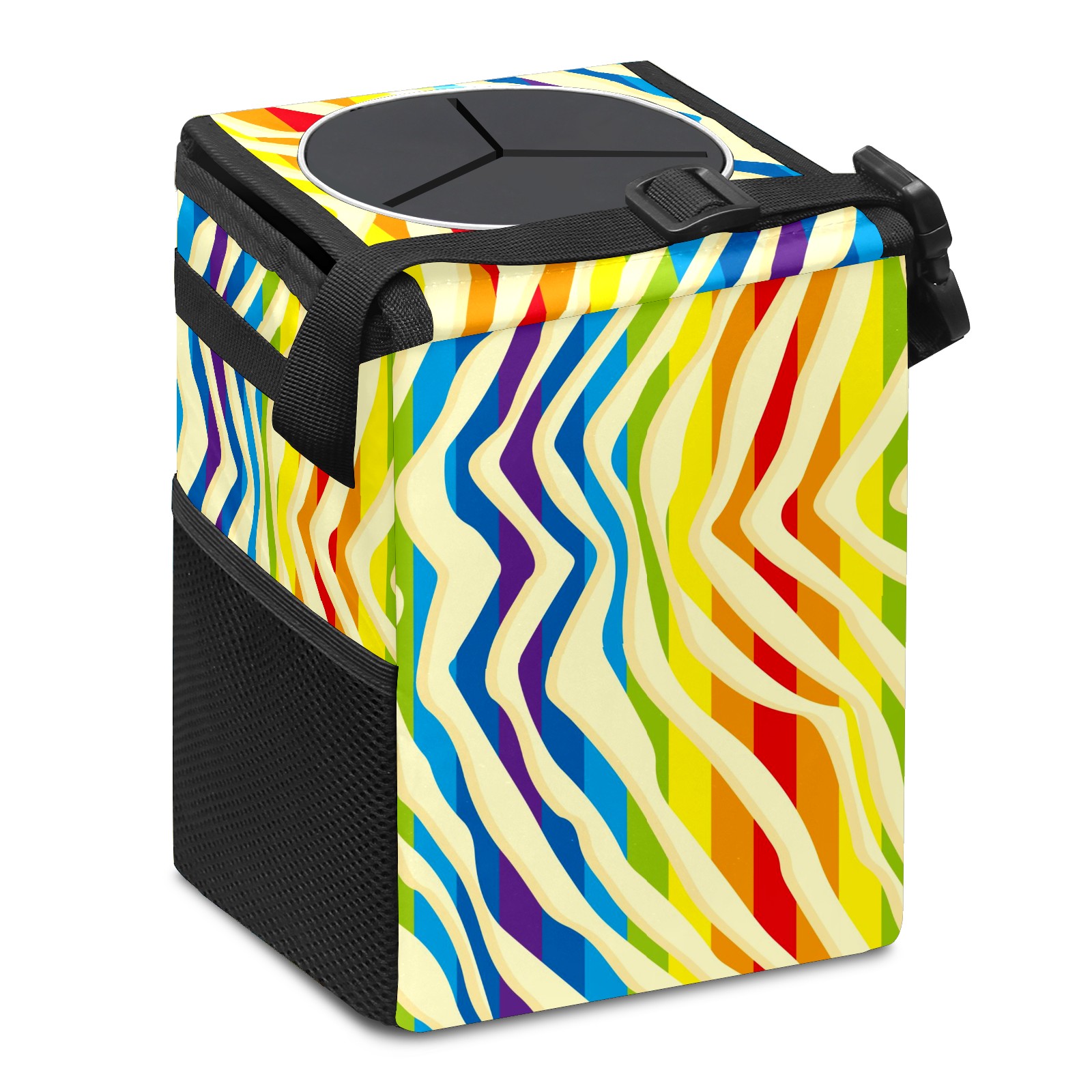 Car Garbage Can — Multi-functional, Lightweight Portable, Reusable Vehicle Trash Can, Waterproof with Sufficient Storage Capacity Colorful Rainbow Stripes Red Blue Purple Yellow
