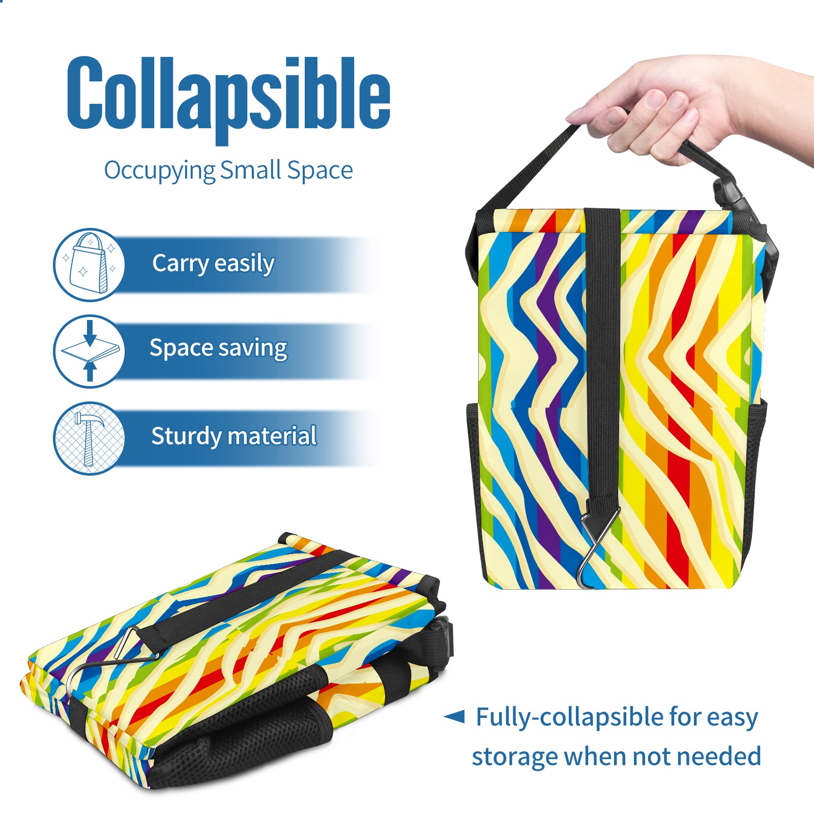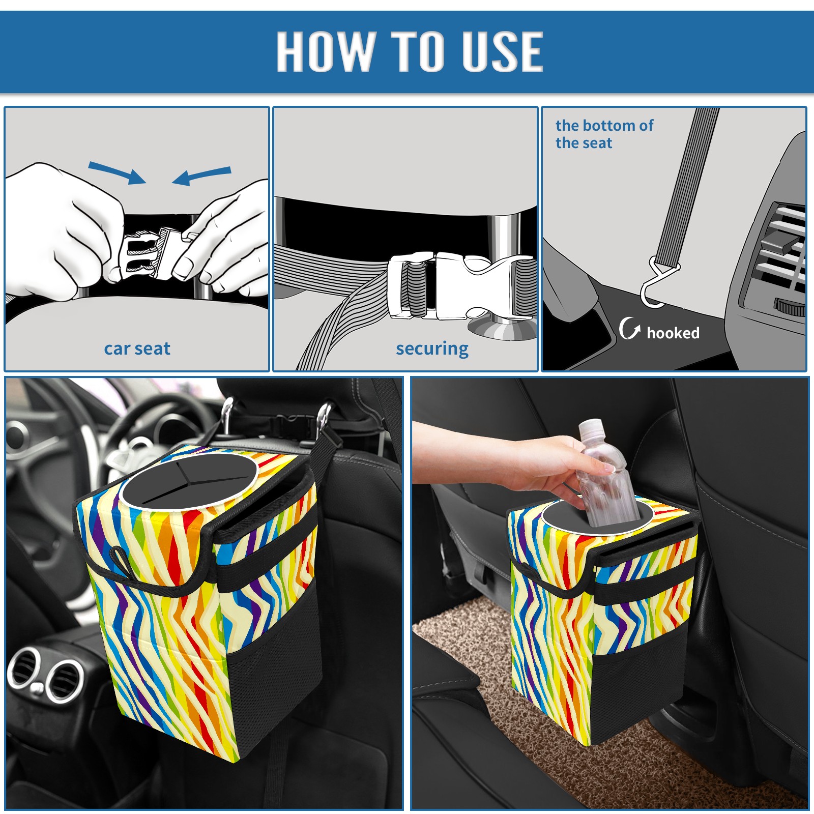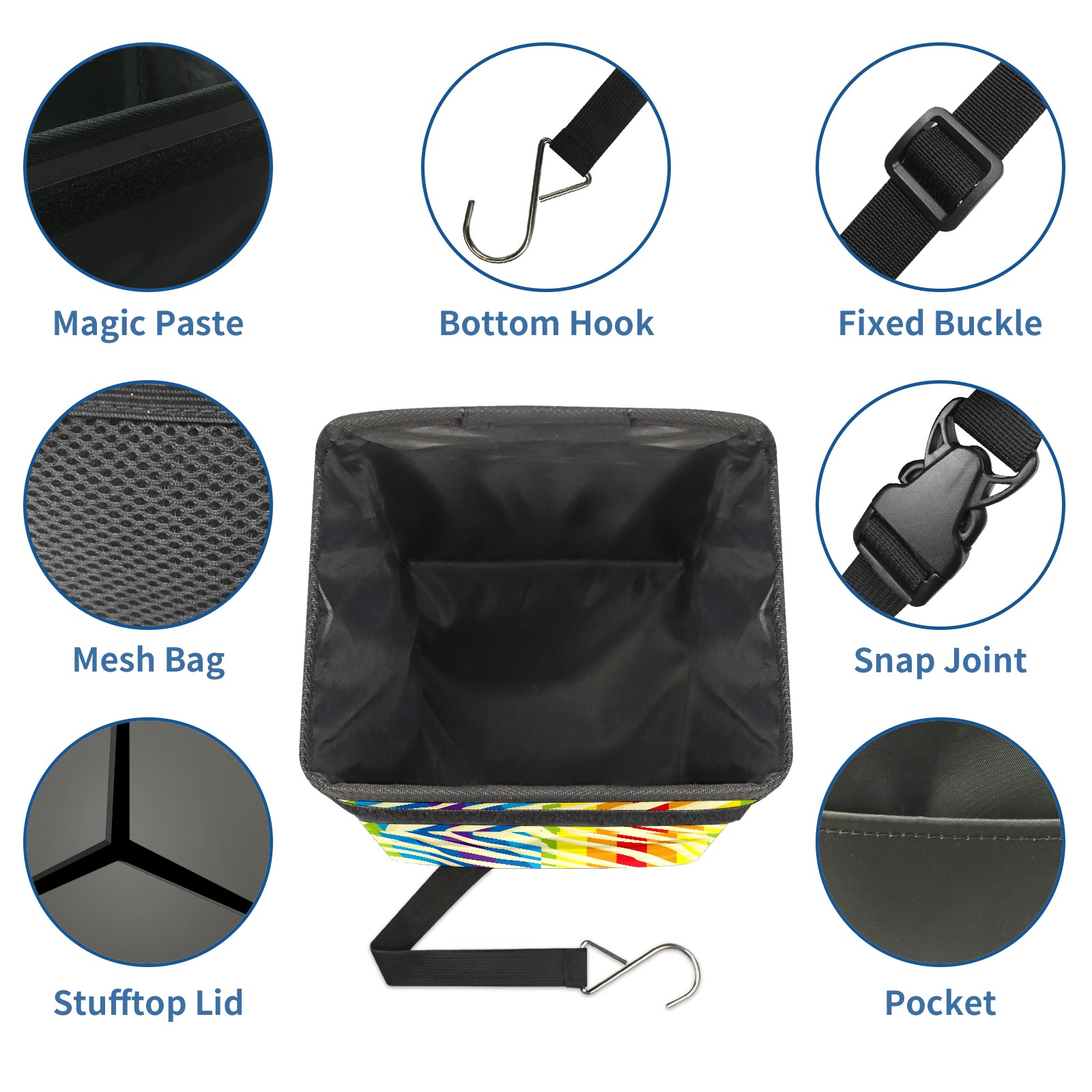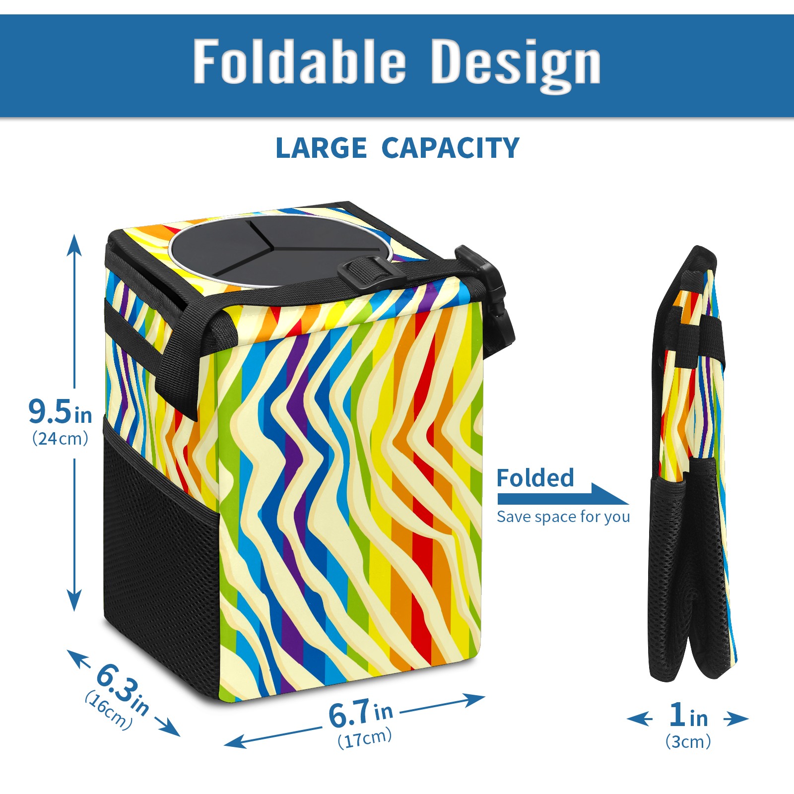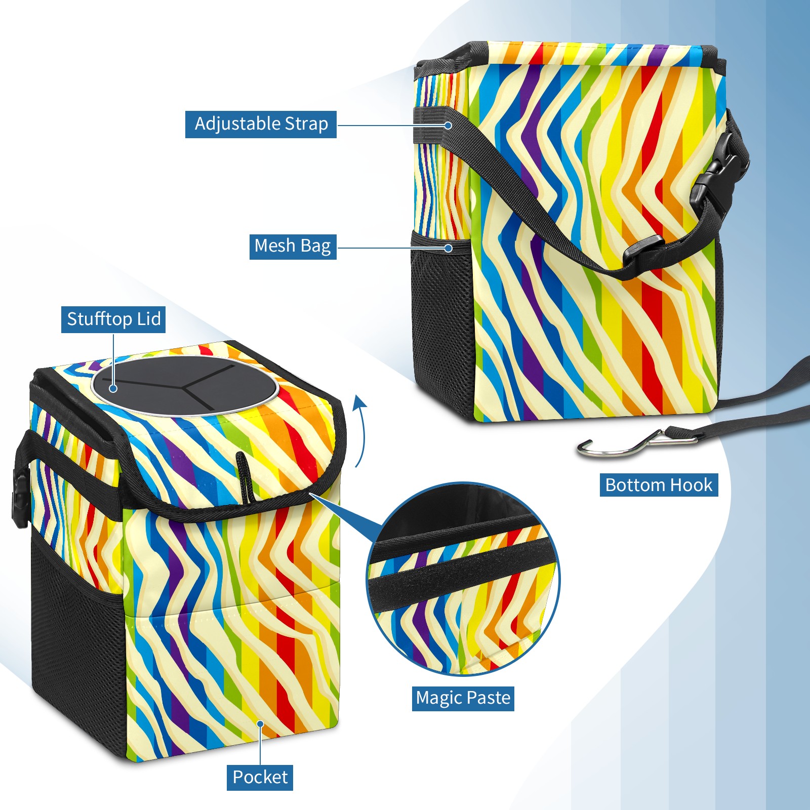 Car Garbage Can — Multi-functional, Lightweight Portable, Reusable Vehicle Trash Can, Waterproof with Sufficient Storage Capacity Colorful Rainbow Stripes Red Blue Purple Yellow