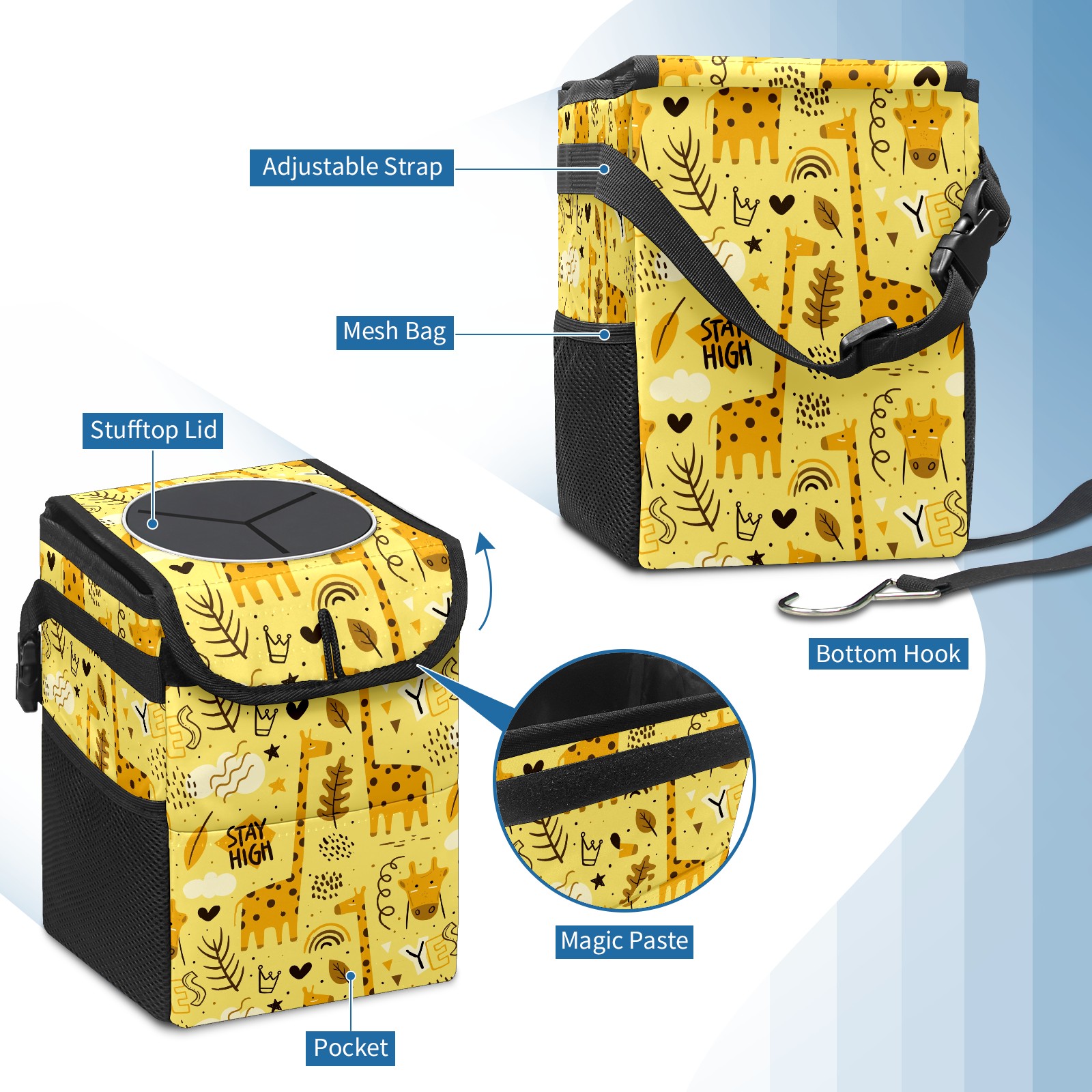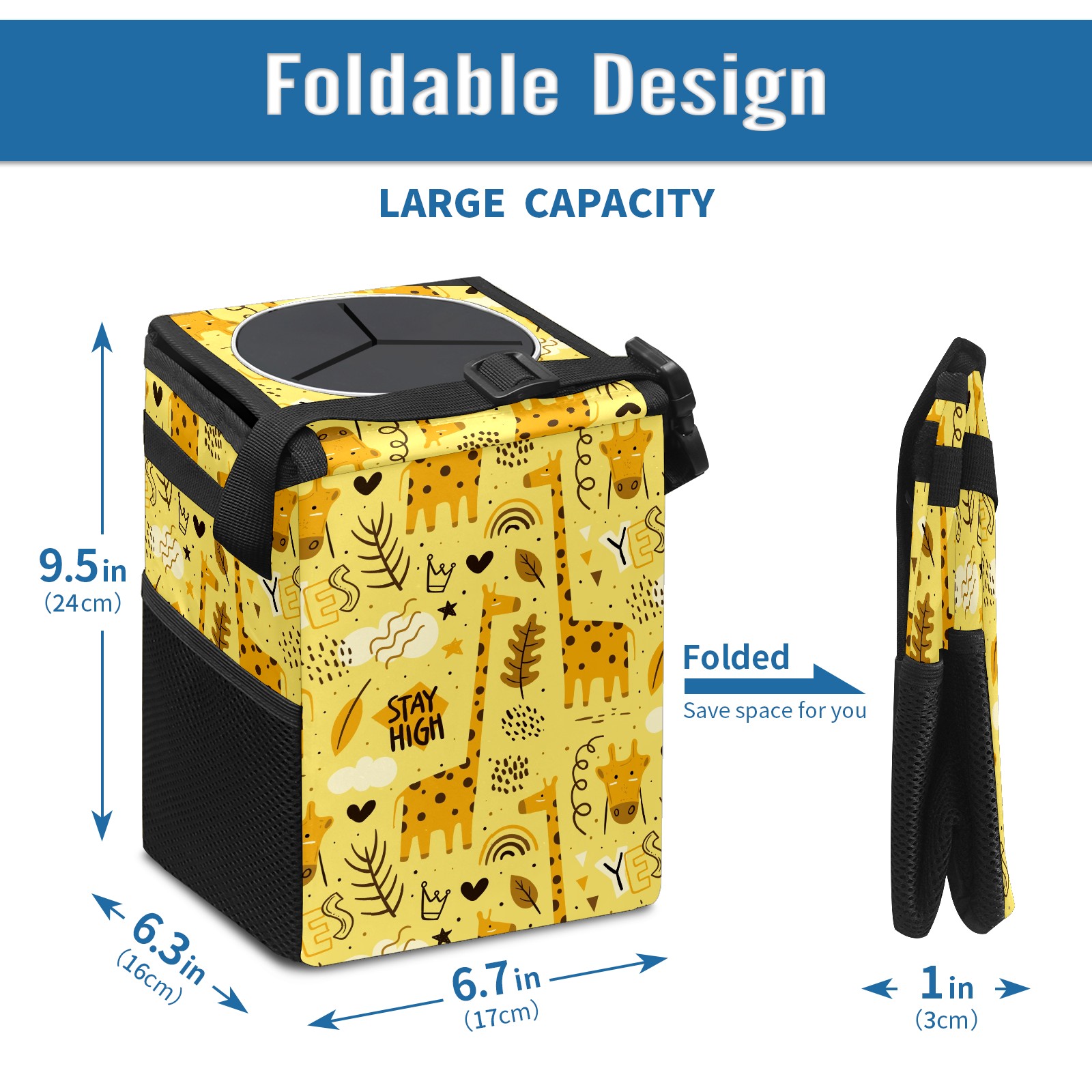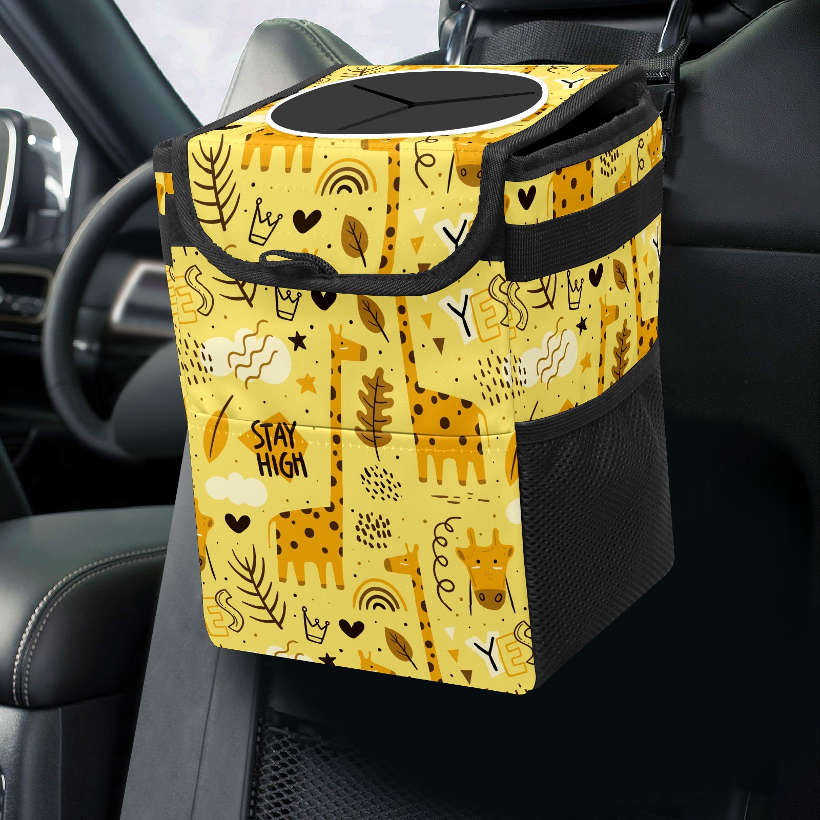 Car Garbage Can — Multi-functional, Lightweight Portable, Reusable Vehicle Trash Can, Waterproof with Sufficient Storage Capacity Cartoon Doodle Giraffe YES Heart Yellow