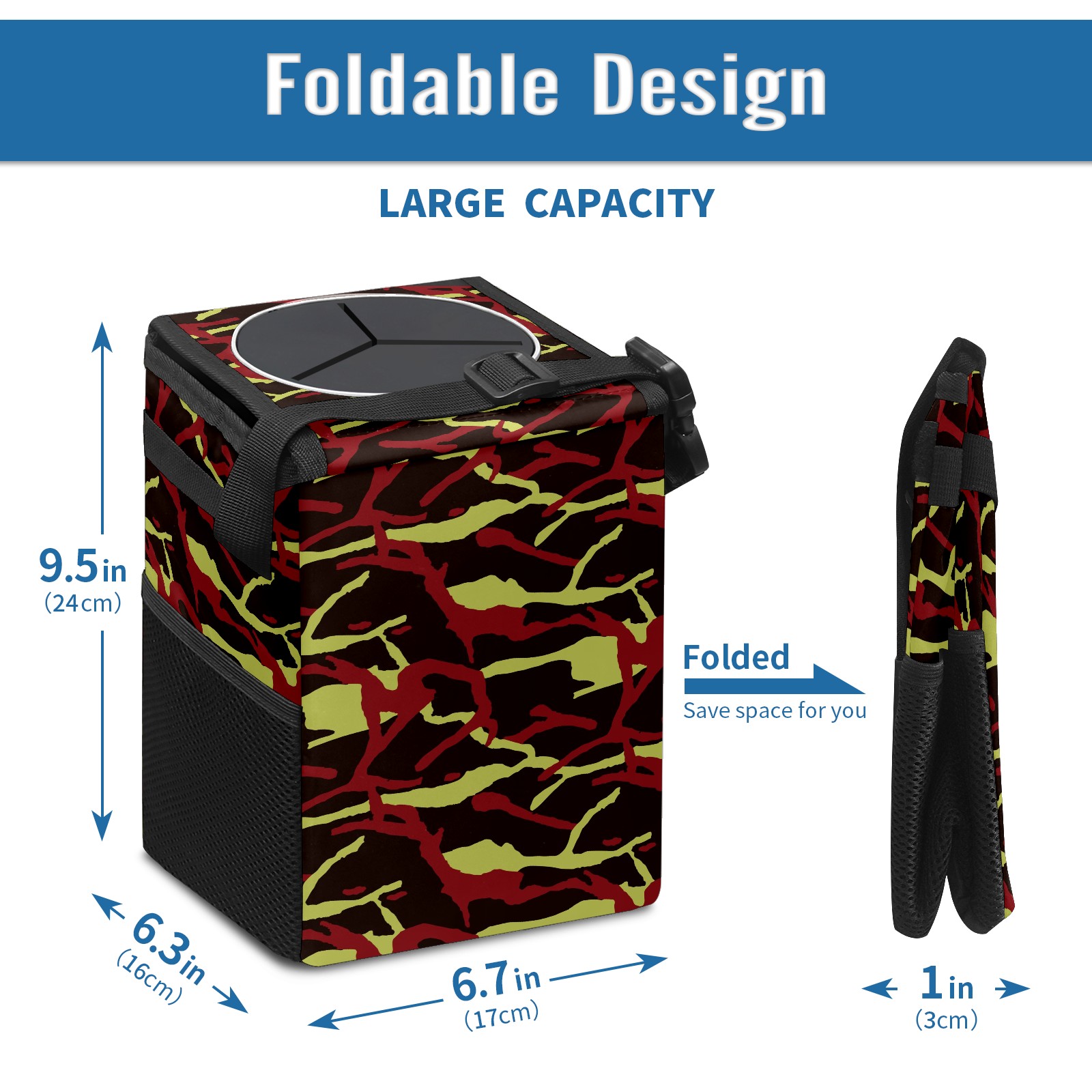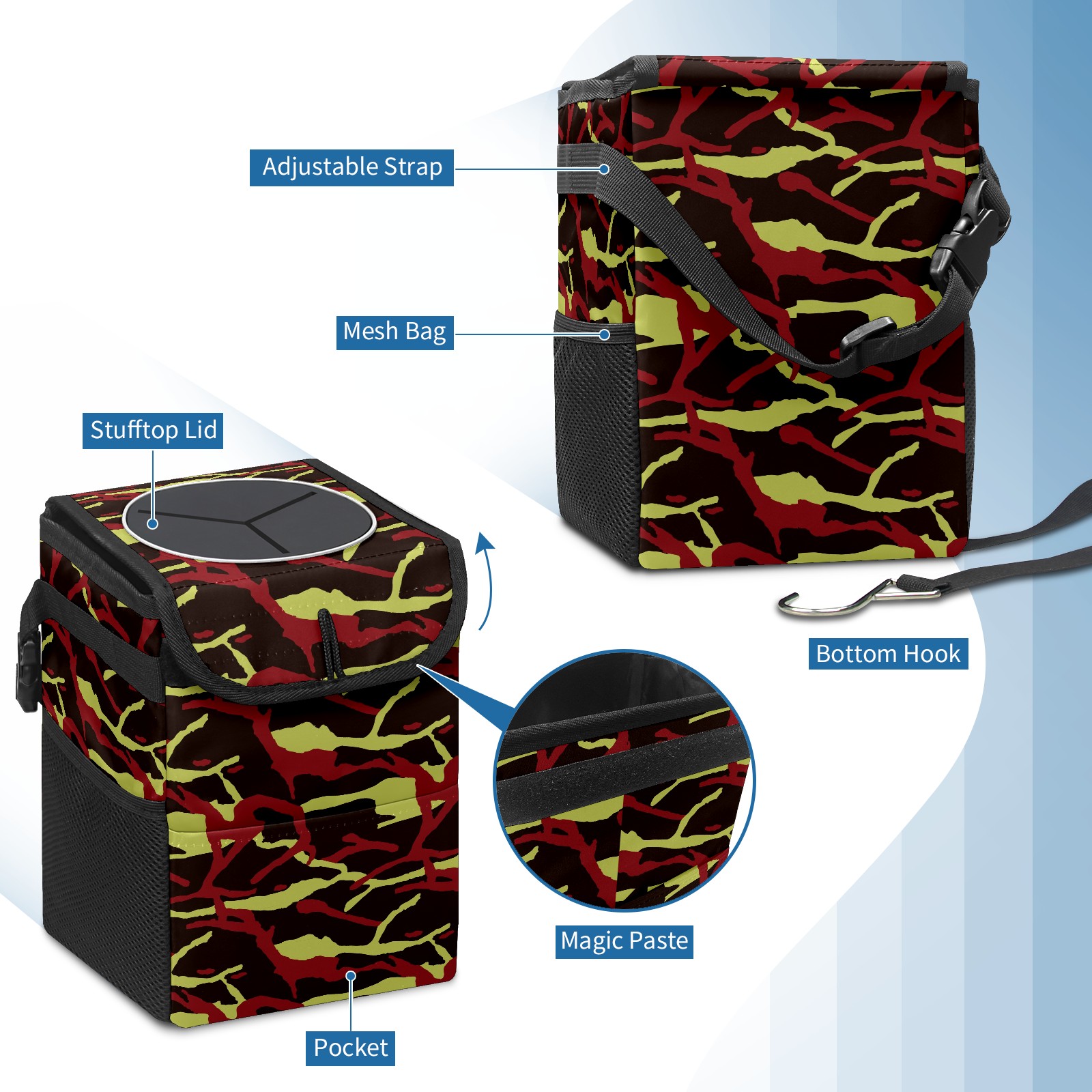 Car Garbage Can — Multi-functional, Lightweight Portable, Reusable Vehicle Trash Can, Waterproof with Sufficient Storage Capacity Camouflage Pattern Pattern Red Black Green
