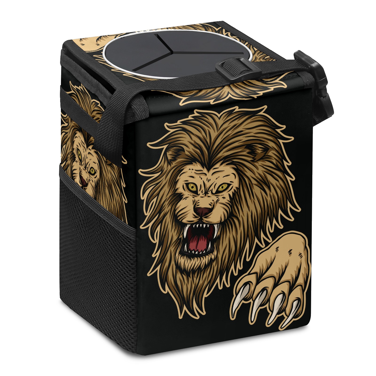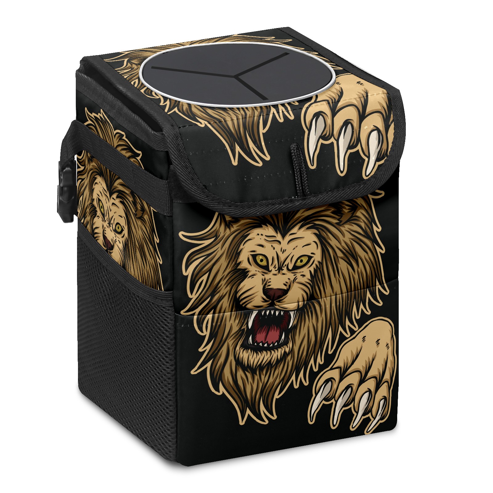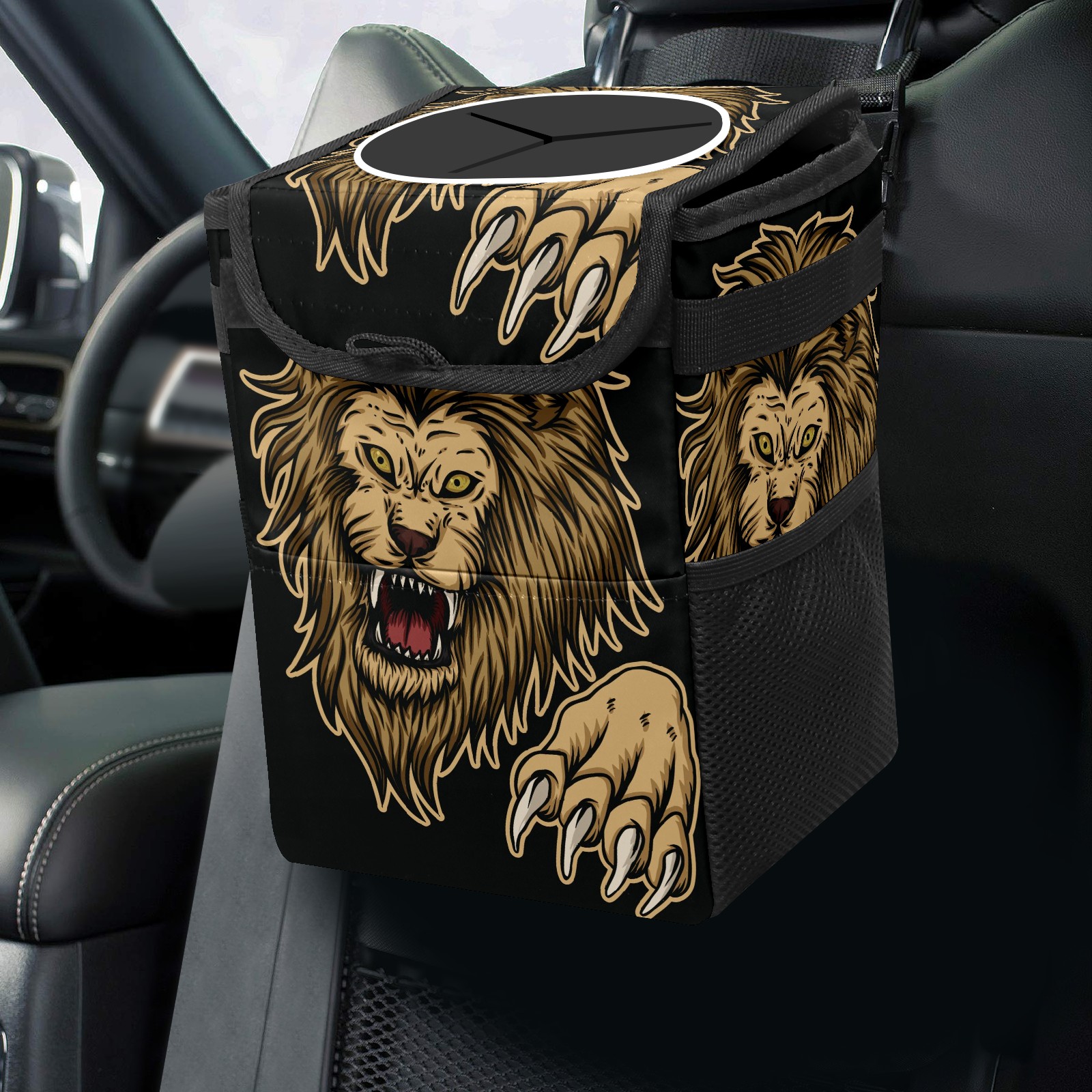 Car Garbage Can — Multi-functional, Lightweight Portable, Reusable Vehicle Trash Can, Waterproof with Sufficient Storage Capacity Angry Lion Attack Animal Black
