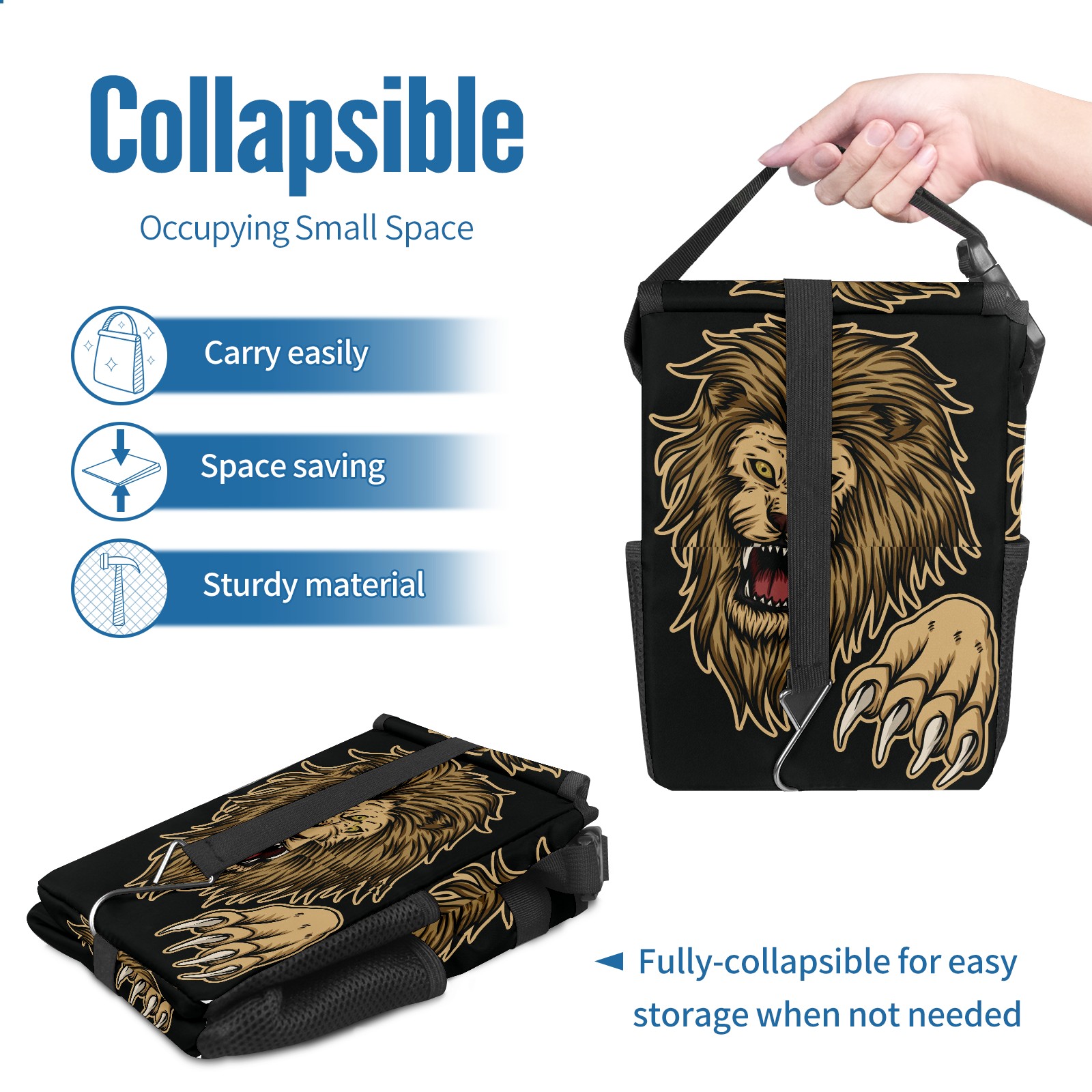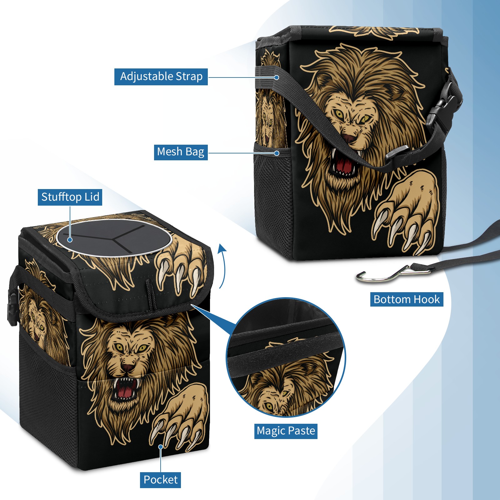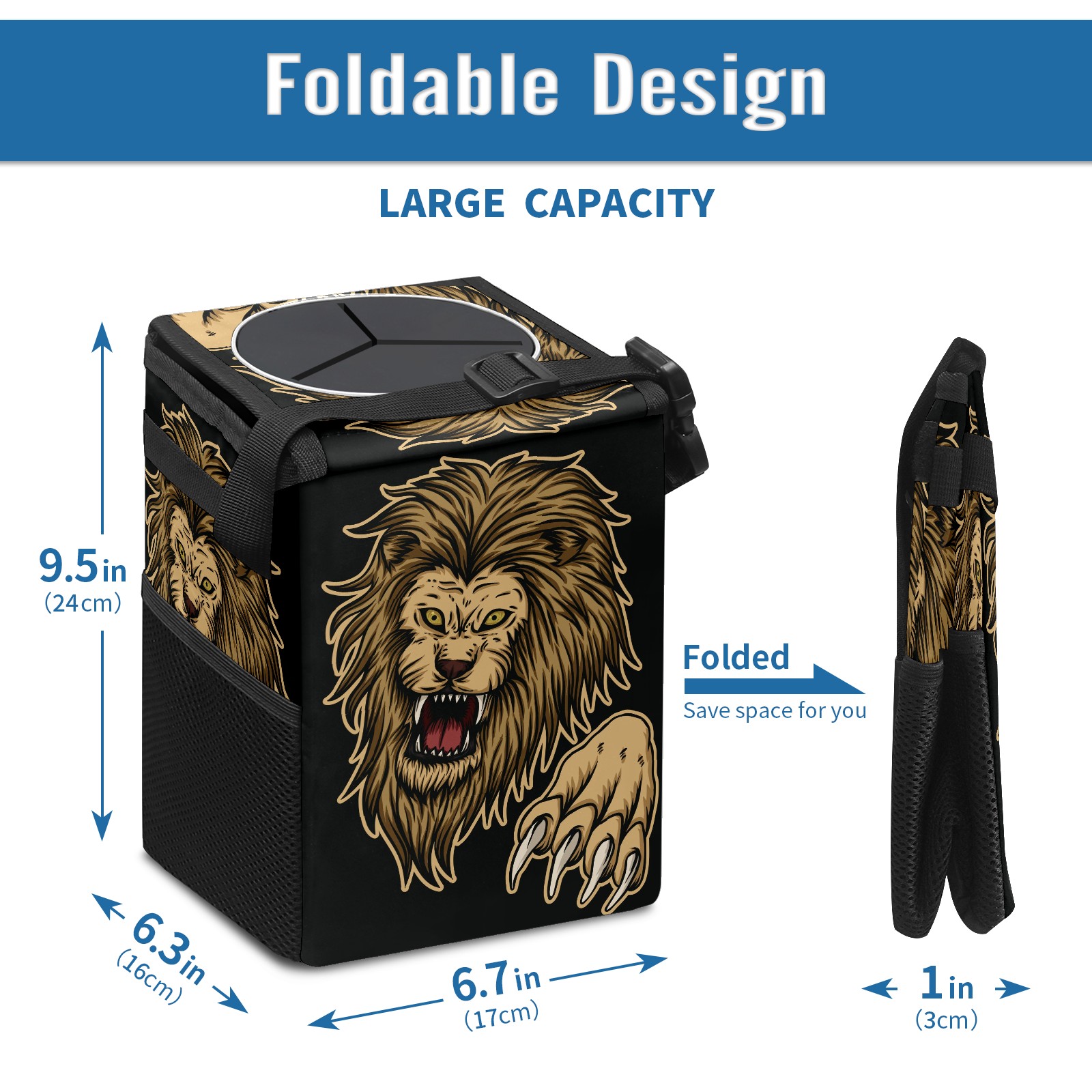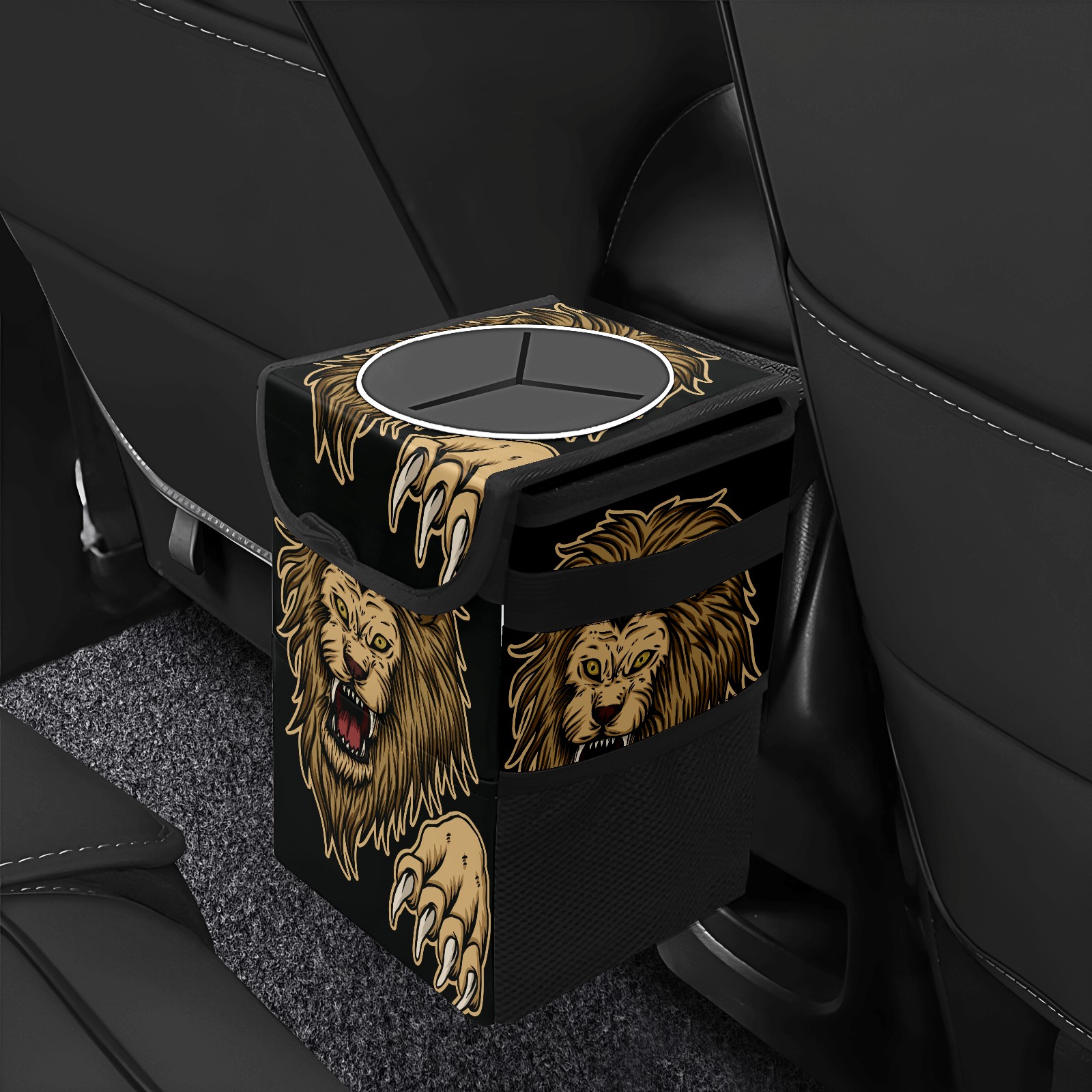 Car Garbage Can — Multi-functional, Lightweight Portable, Reusable Vehicle Trash Can, Waterproof with Sufficient Storage Capacity Angry Lion Attack Animal Black