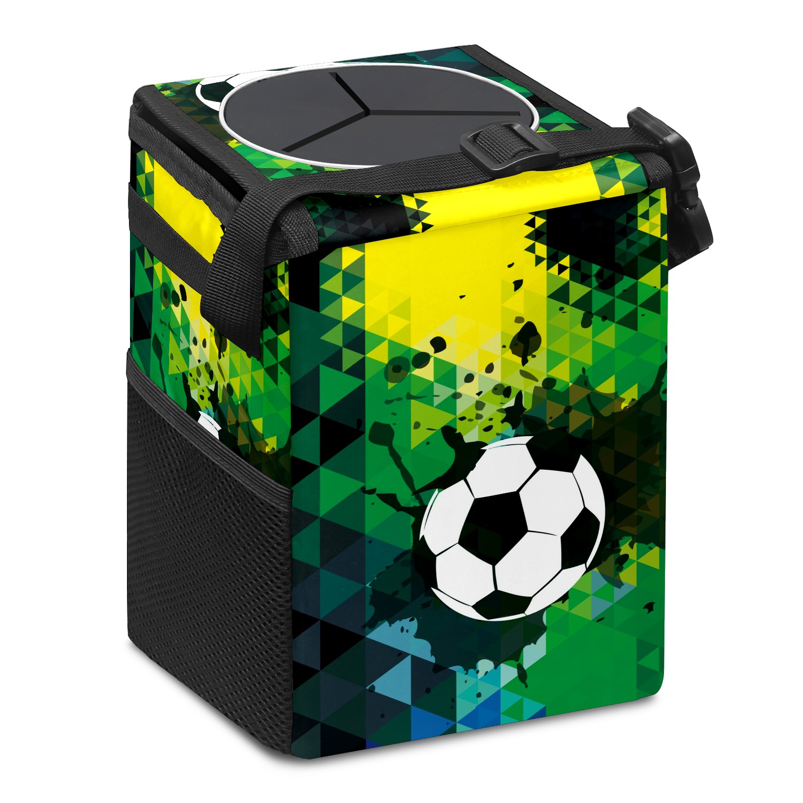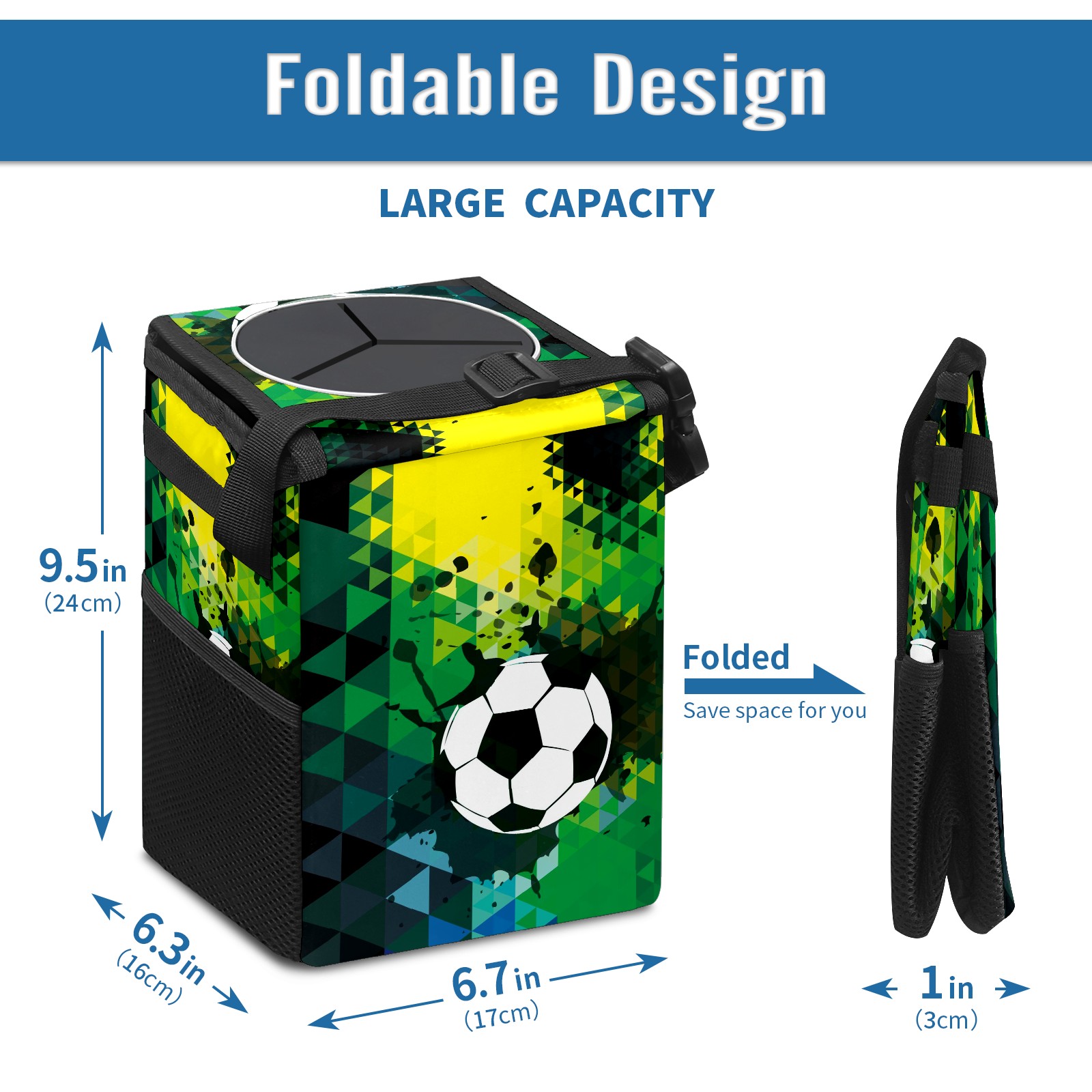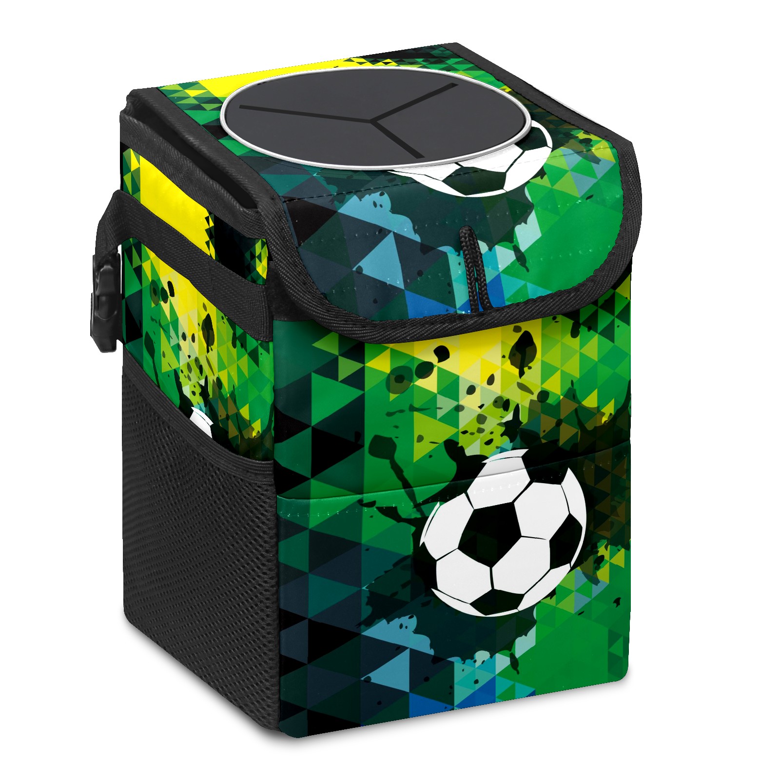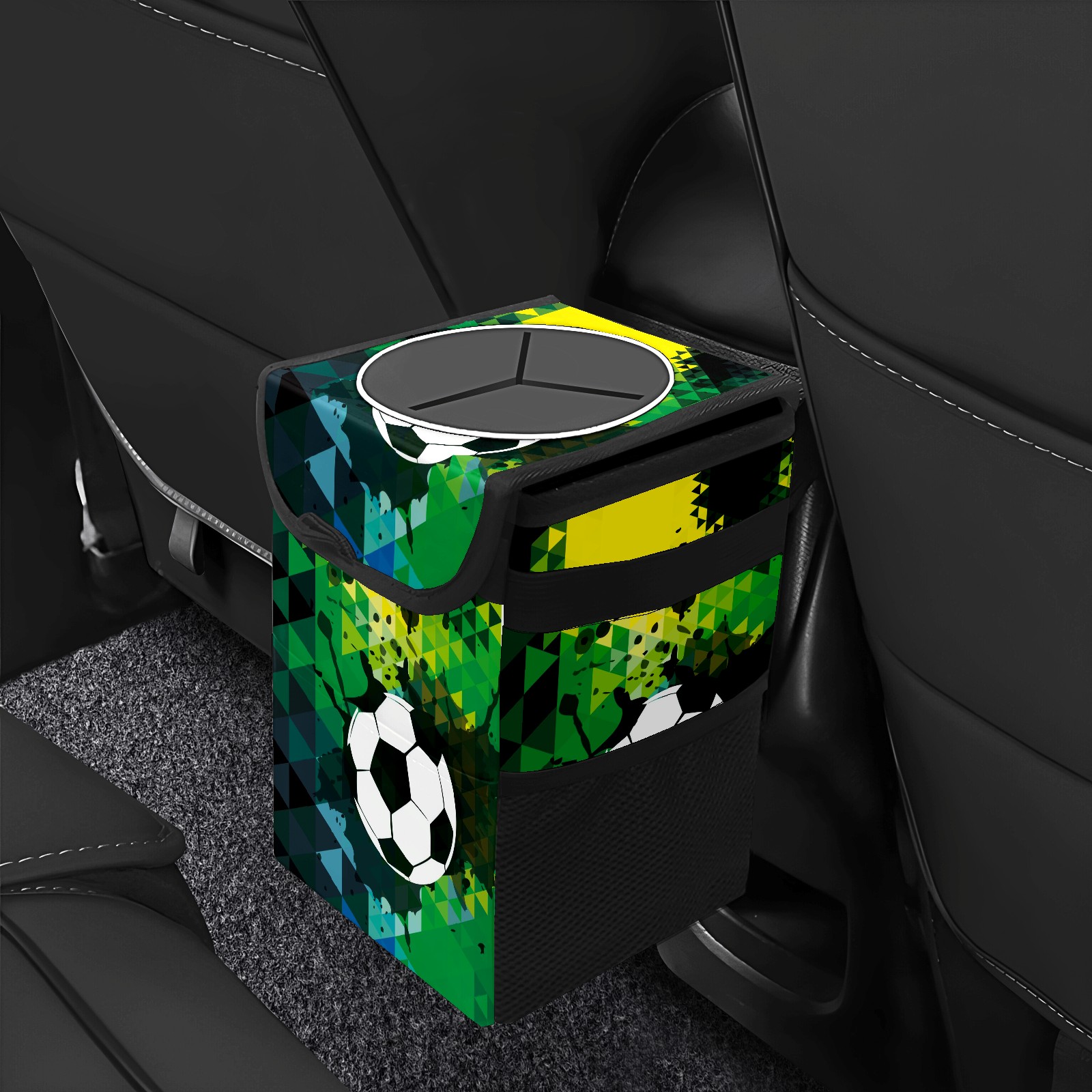 Car Garbage Can — Multi-functional, Lightweight Portable, Reusable Vehicle Trash Can, Waterproof with Sufficient Storage Capacity Black Green Doodle Sport Soccer