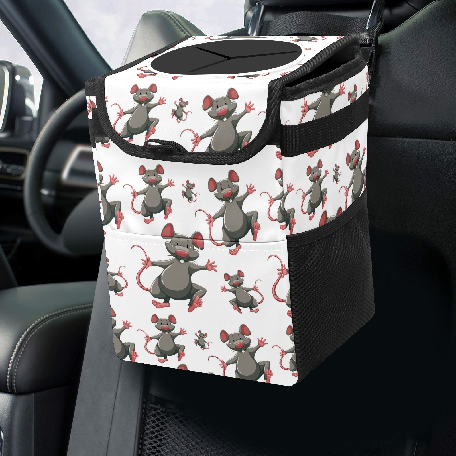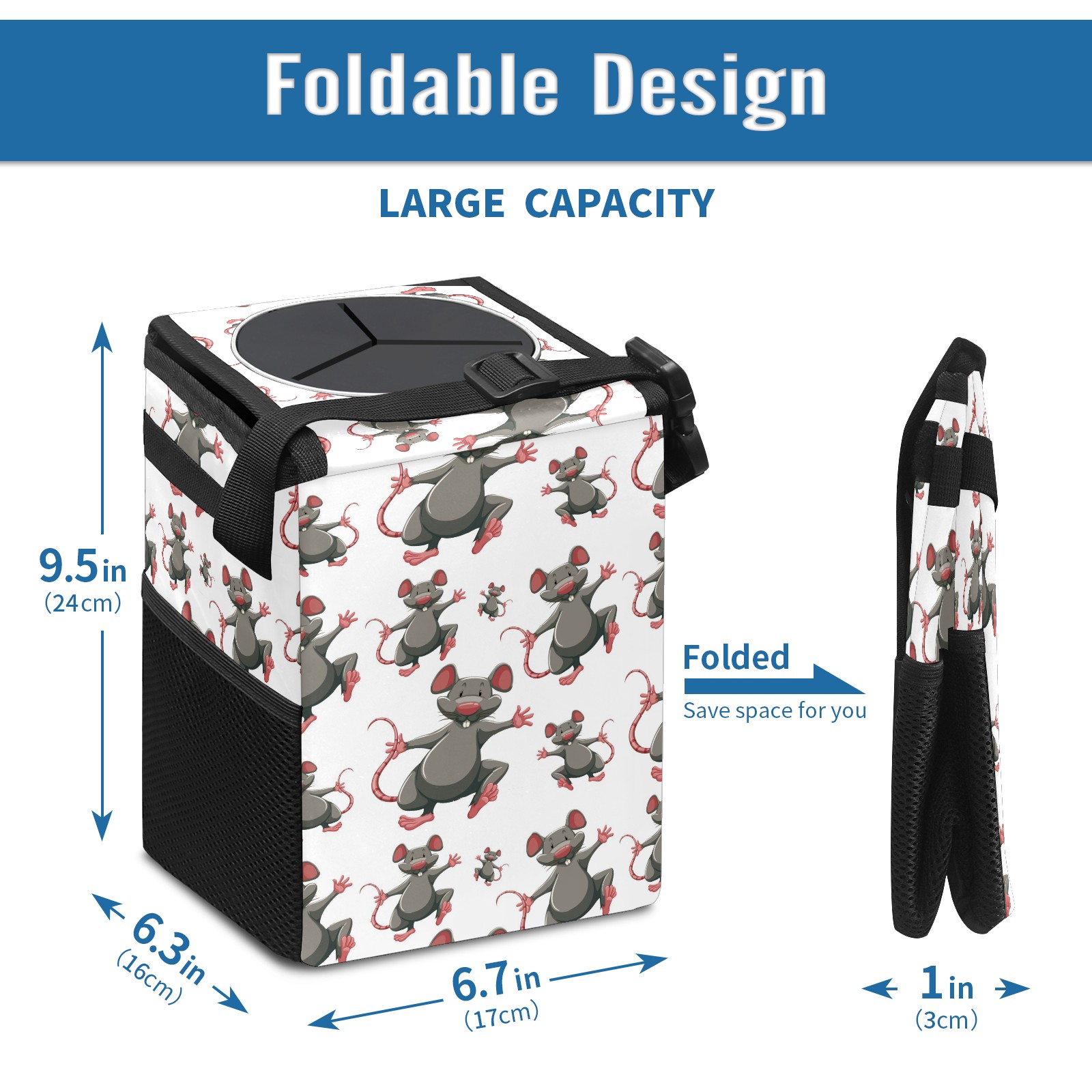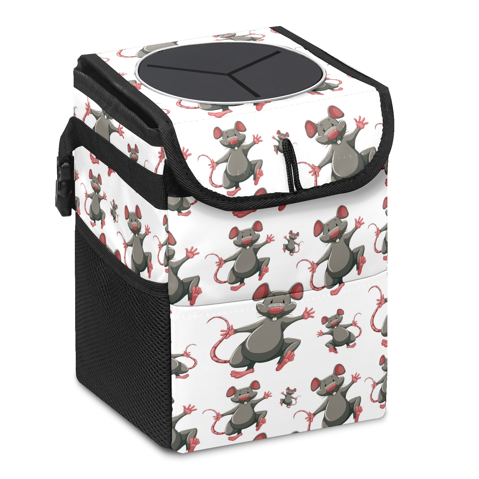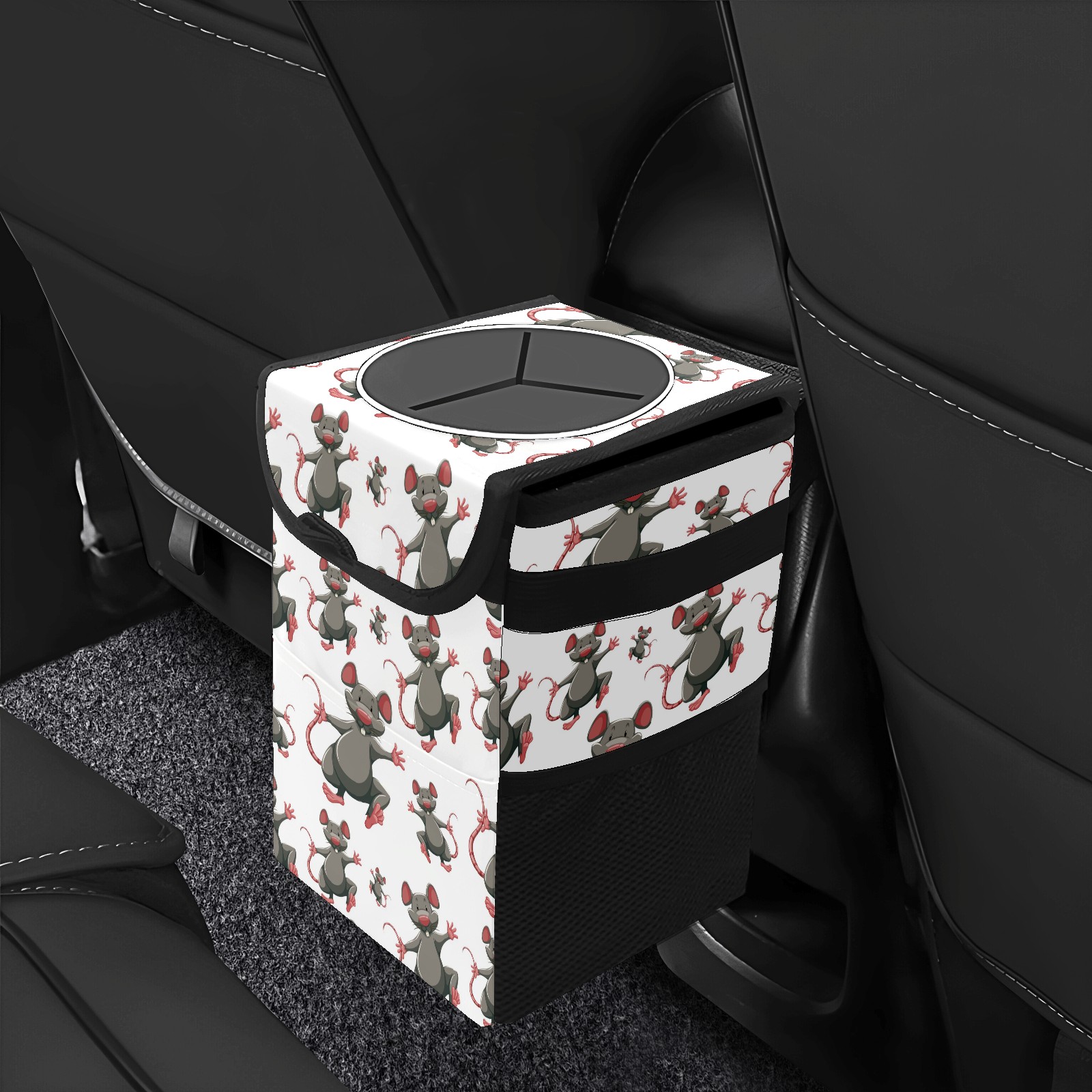 Car Garbage Can — Multi-functional, Lightweight Portable, Reusable Vehicle Trash Can, Waterproof with Sufficient Storage Capacity Anima Rats Mice Pattern Grey Cartoon