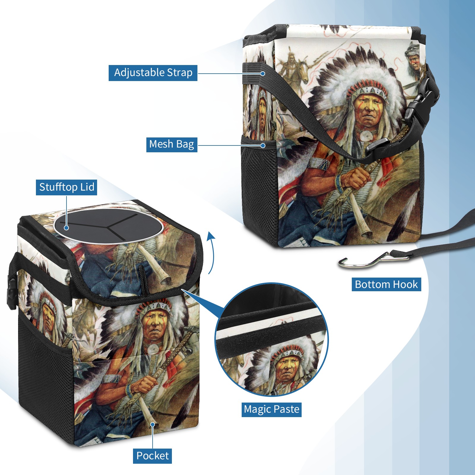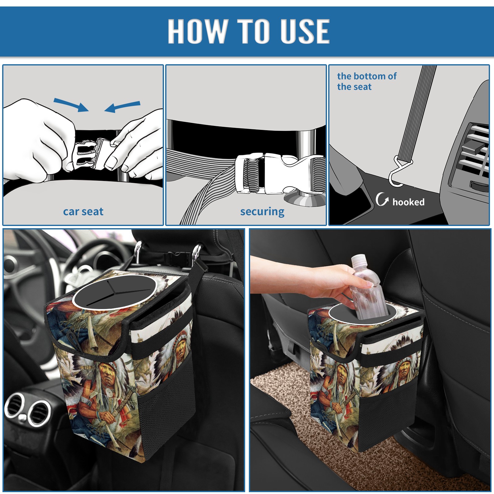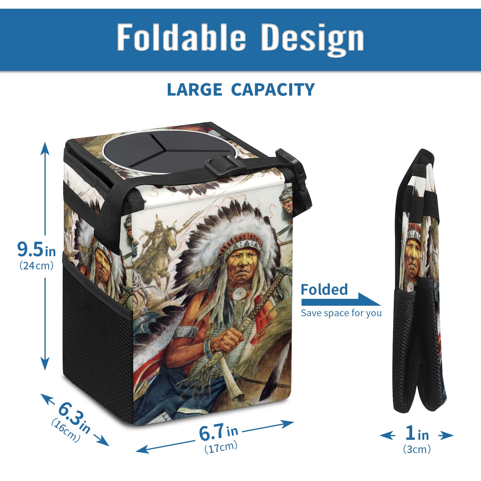Car Garbage Can — Multi-functional, Lightweight Portable, Reusable Vehicle Trash Can, Waterproof with Sufficient Storage Capacity Native African American Indians