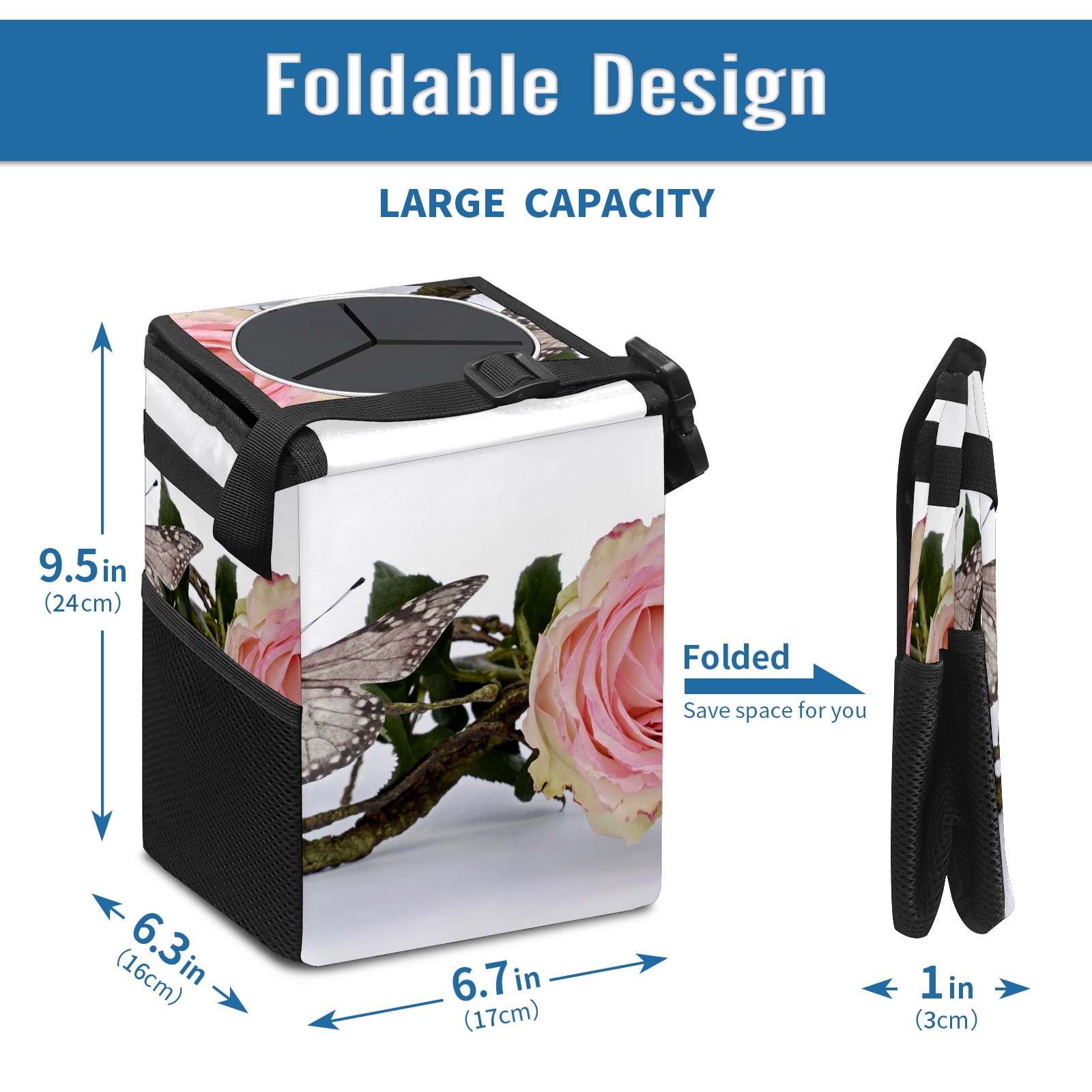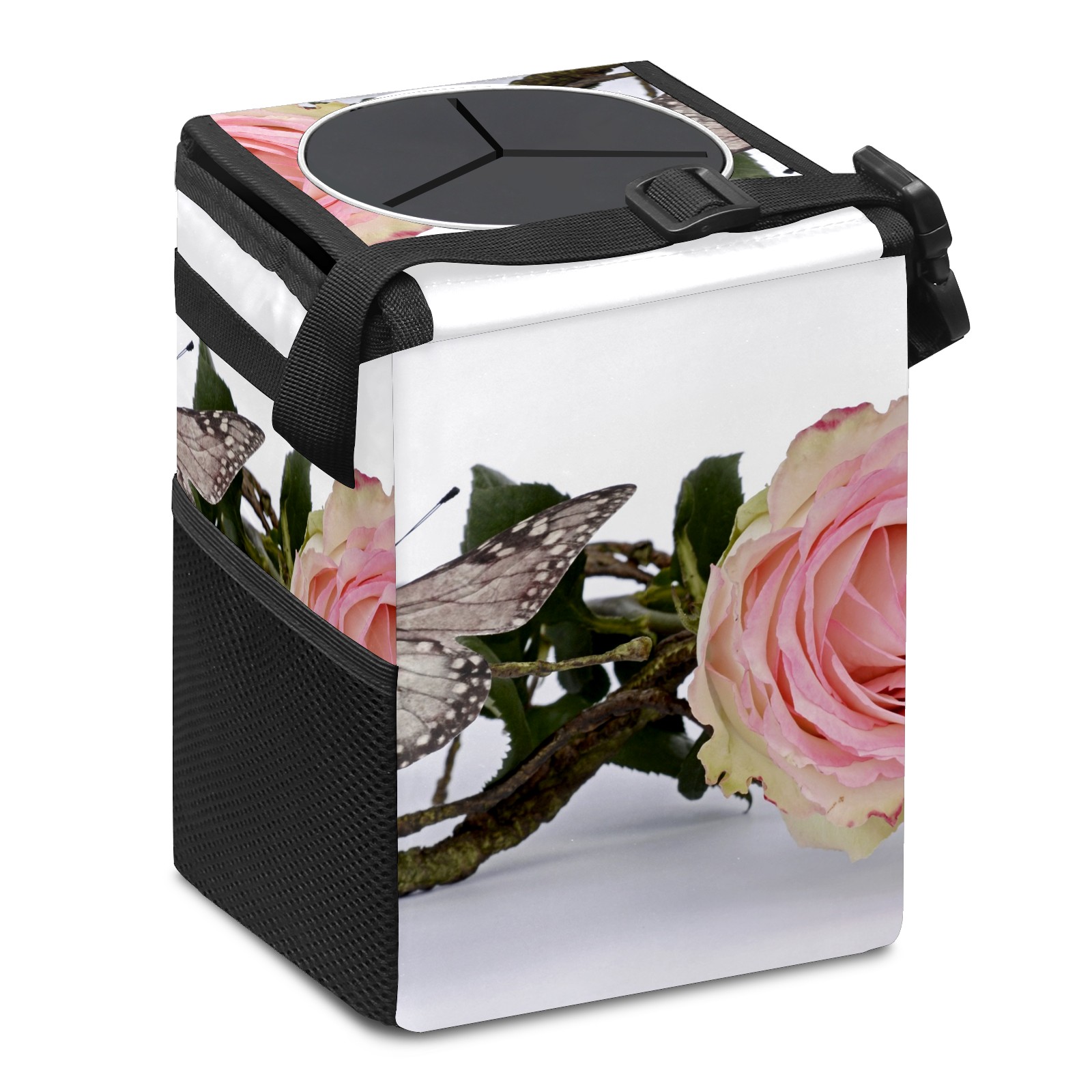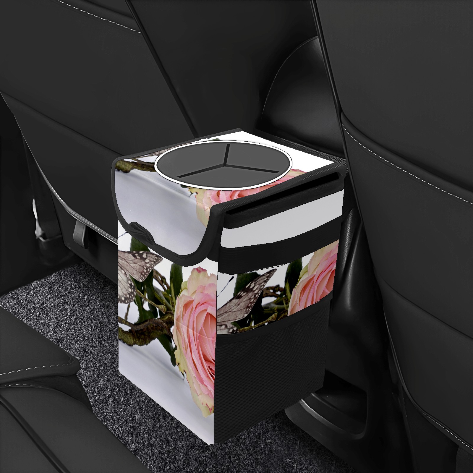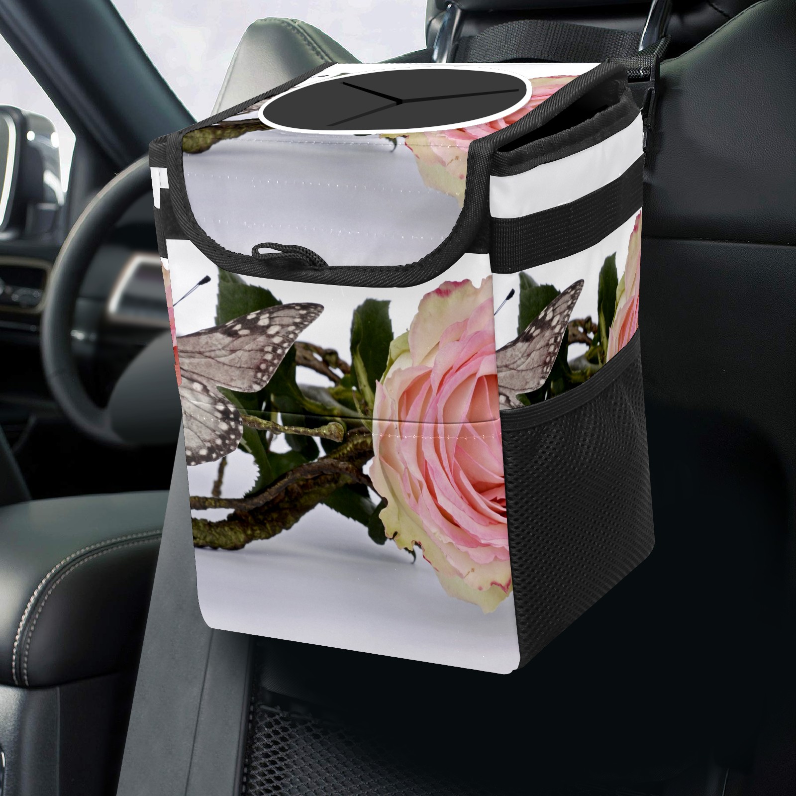 Car Garbage Can — Multi-functional, Lightweight Portable, Reusable Vehicle Trash Can, Waterproof with Sufficient Storage Capacity Rose And Butterfly