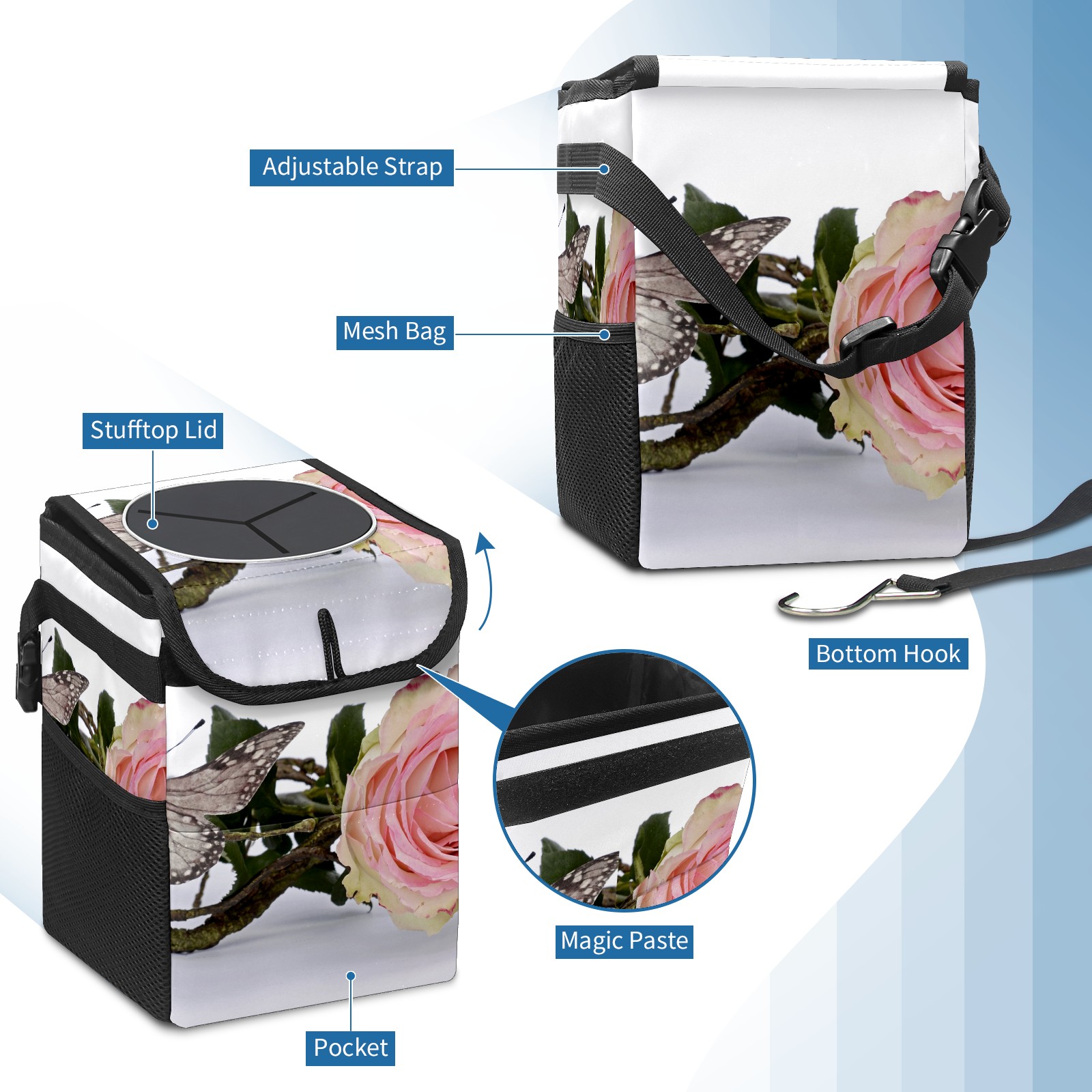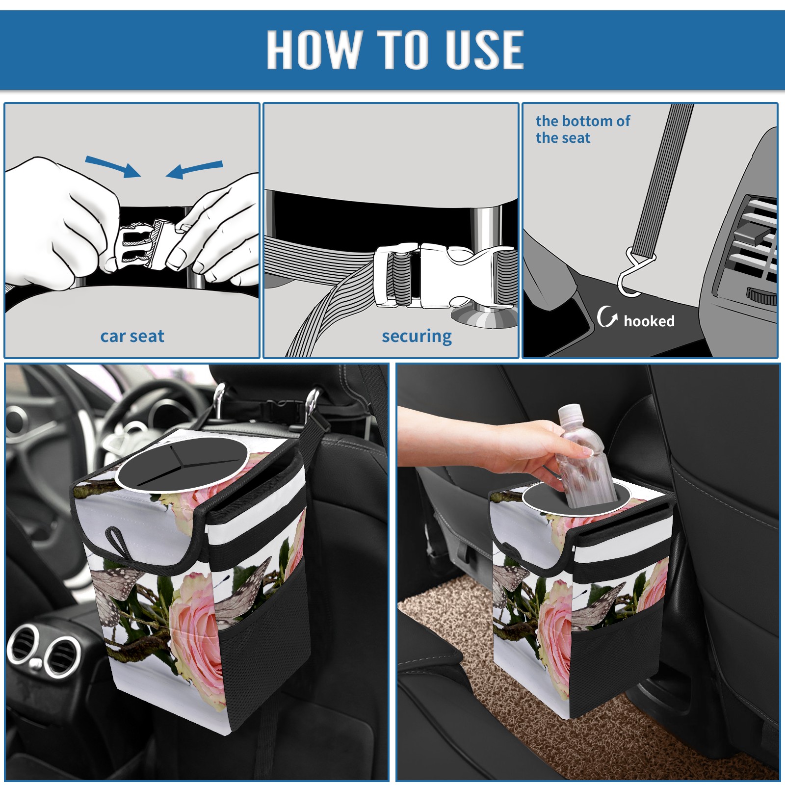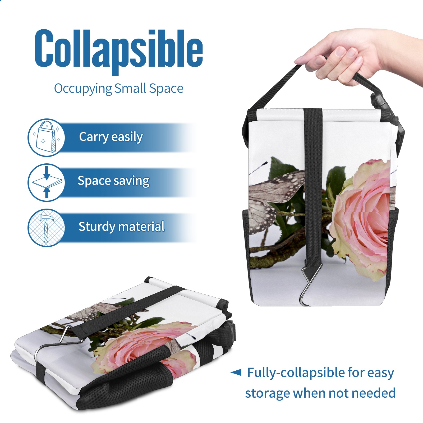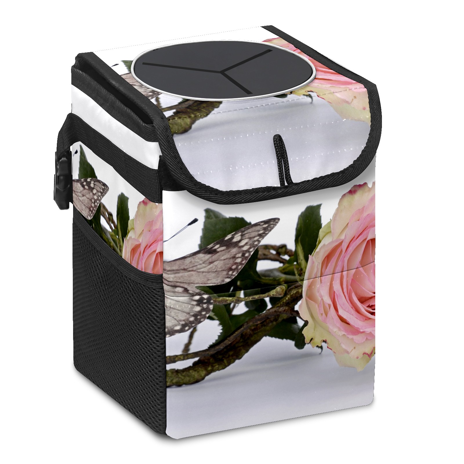 Car Garbage Can — Multi-functional, Lightweight Portable, Reusable Vehicle Trash Can, Waterproof with Sufficient Storage Capacity Rose And Butterfly