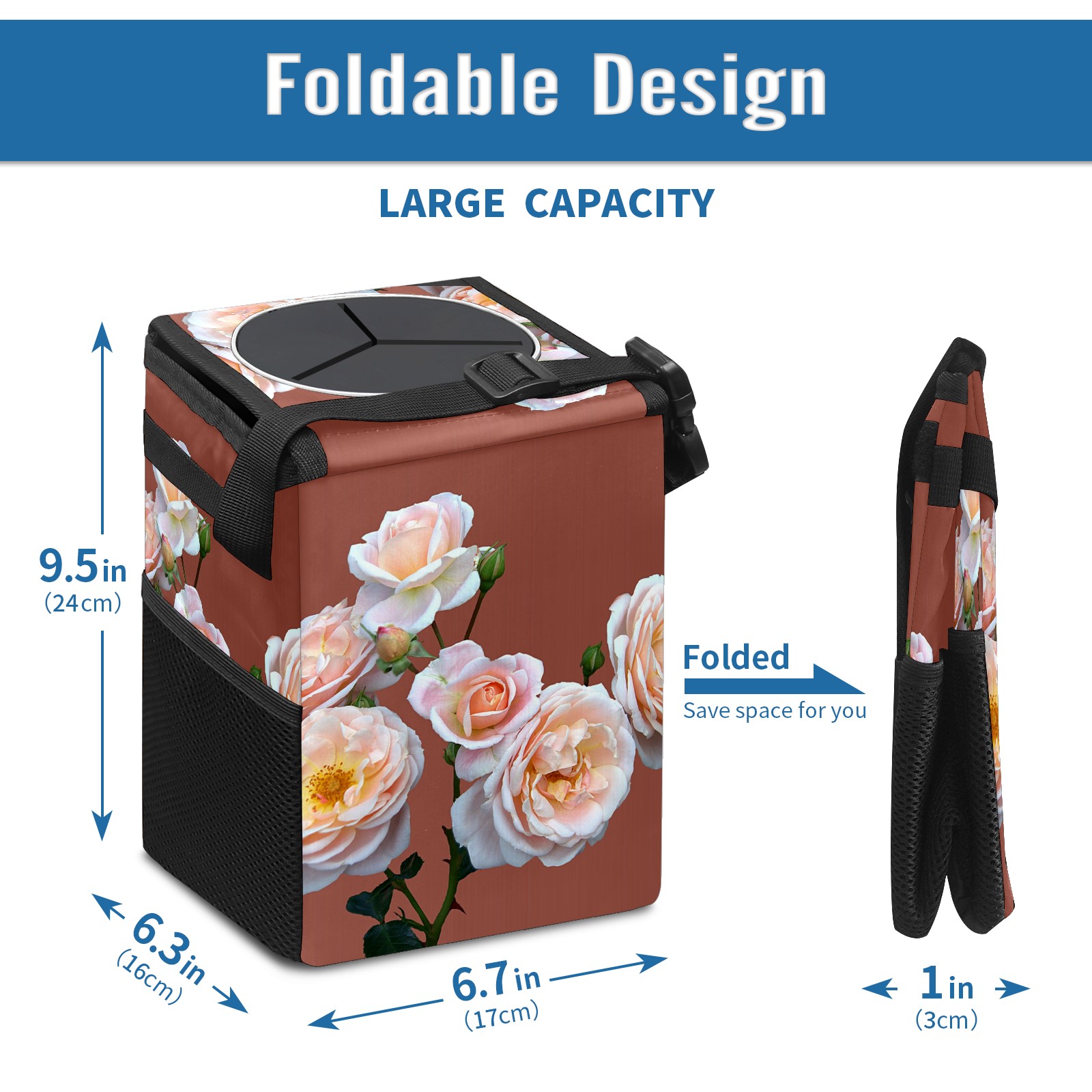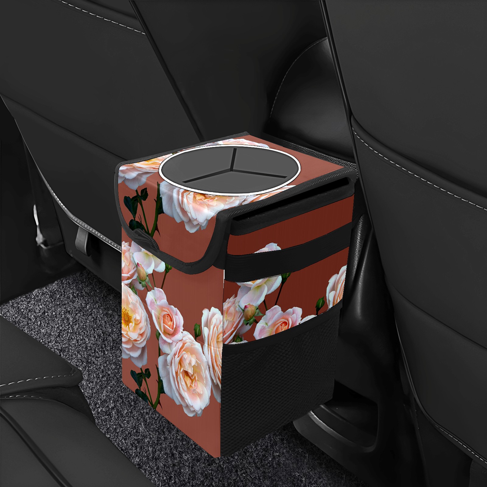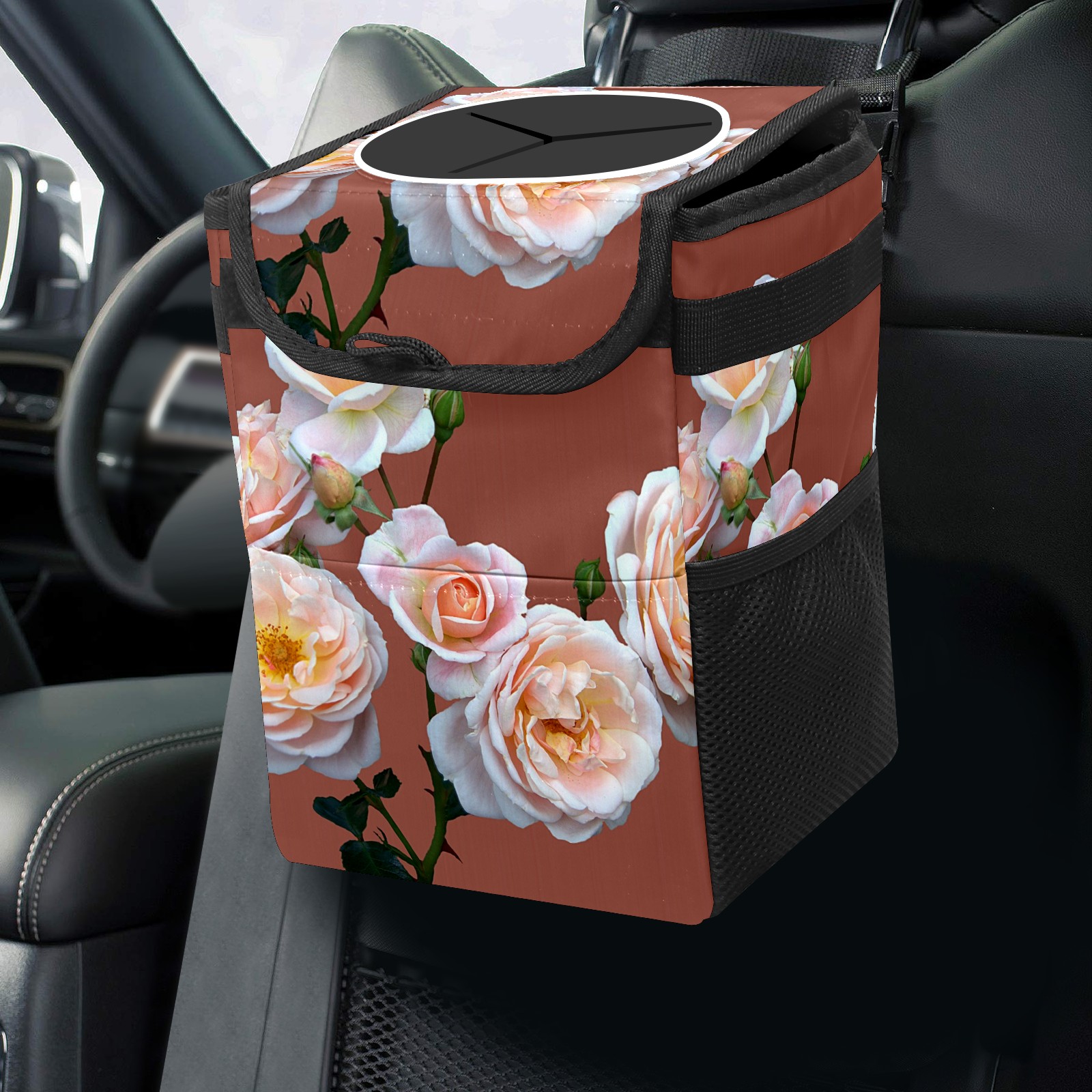 Car Garbage Can — Multi-functional, Lightweight Portable, Reusable Vehicle Trash Can, Waterproof with Sufficient Storage Capacity Pink Roses