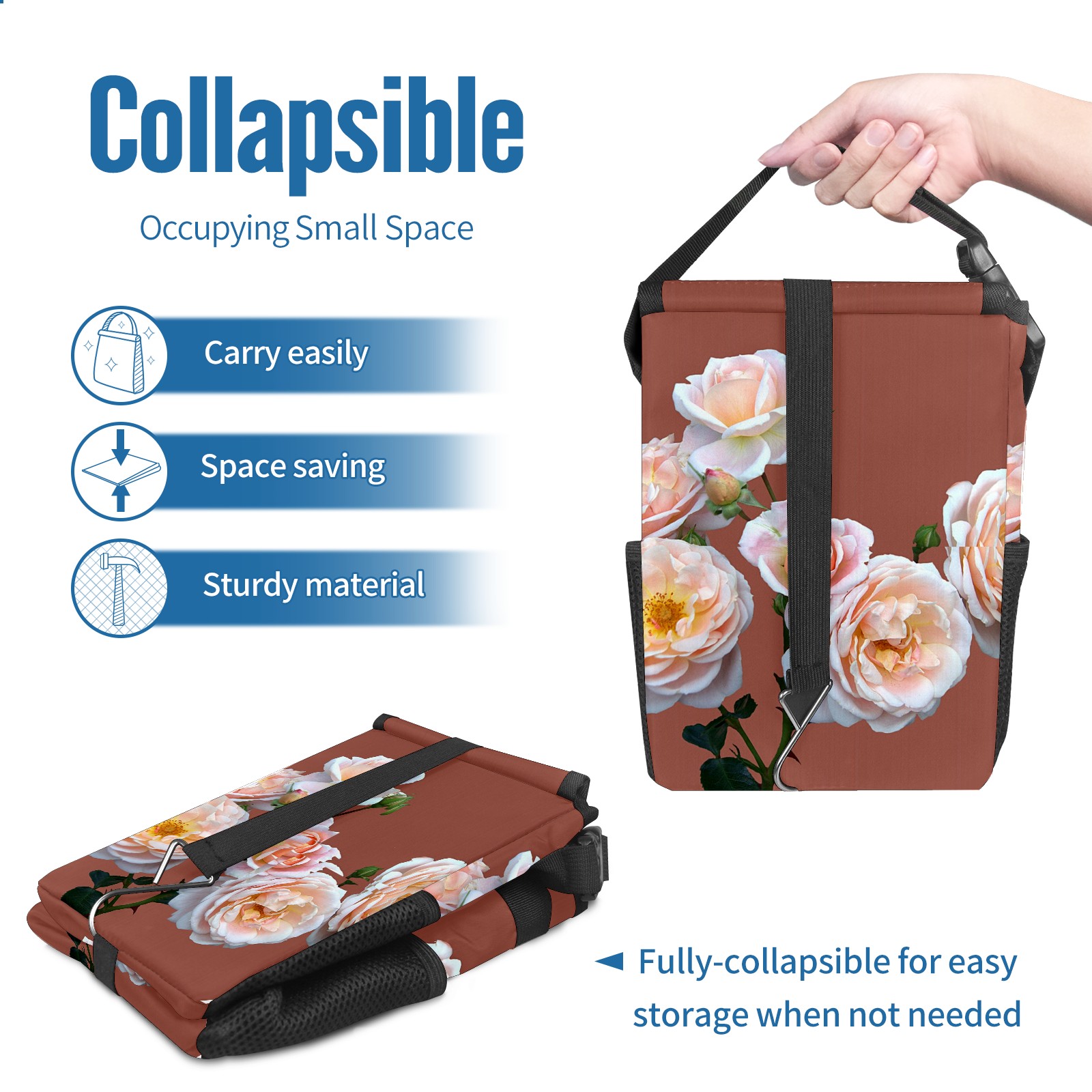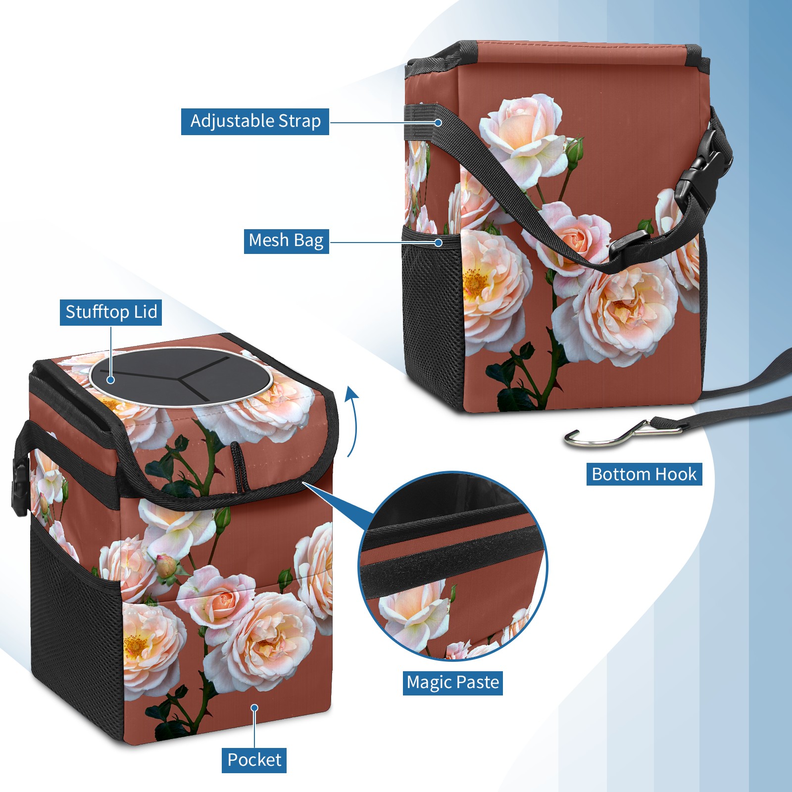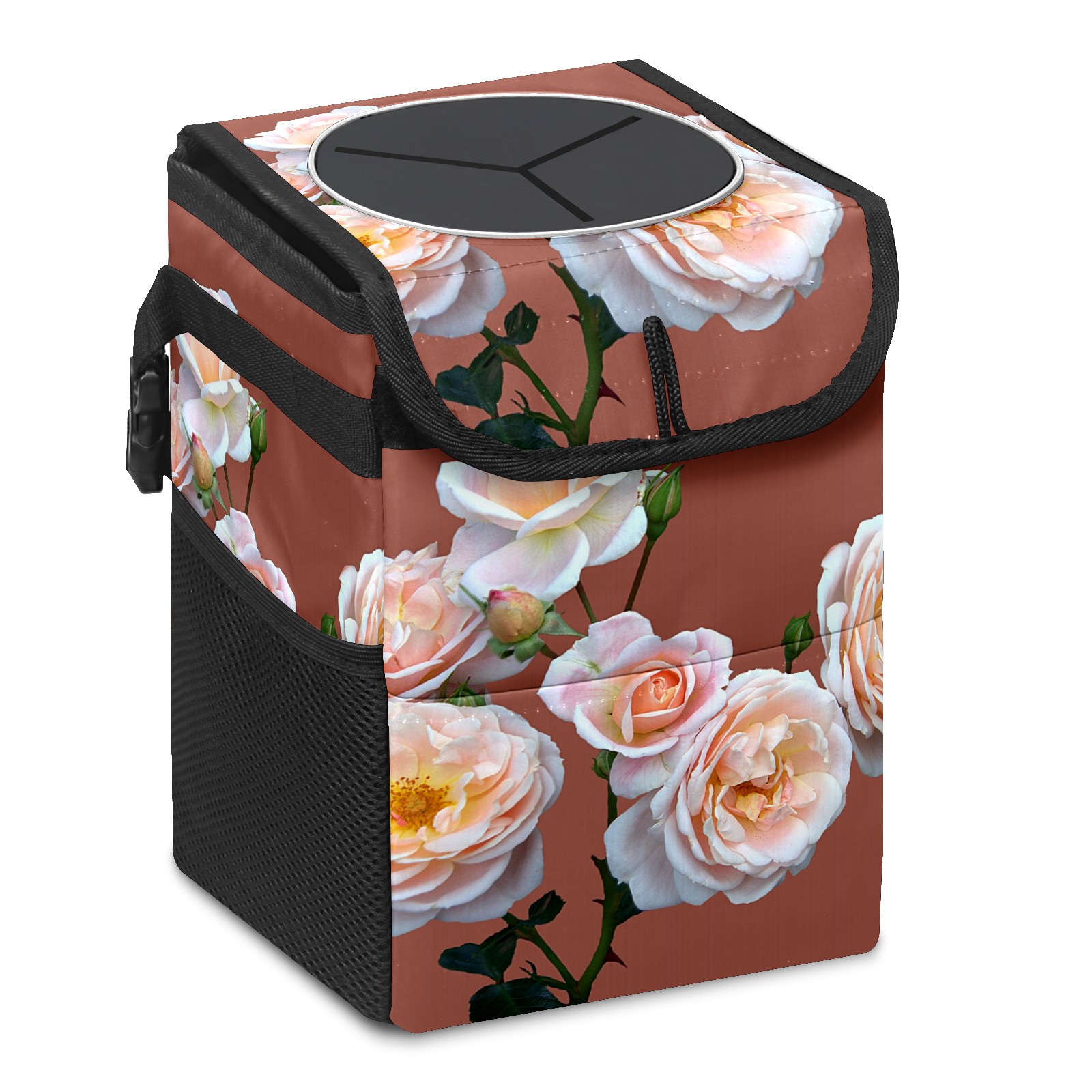 Car Garbage Can — Multi-functional, Lightweight Portable, Reusable Vehicle Trash Can, Waterproof with Sufficient Storage Capacity Pink Roses