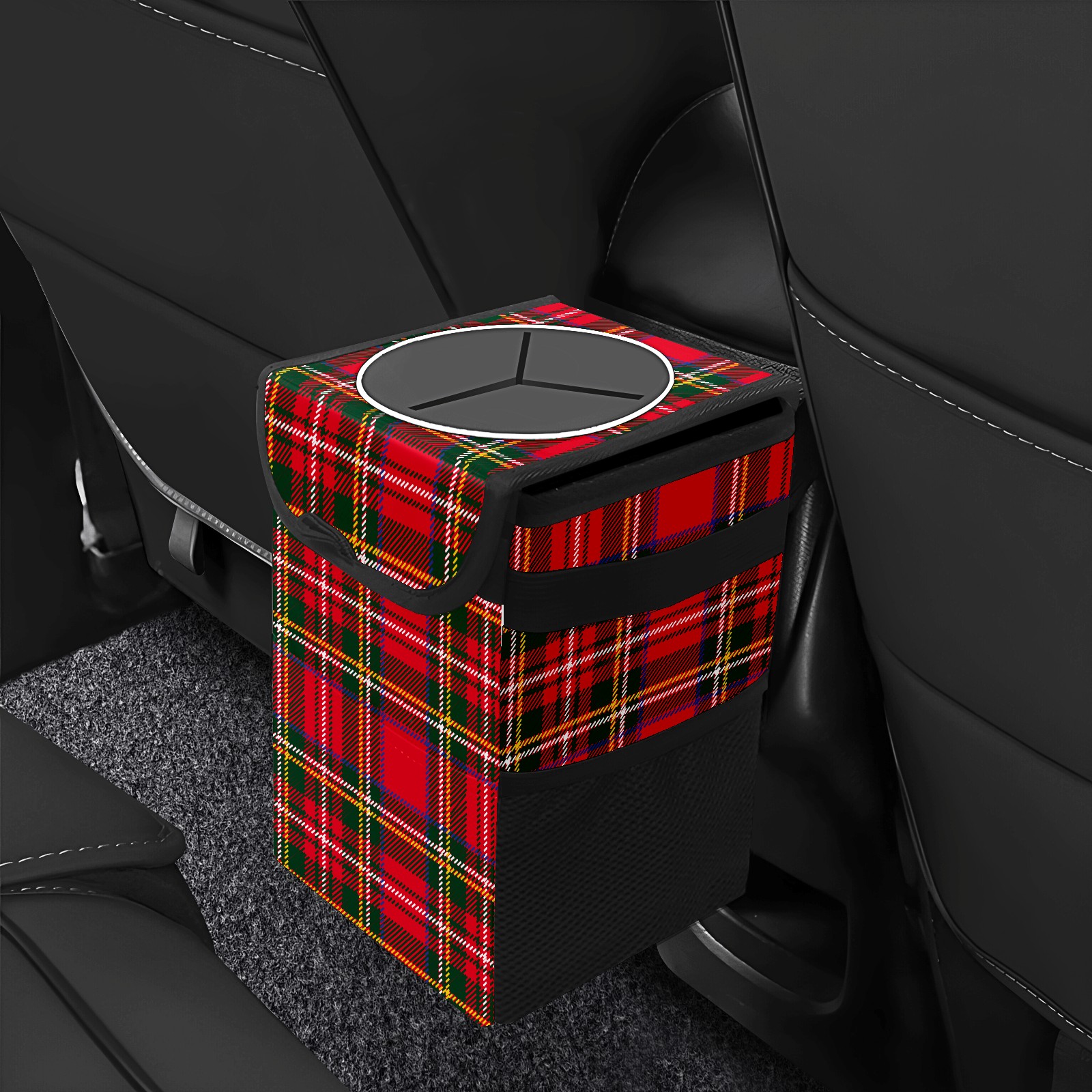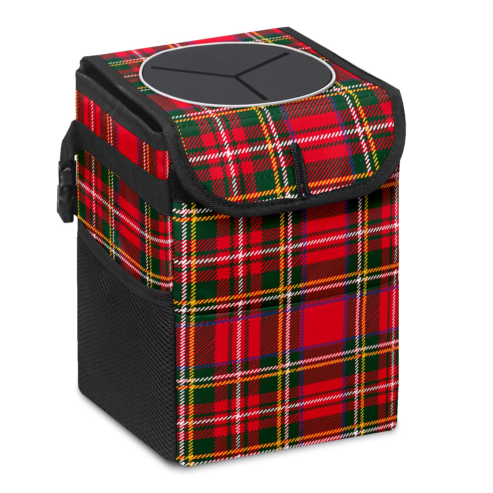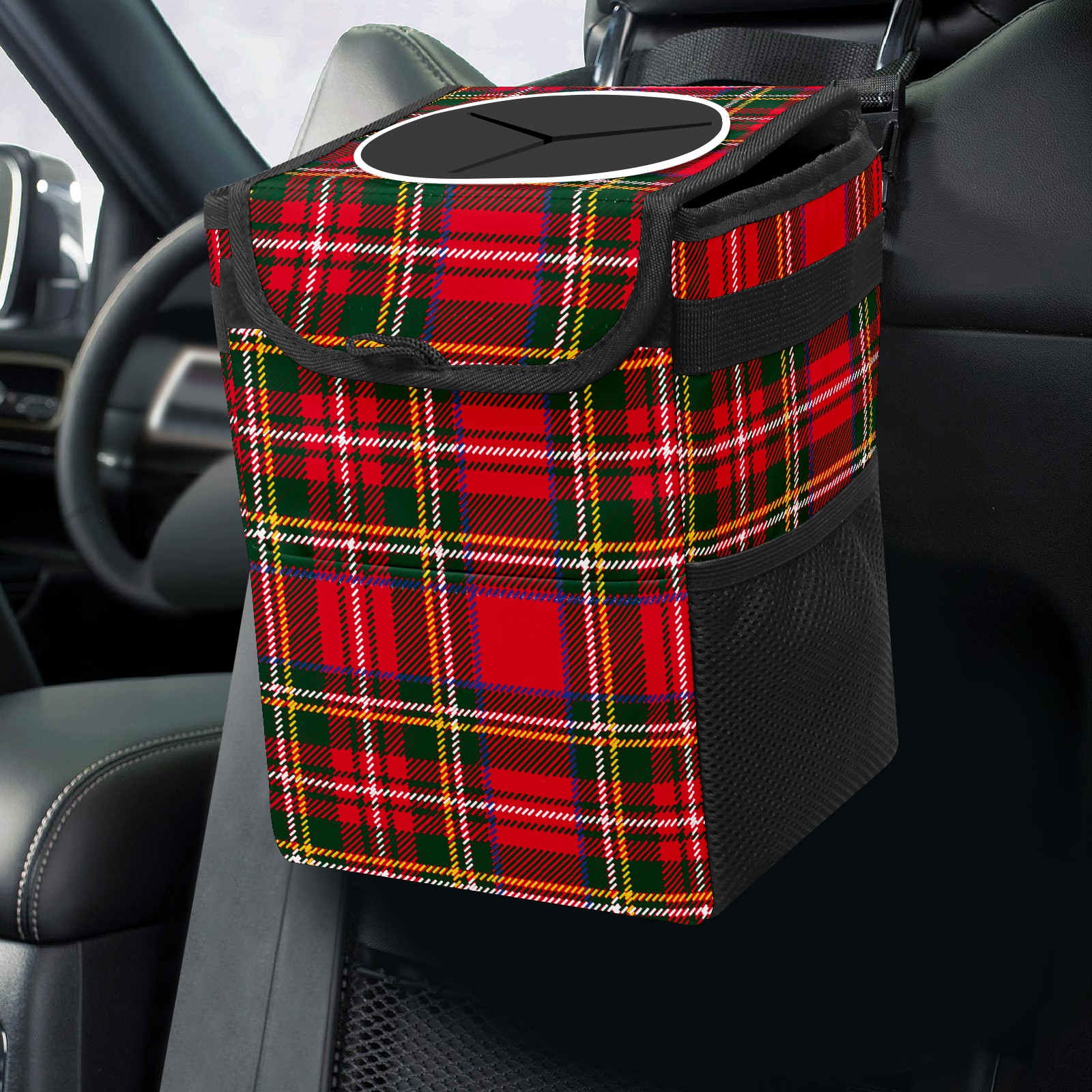 Car Garbage Can — Multi-functional, Lightweight Portable, Reusable Vehicle Trash Can, Waterproof with Sufficient Storage Capacity Red Green Tartan Plaid Pattern