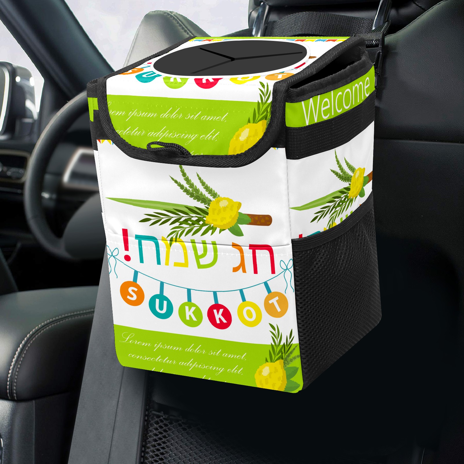 Car Garbage Can — Multi-functional, Lightweight Portable, Reusable Vehicle Trash Can, Waterproof with Sufficient Storage Capacity Harvest Season Citron Happy Sukkot