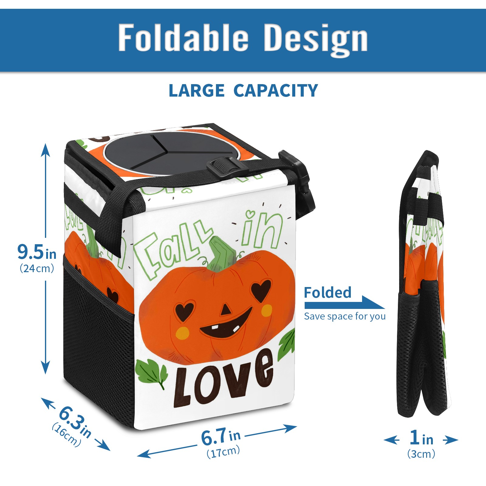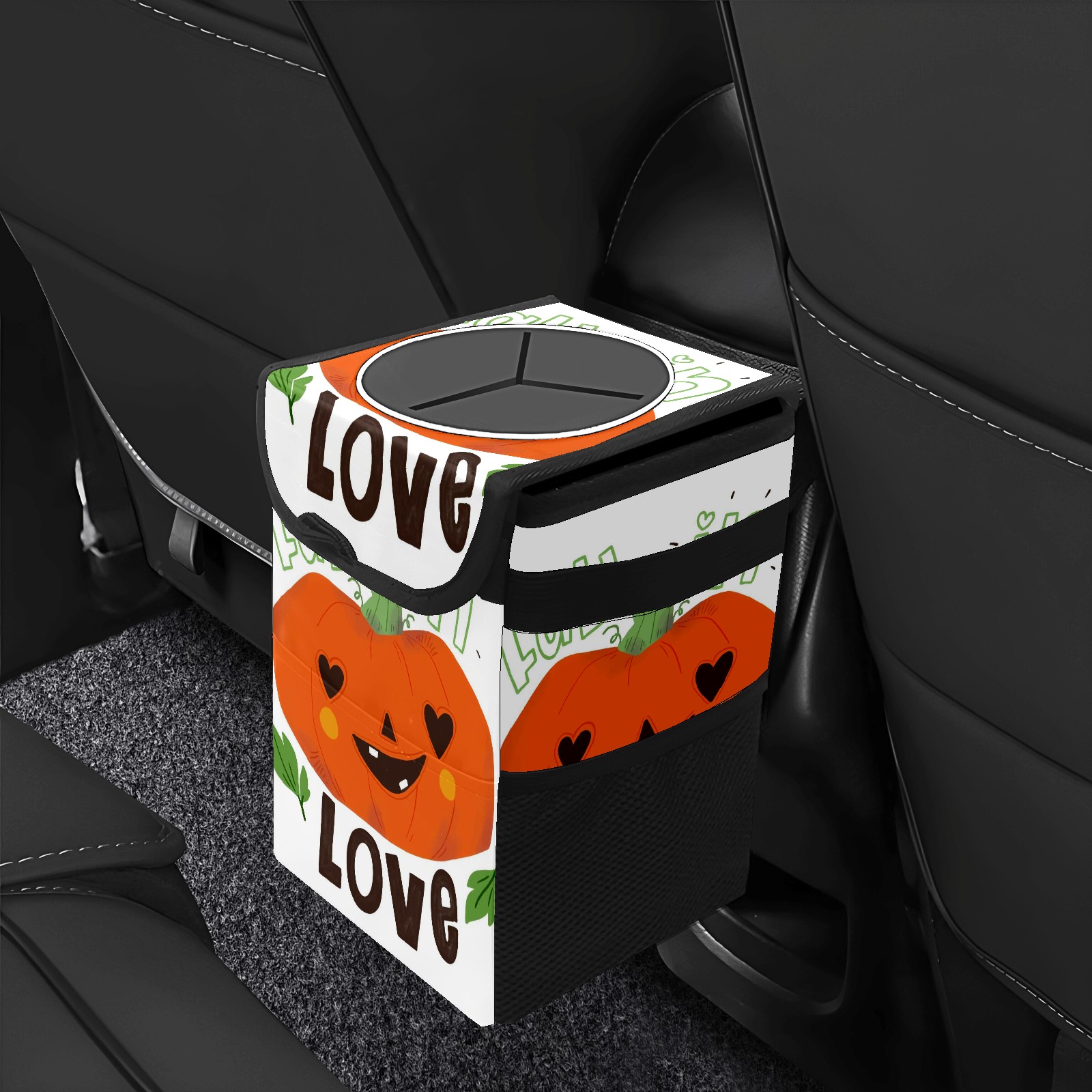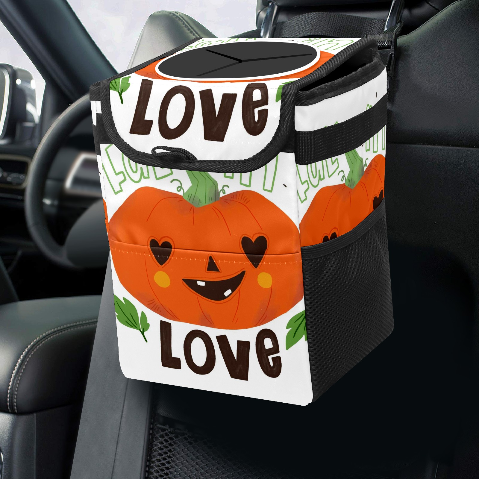 Car Garbage Can — Multi-functional, Lightweight Portable, Reusable Vehicle Trash Can, Waterproof with Sufficient Storage Capacity Halloween Pumpkin Fall Love