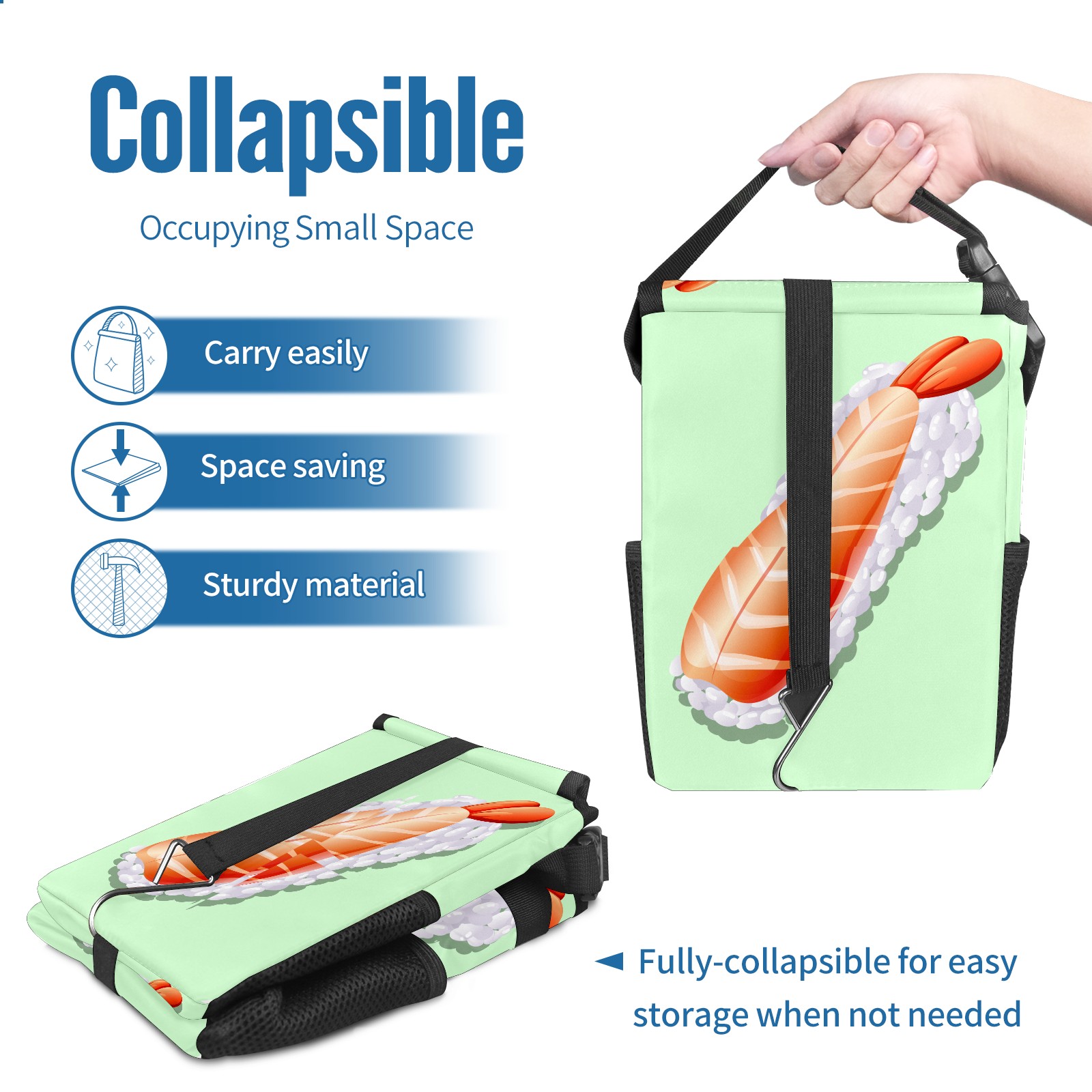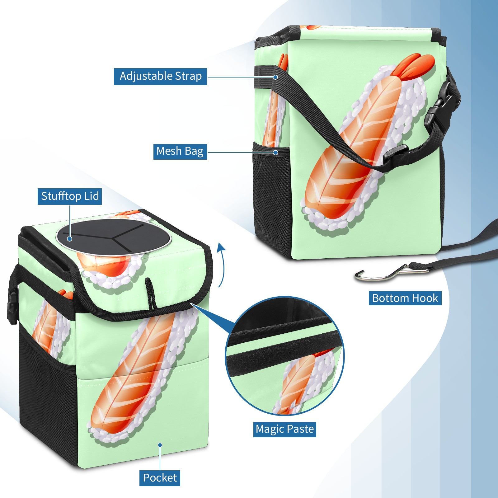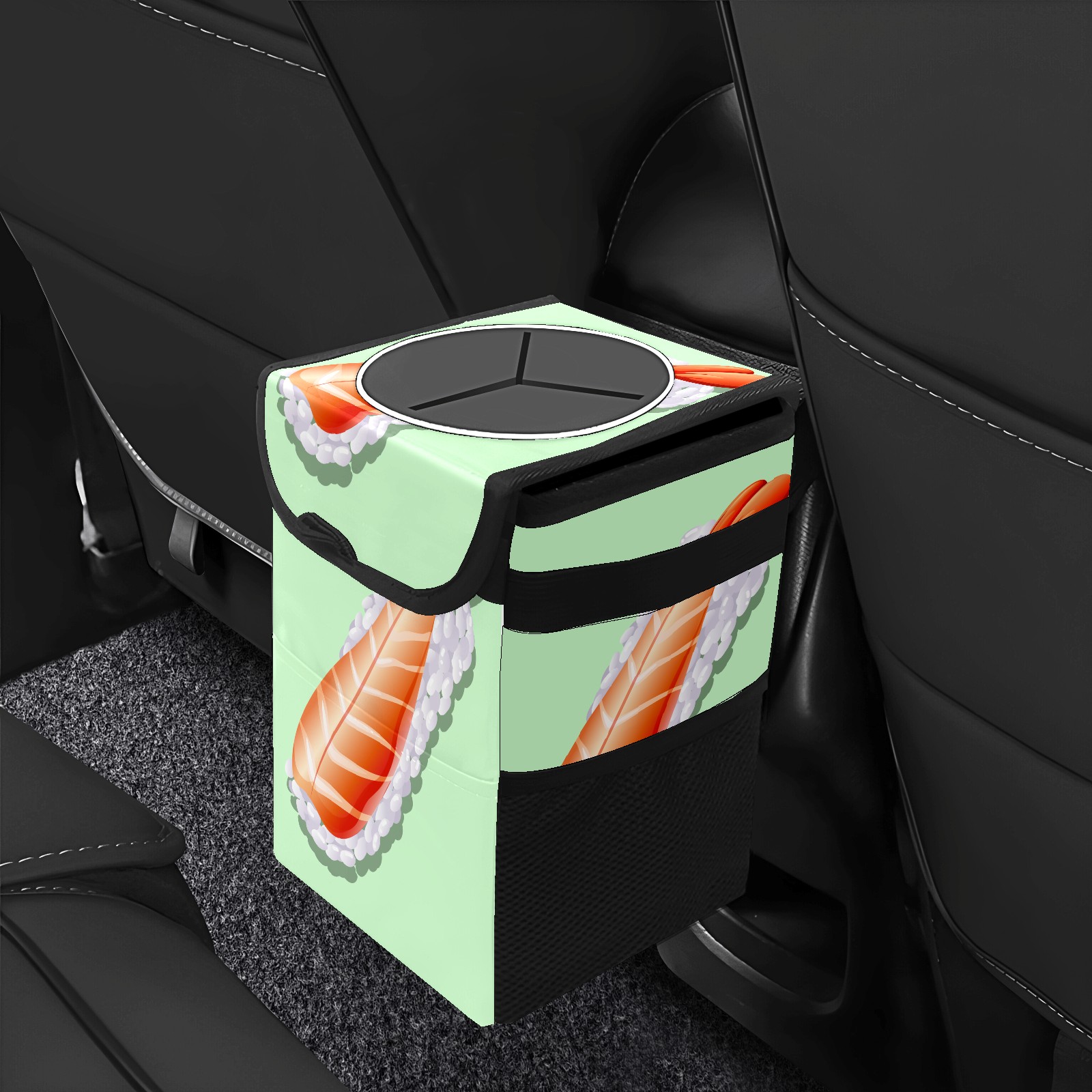 Car Garbage Can — Multi-functional, Lightweight Portable, Reusable Vehicle Trash Can, Waterproof with Sufficient Storage Capacity Cute Japanese Shrimp Sushi On Green Background