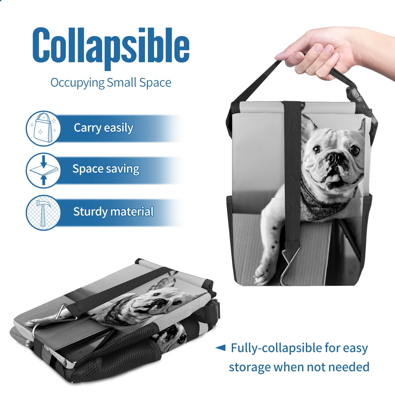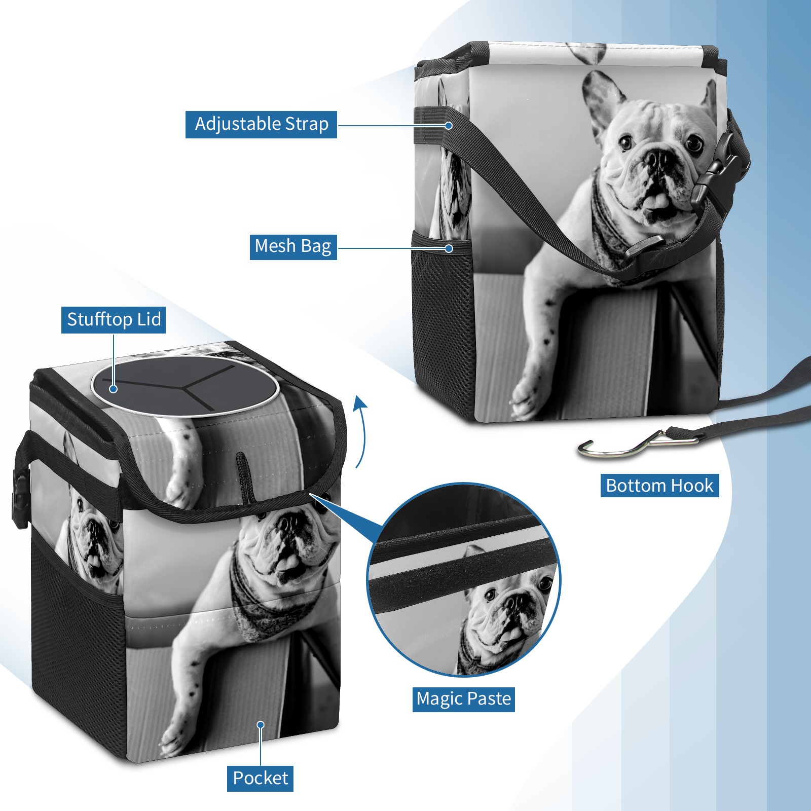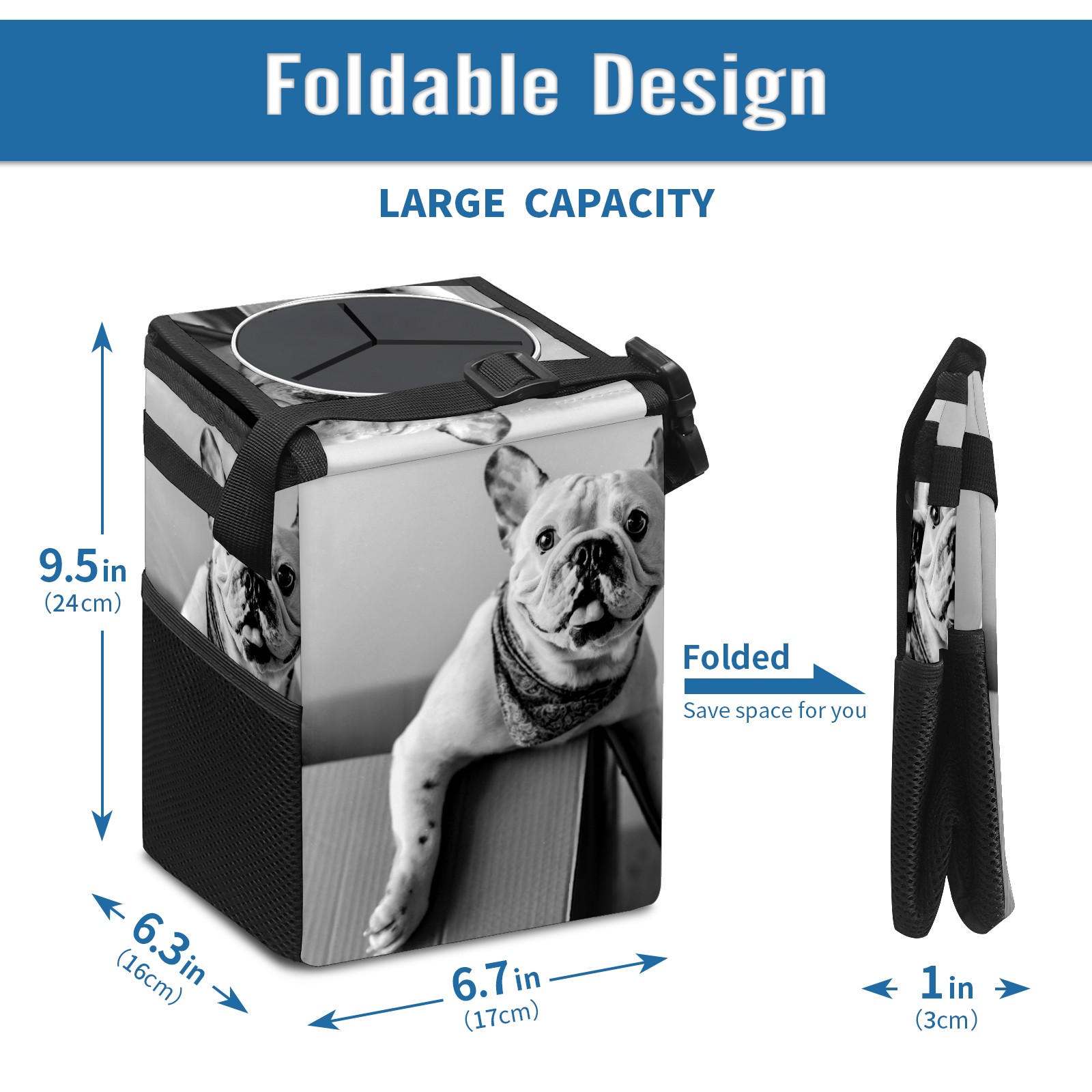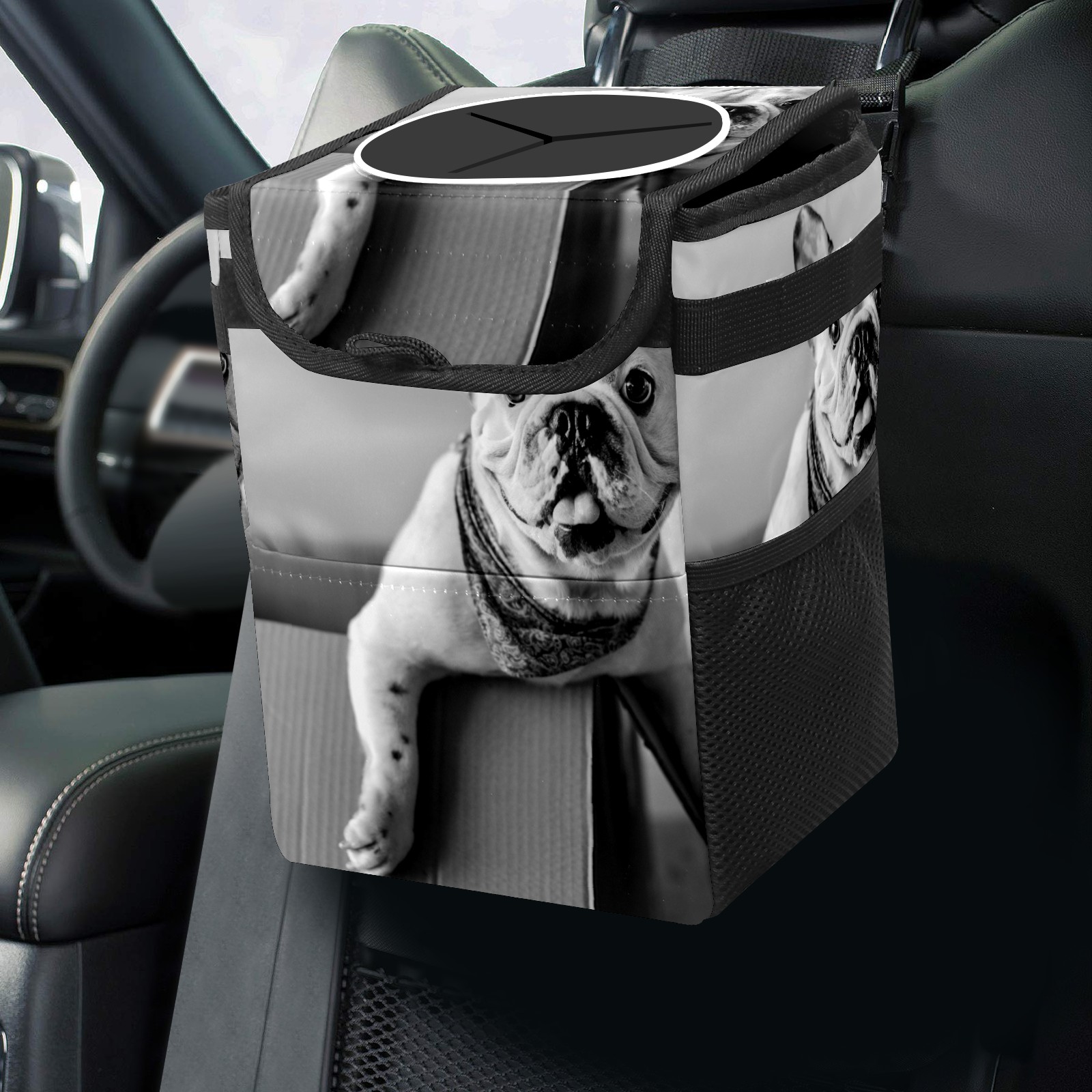 Car Garbage Can — Multi-functional, Lightweight Portable, Reusable Vehicle Trash Can, Waterproof with Sufficient Storage Capacity French Bulldog Vintage