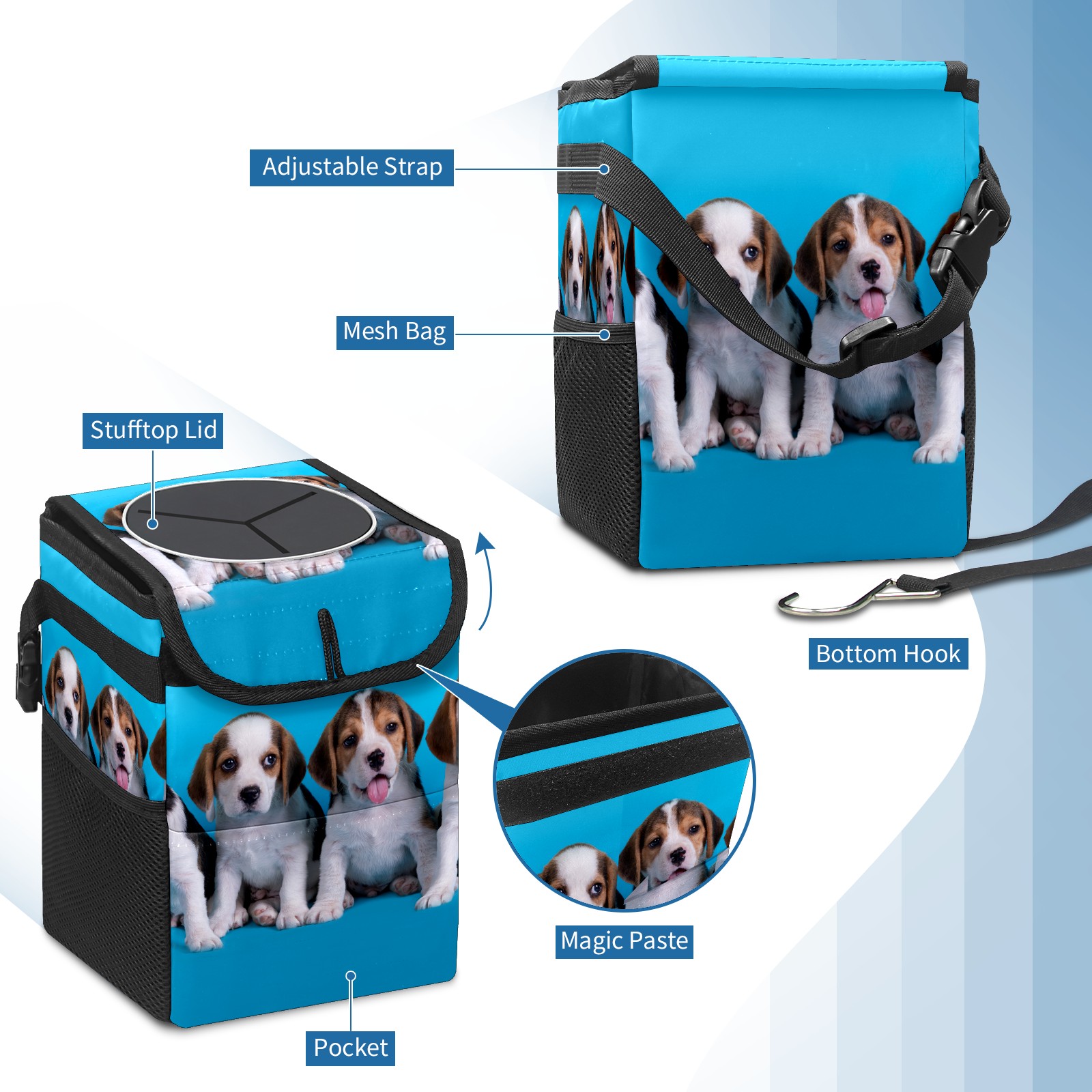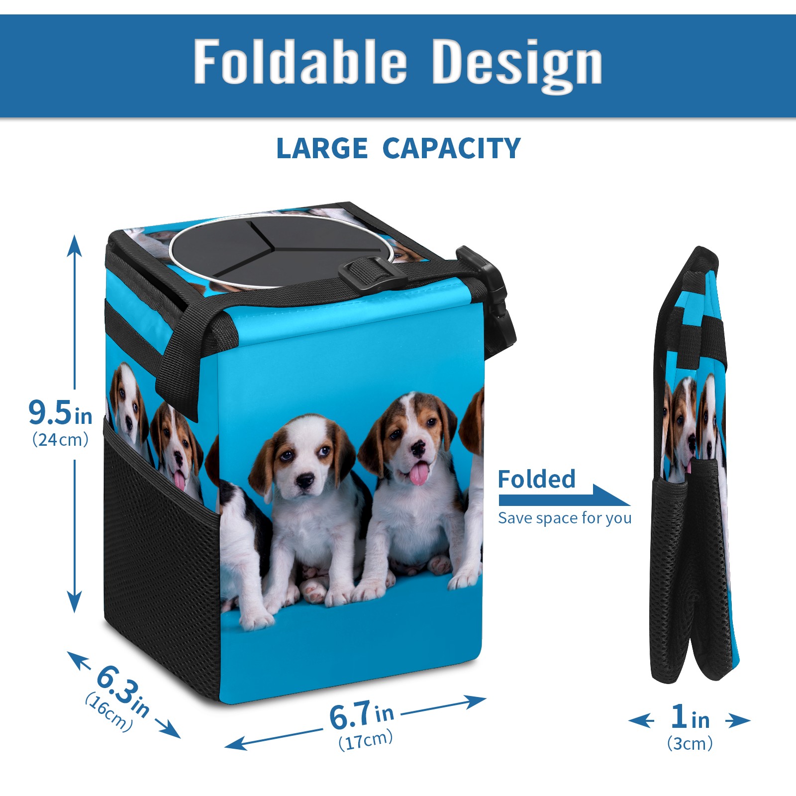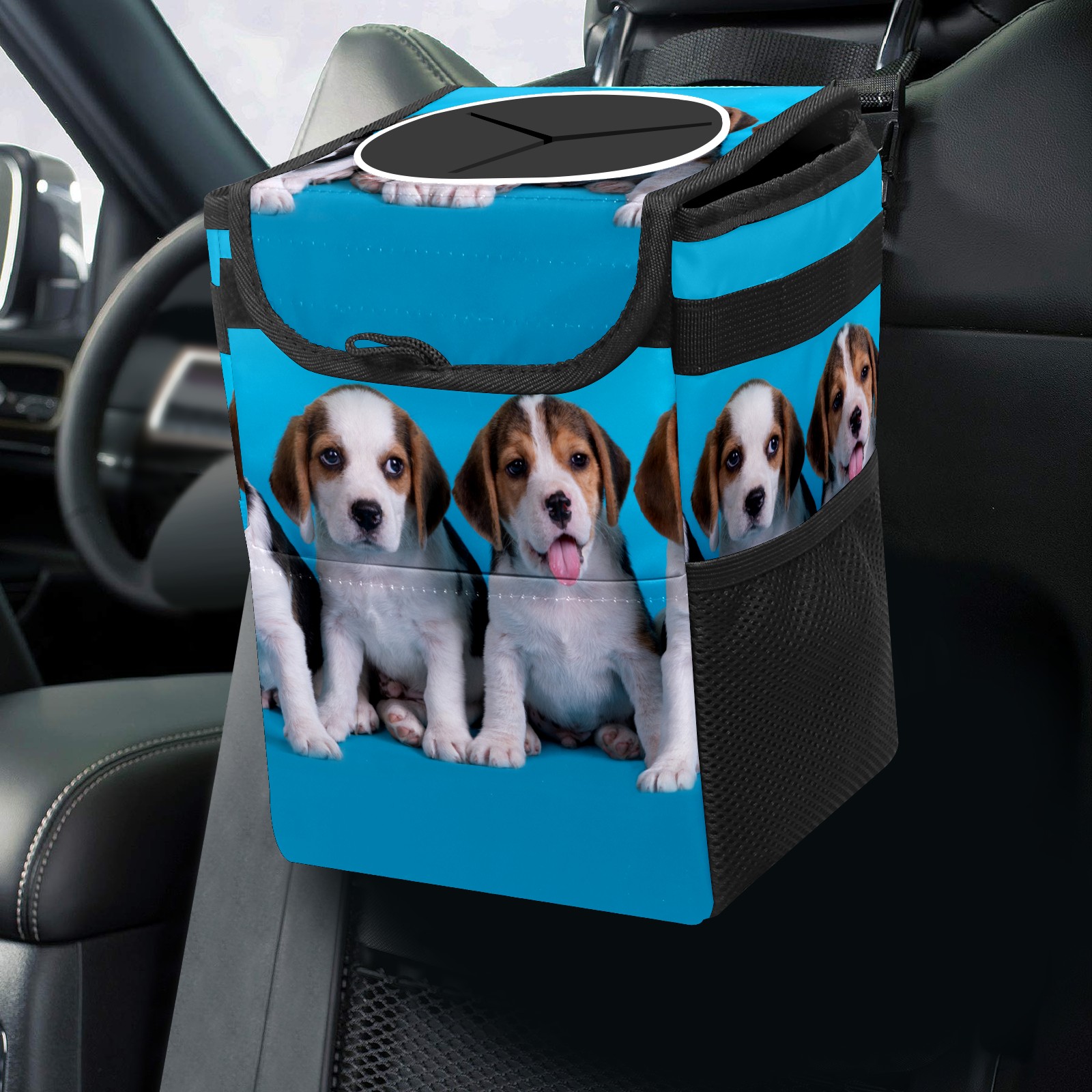 Car Garbage Can — Multi-functional, Lightweight Portable, Reusable Vehicle Trash Can, Waterproof with Sufficient Storage Capacity Dog Cute Puppy