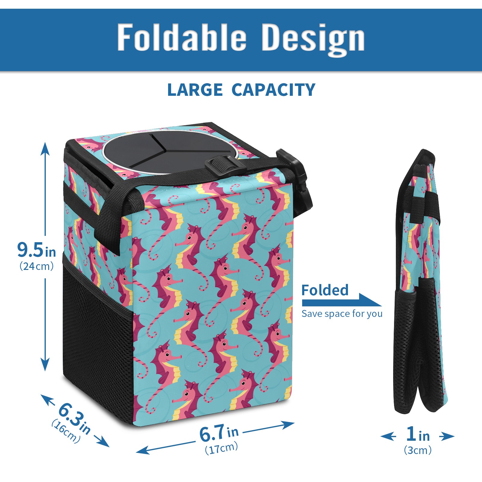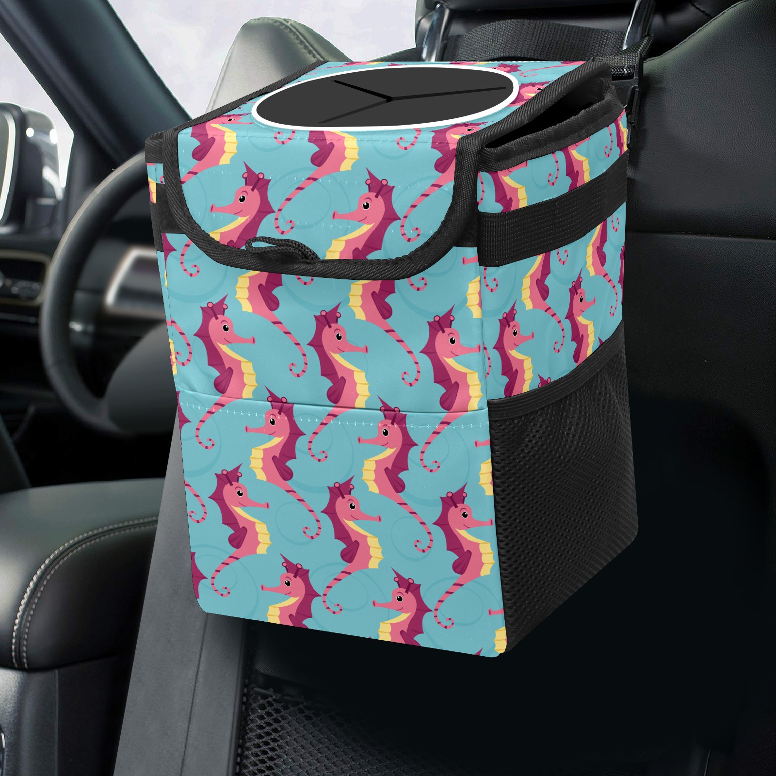 Car Garbage Can — Multi-functional, Lightweight Portable, Reusable Vehicle Trash Can, Waterproof with Sufficient Storage Capacity Sea Horse Cute