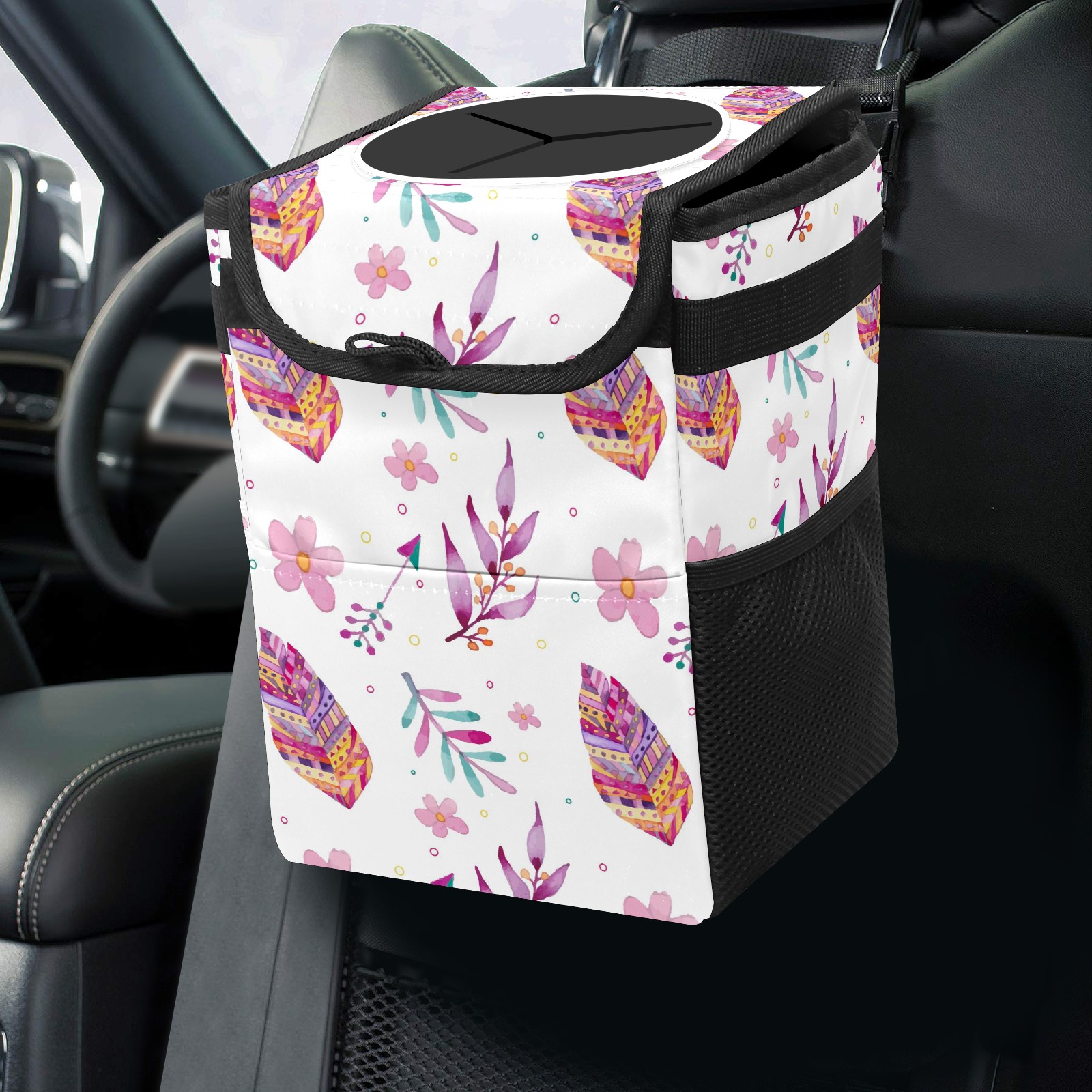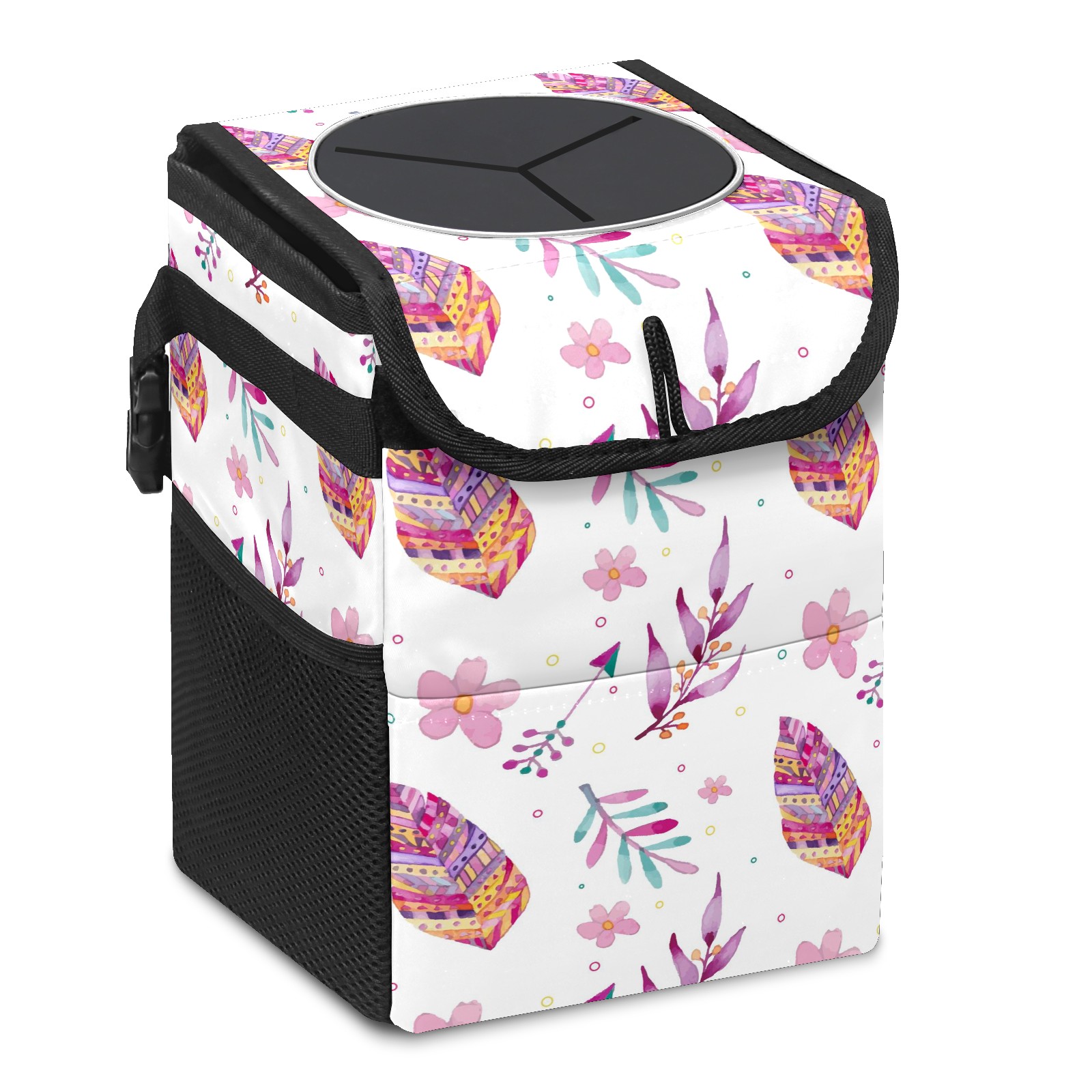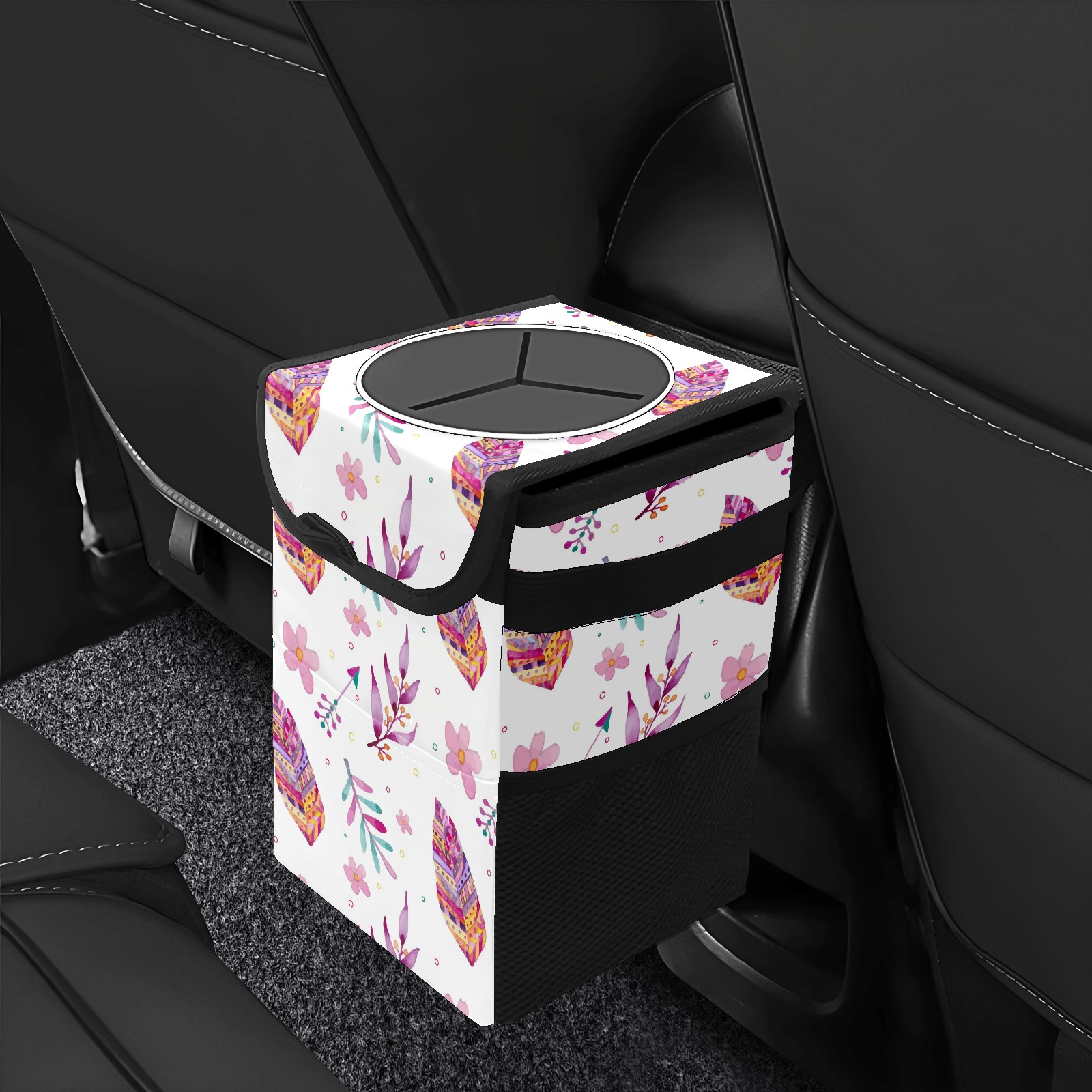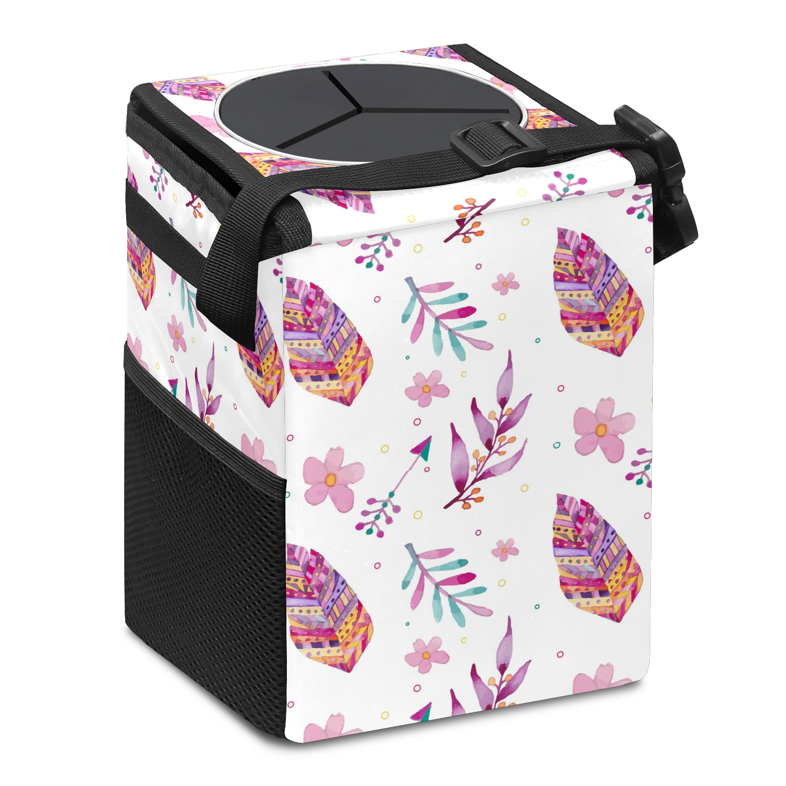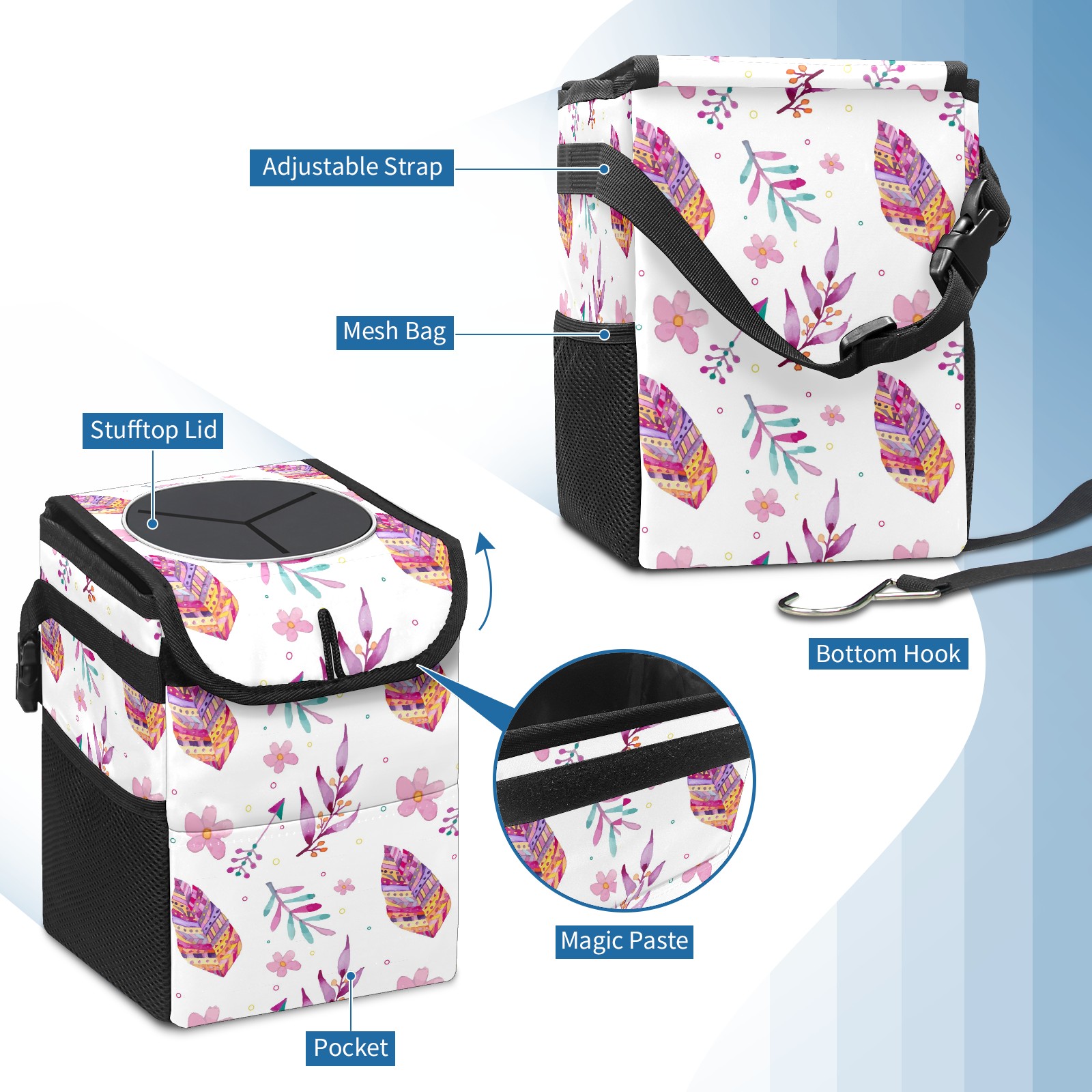 Car Garbage Can — Multi-functional, Lightweight Portable, Reusable Vehicle Trash Can, Waterproof with Sufficient Storage Capacity Boho Watercolor Feathers