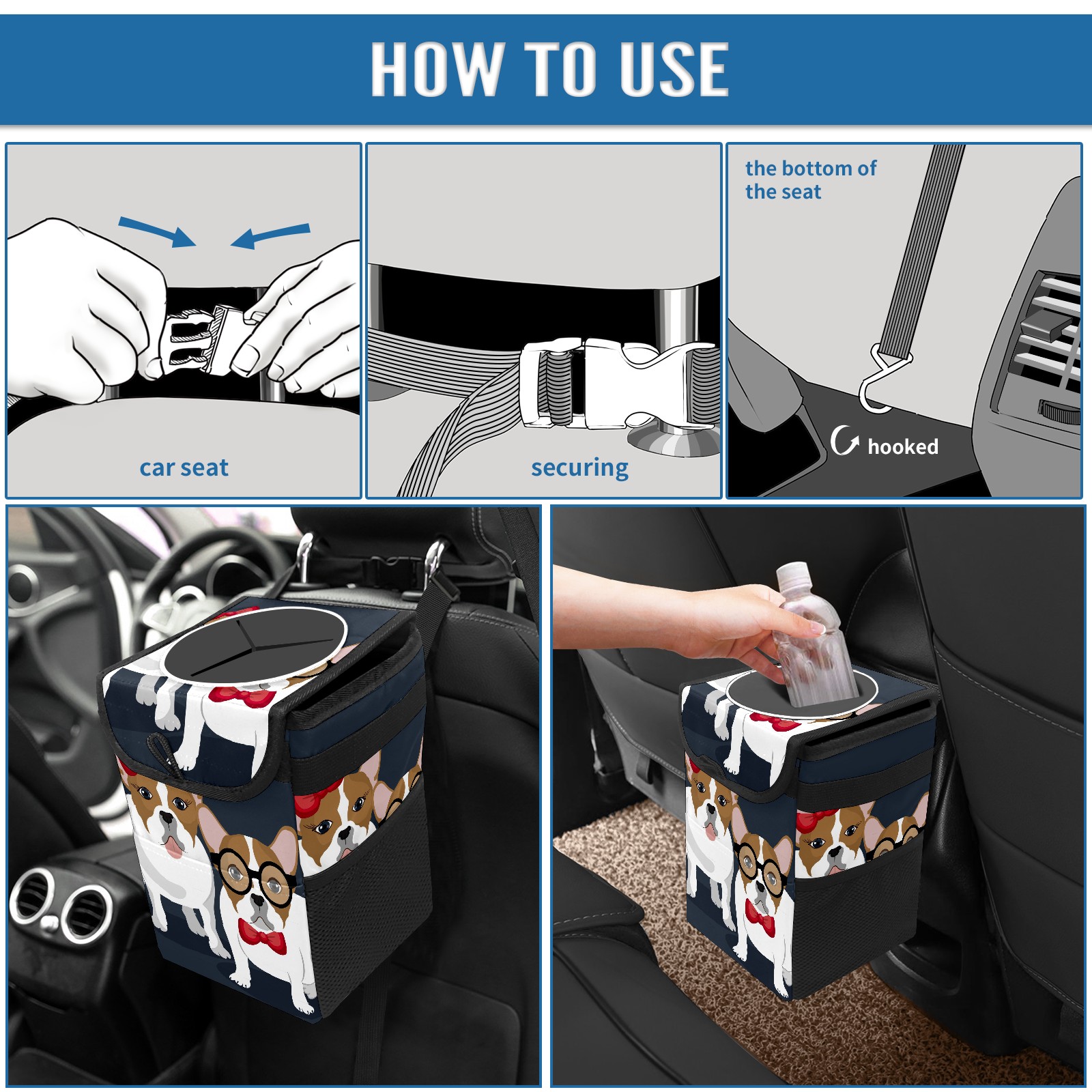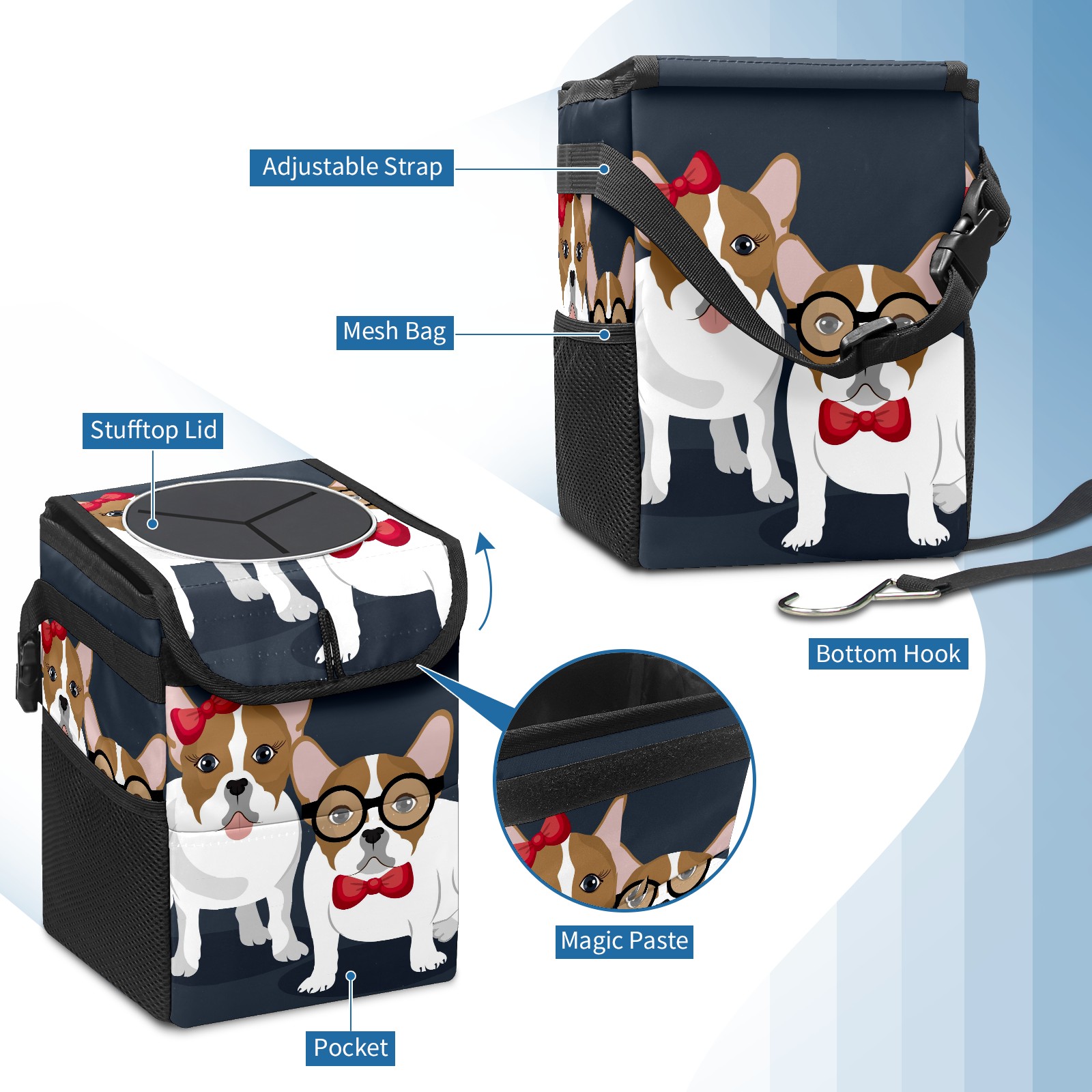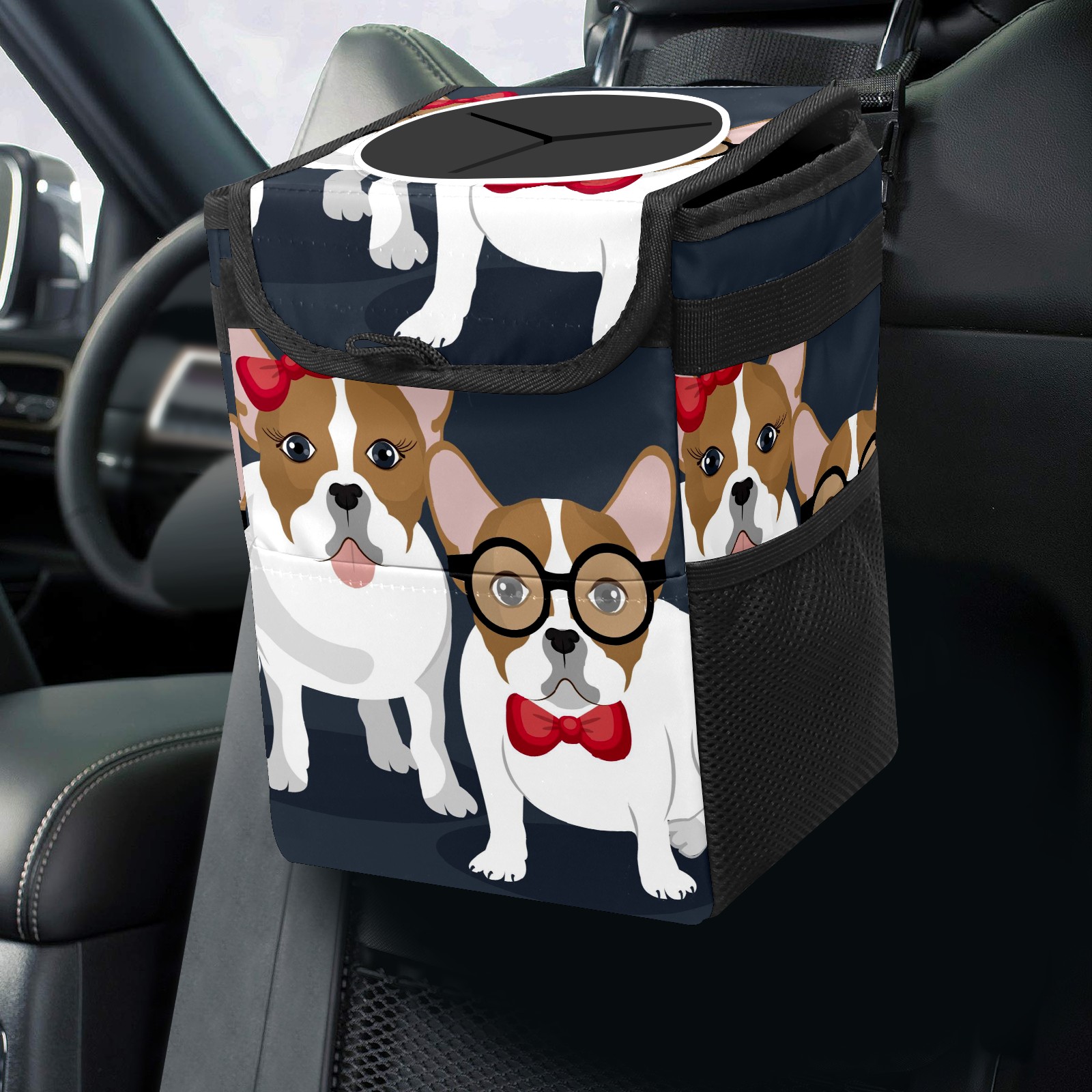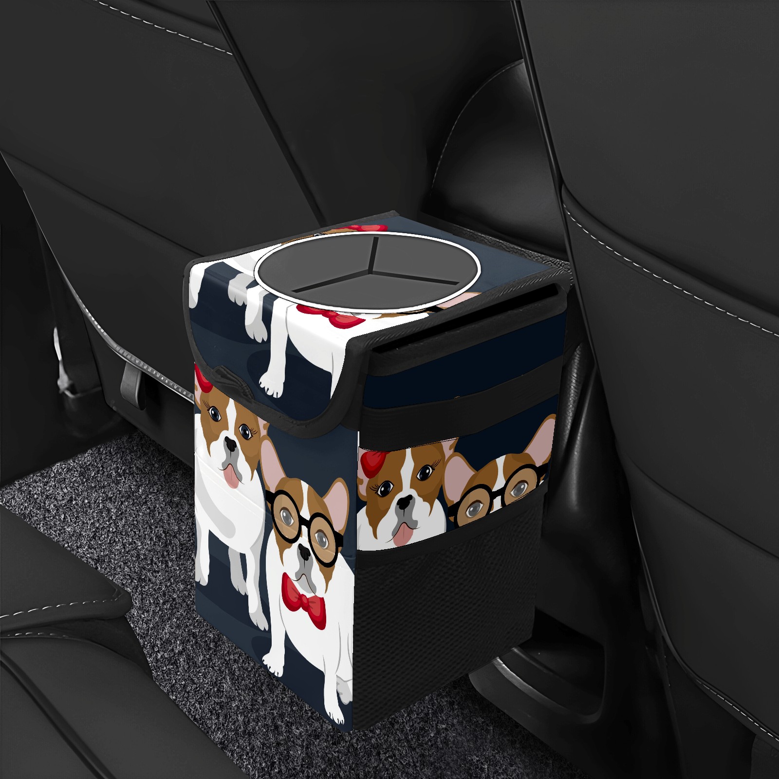 Car Garbage Can — Multi-functional, Lightweight Portable, Reusable Vehicle Trash Can, Waterproof with Sufficient Storage Capacity Bulldog Cute