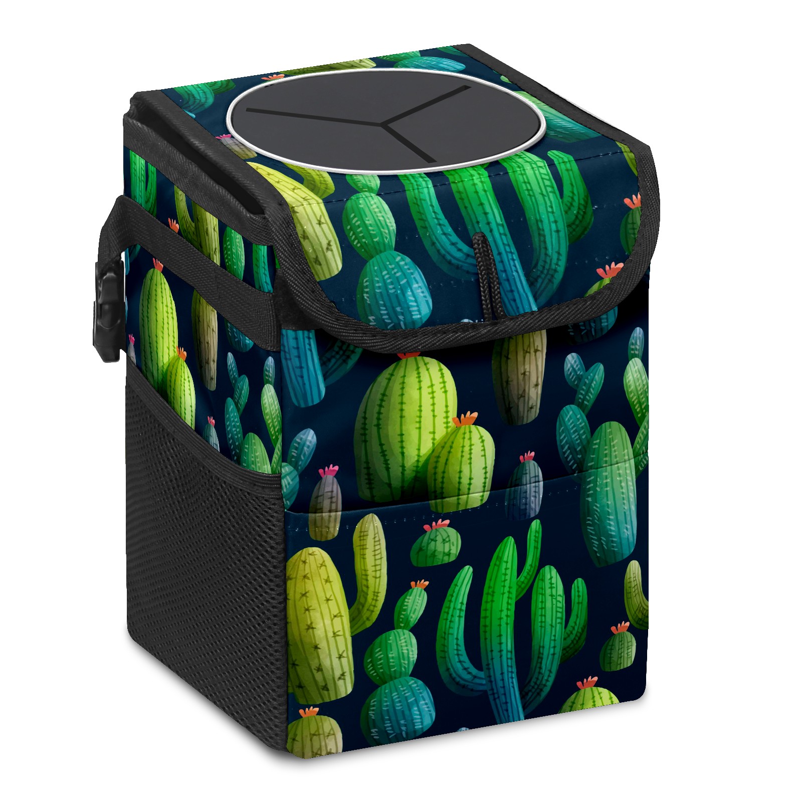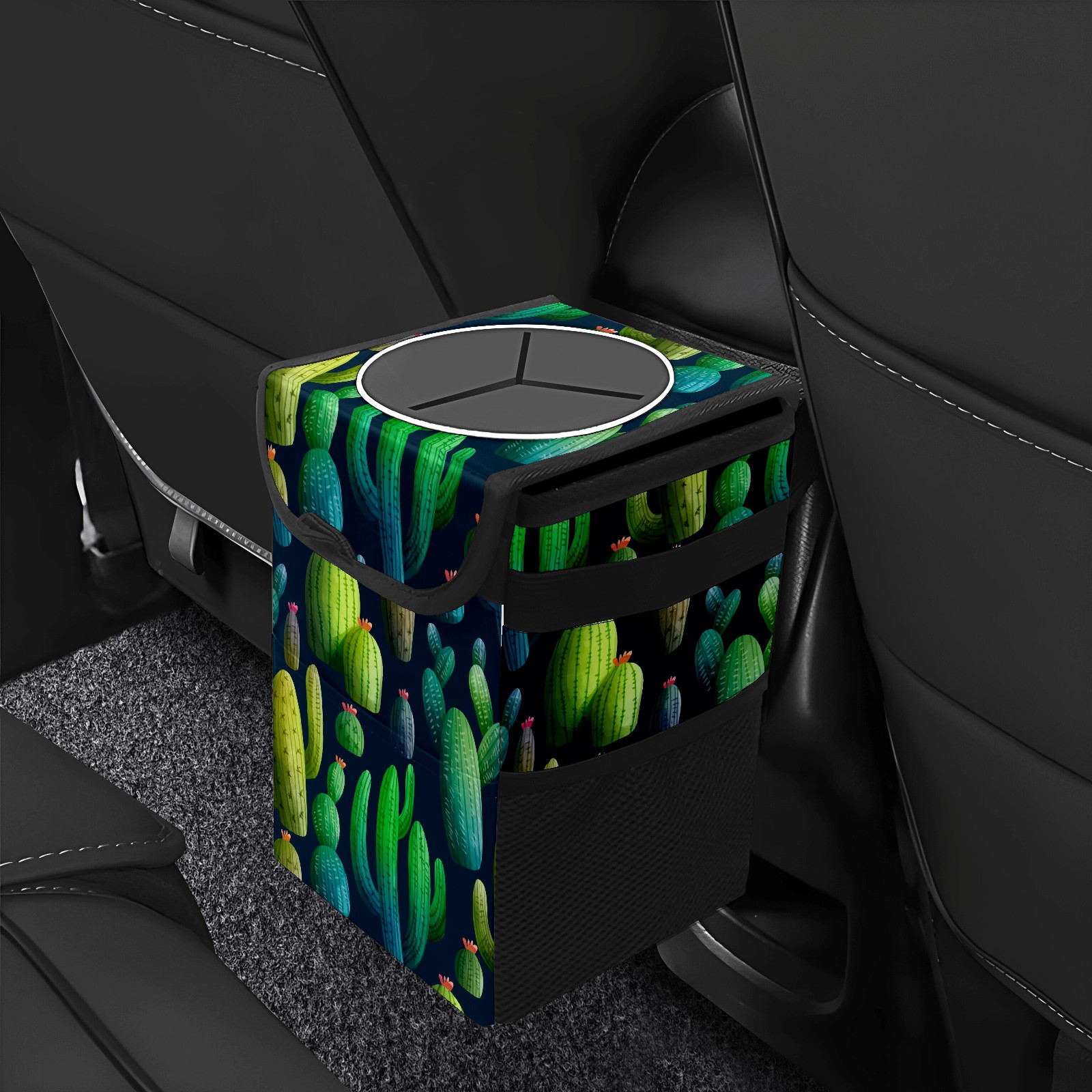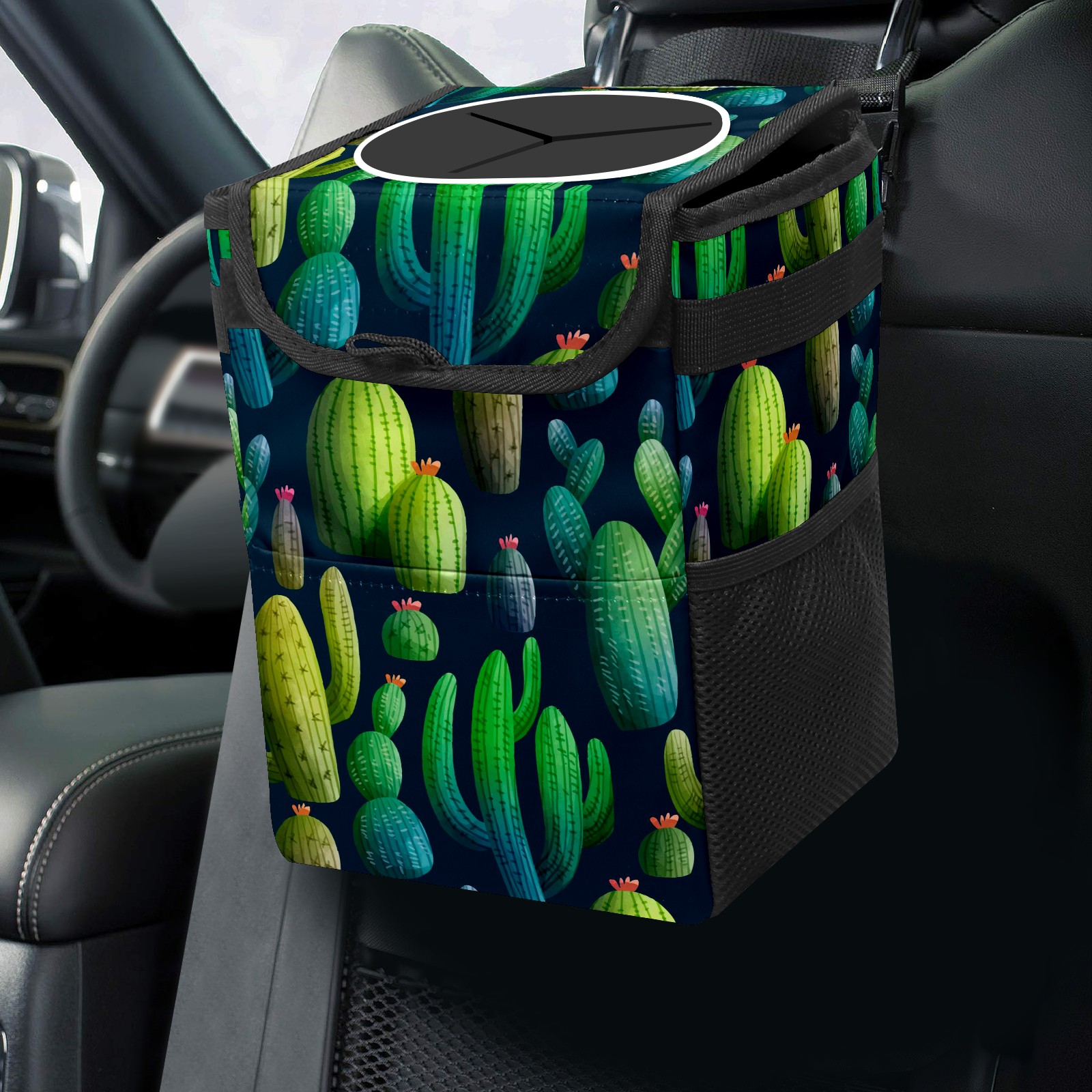 Car Garbage Can — Multi-functional, Lightweight Portable, Reusable Vehicle Trash Can, Waterproof with Sufficient Storage Capacity Colorful Cactus Pattern