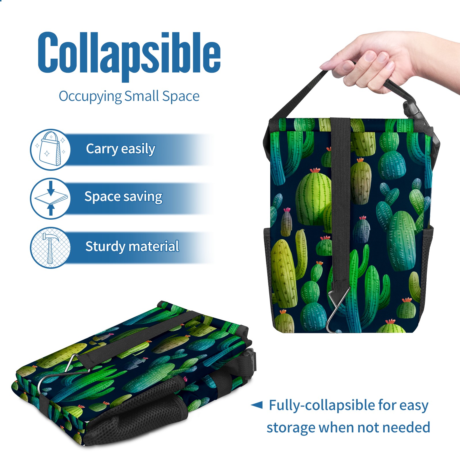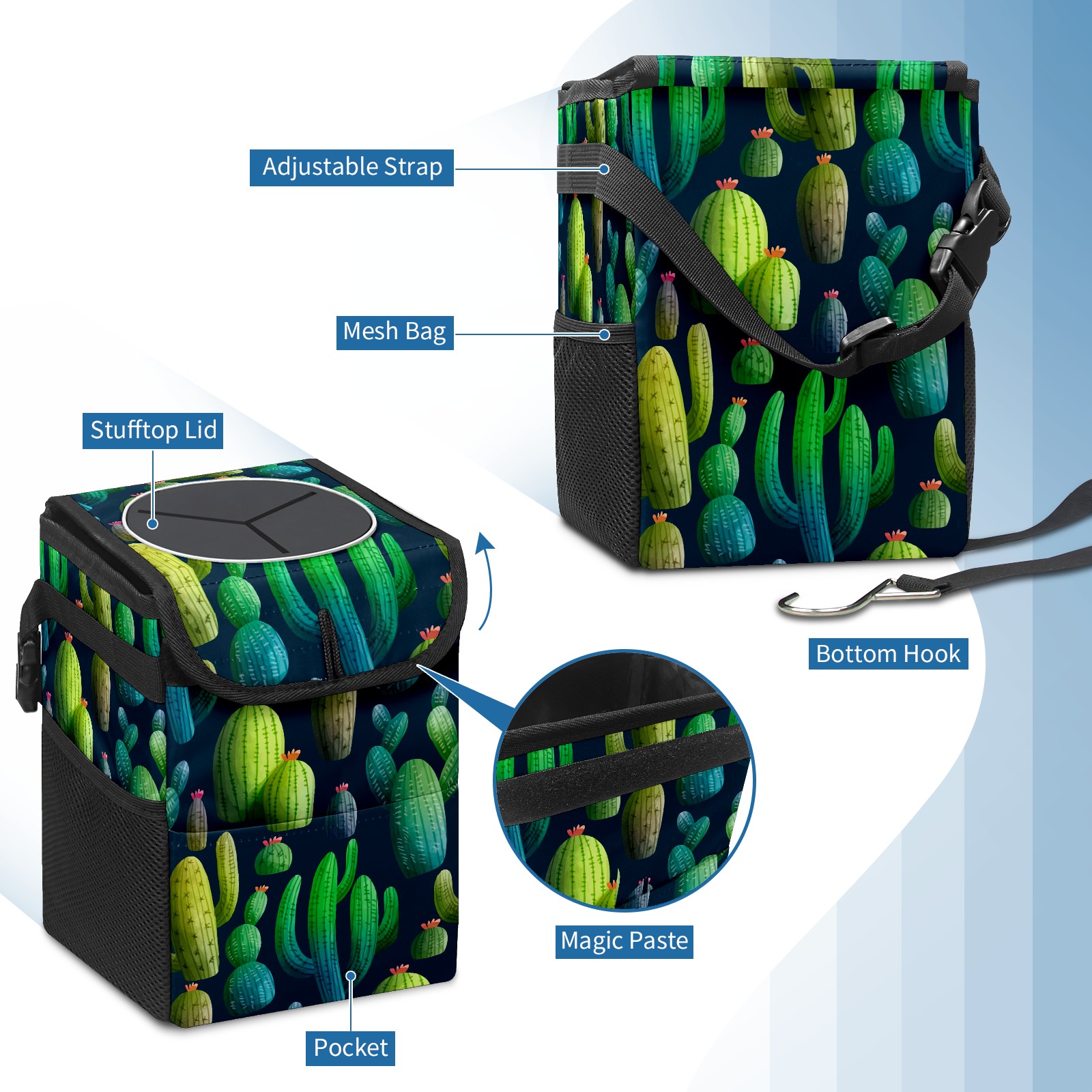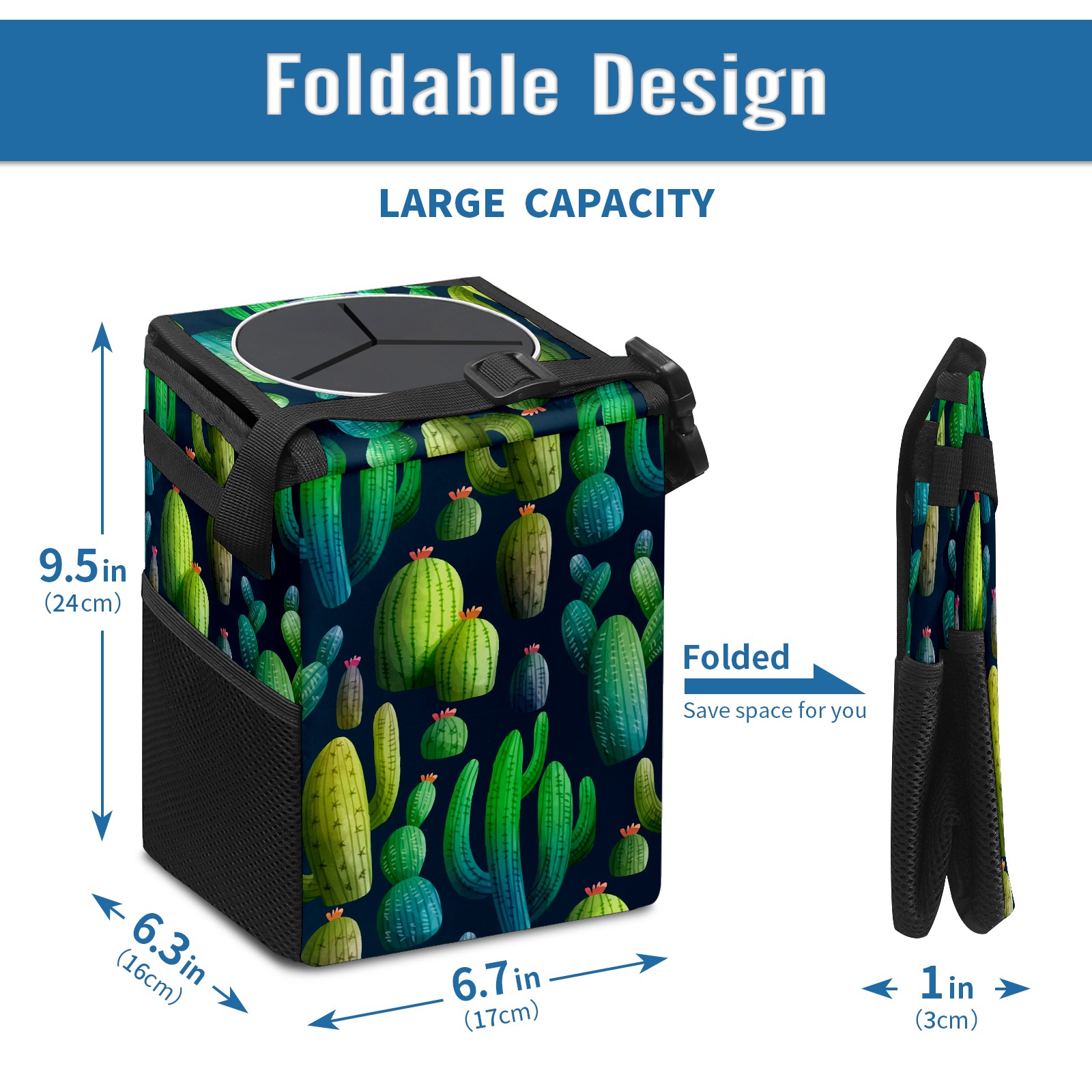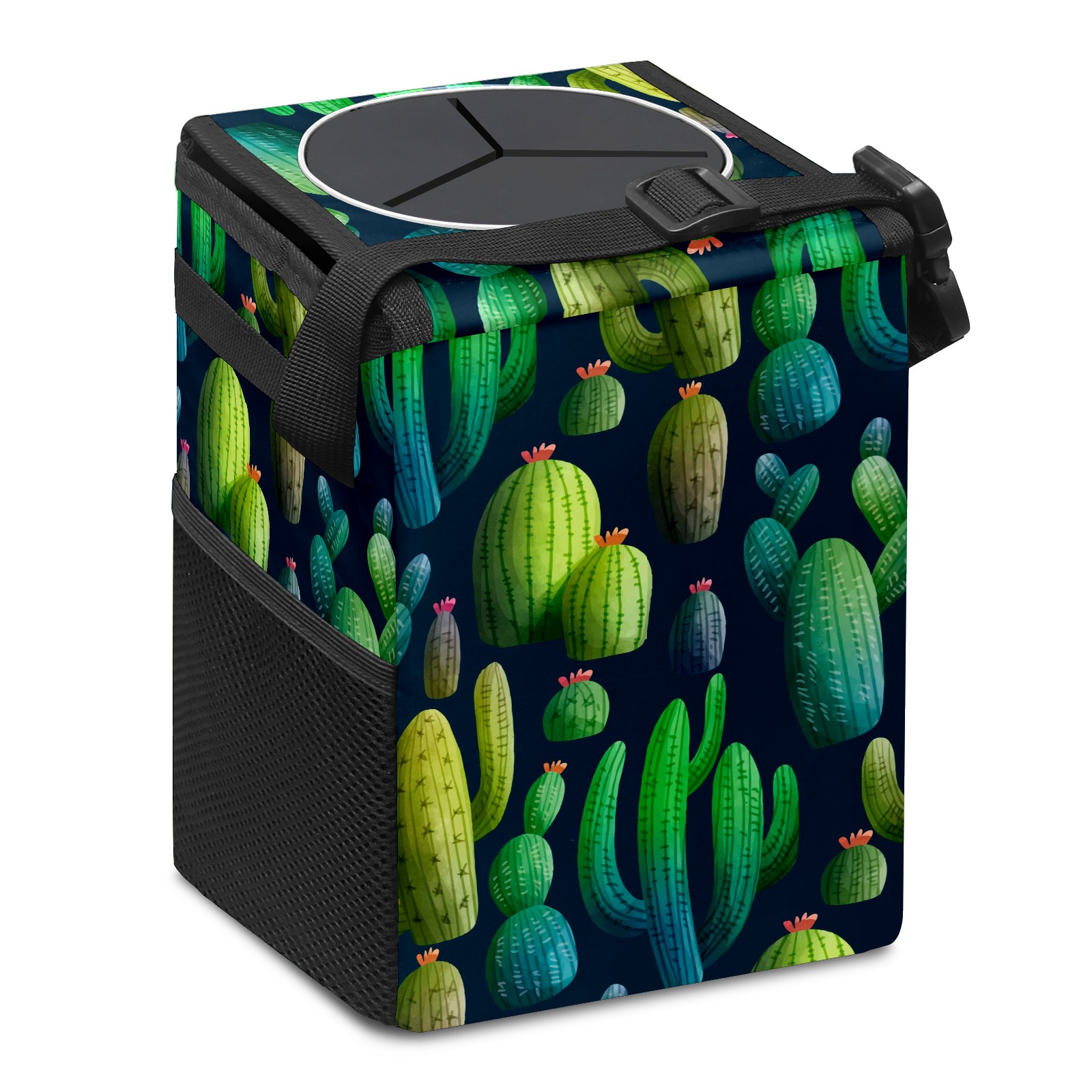 Car Garbage Can — Multi-functional, Lightweight Portable, Reusable Vehicle Trash Can, Waterproof with Sufficient Storage Capacity Colorful Cactus Pattern