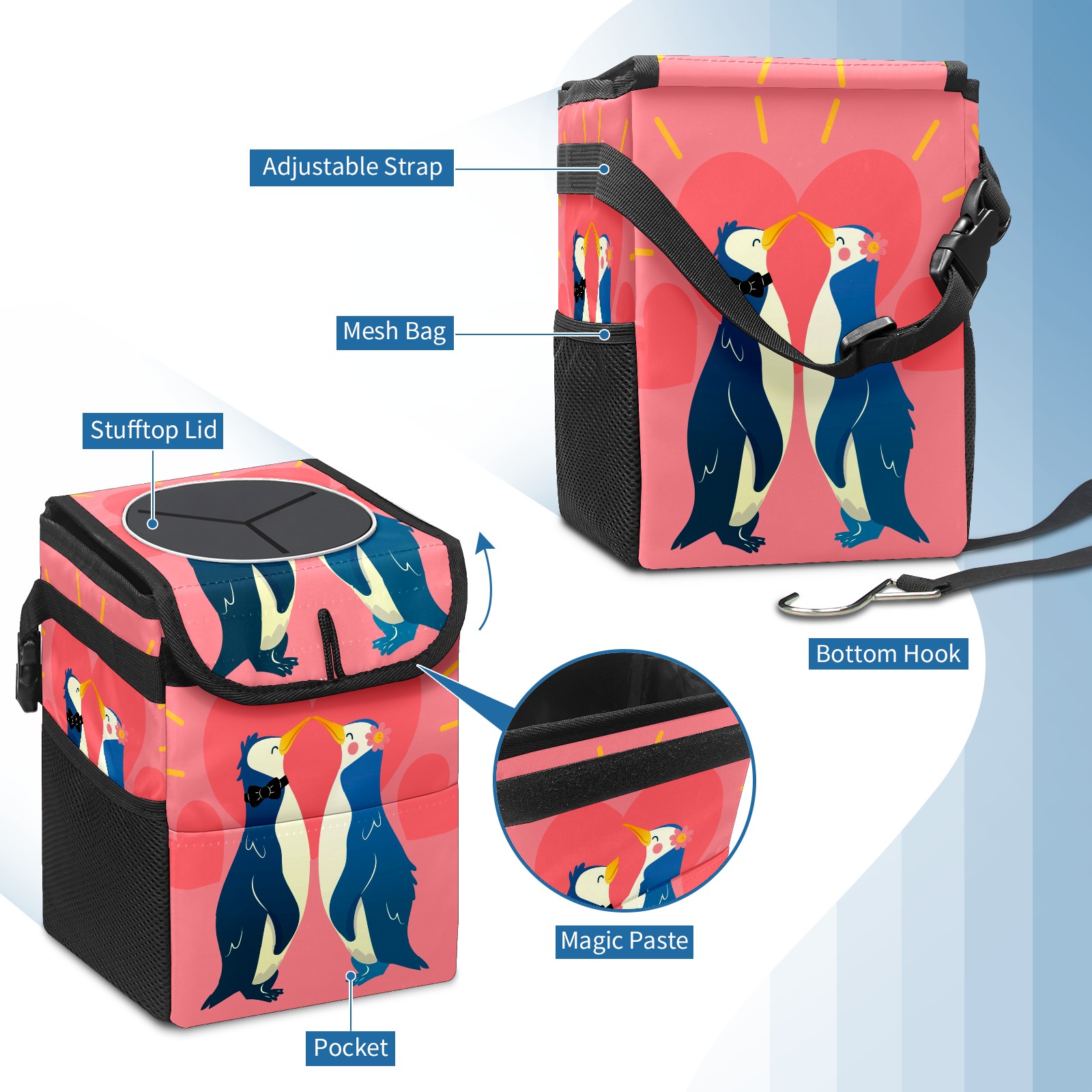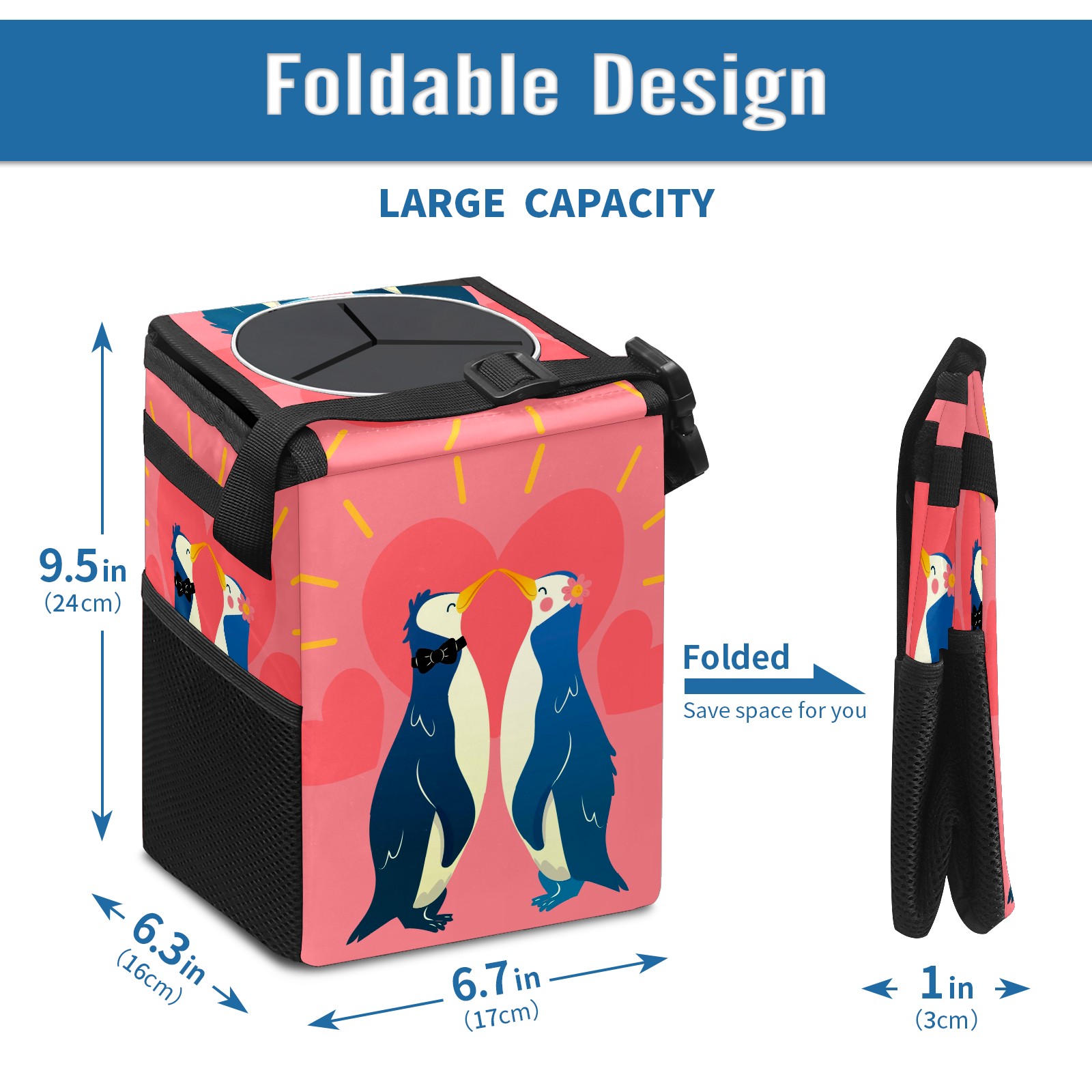 Car Garbage Can — Multi-functional, Lightweight Portable, Reusable Vehicle Trash Can, Waterproof with Sufficient Storage Capacity Charming Valentine's Day Animal