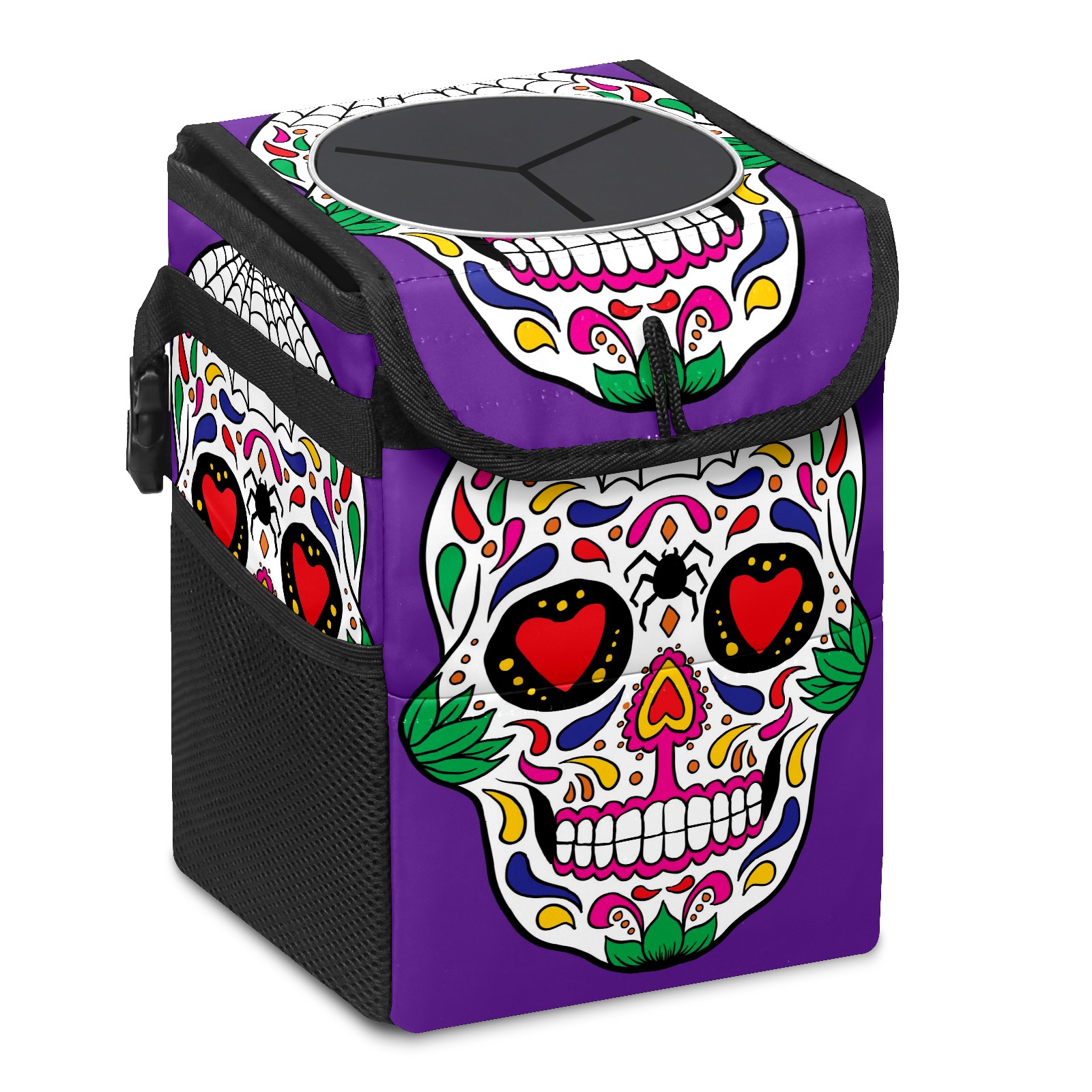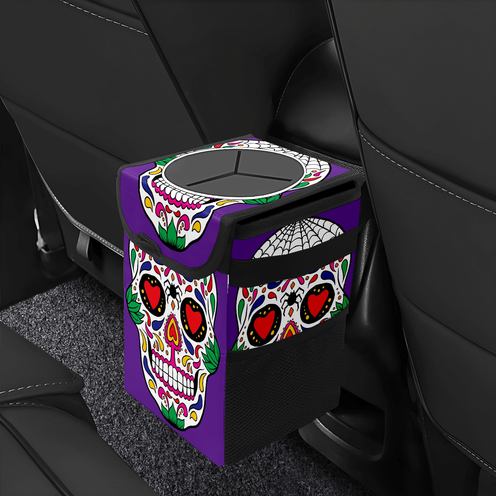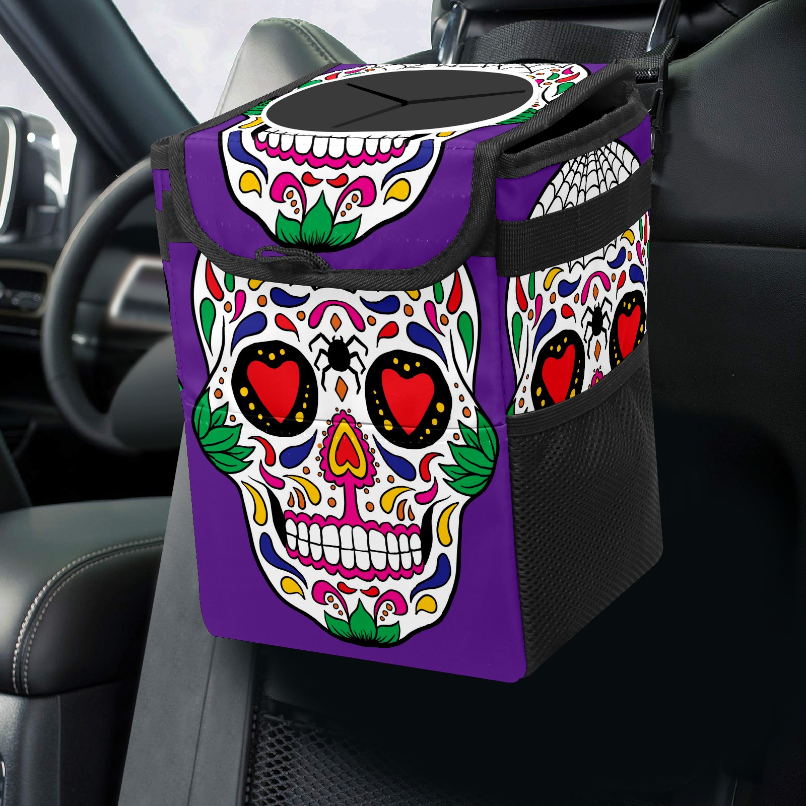 Car Garbage Can — Multi-functional, Lightweight Portable, Reusable Vehicle Trash Can, Waterproof with Sufficient Storage Capacity Colorful Skull Purple