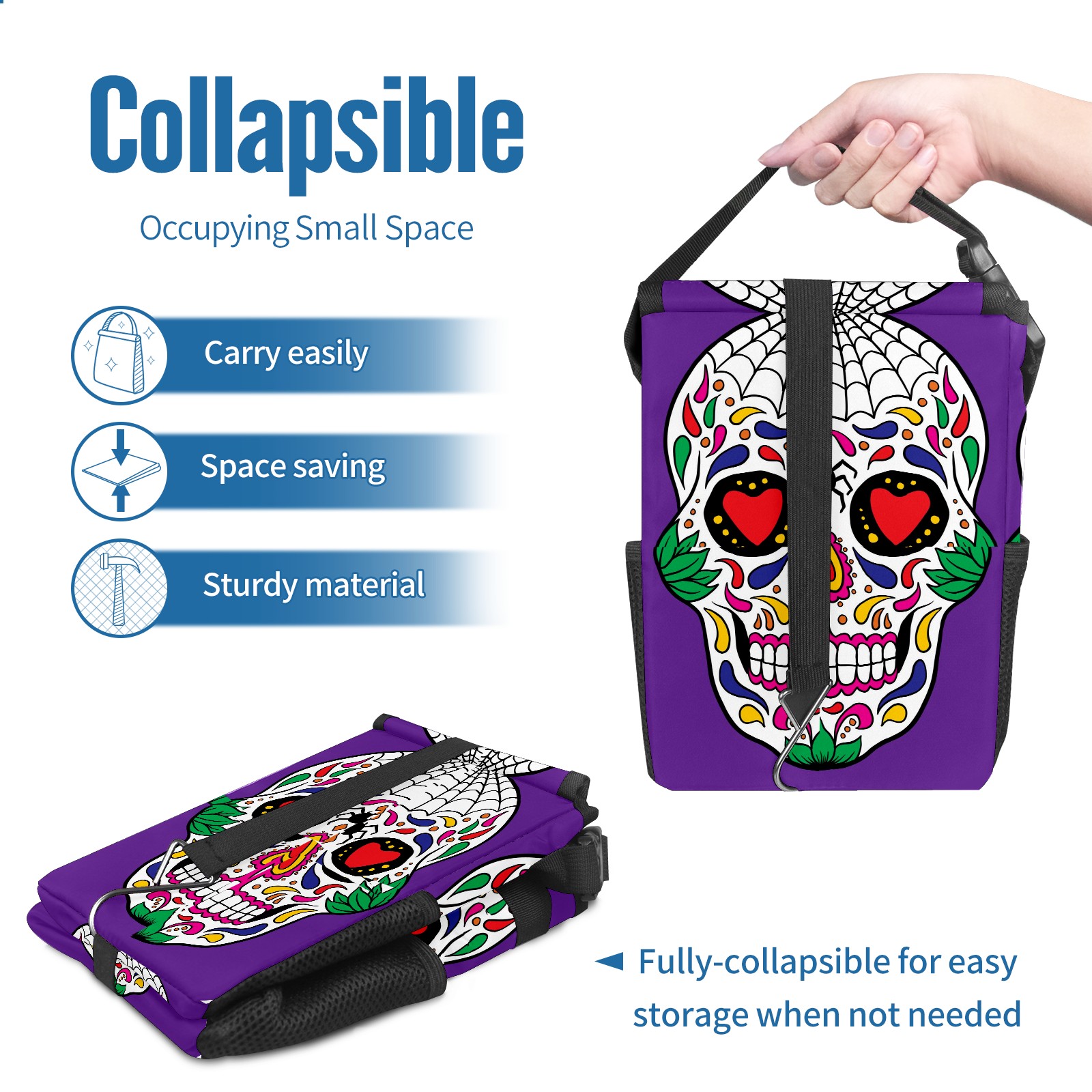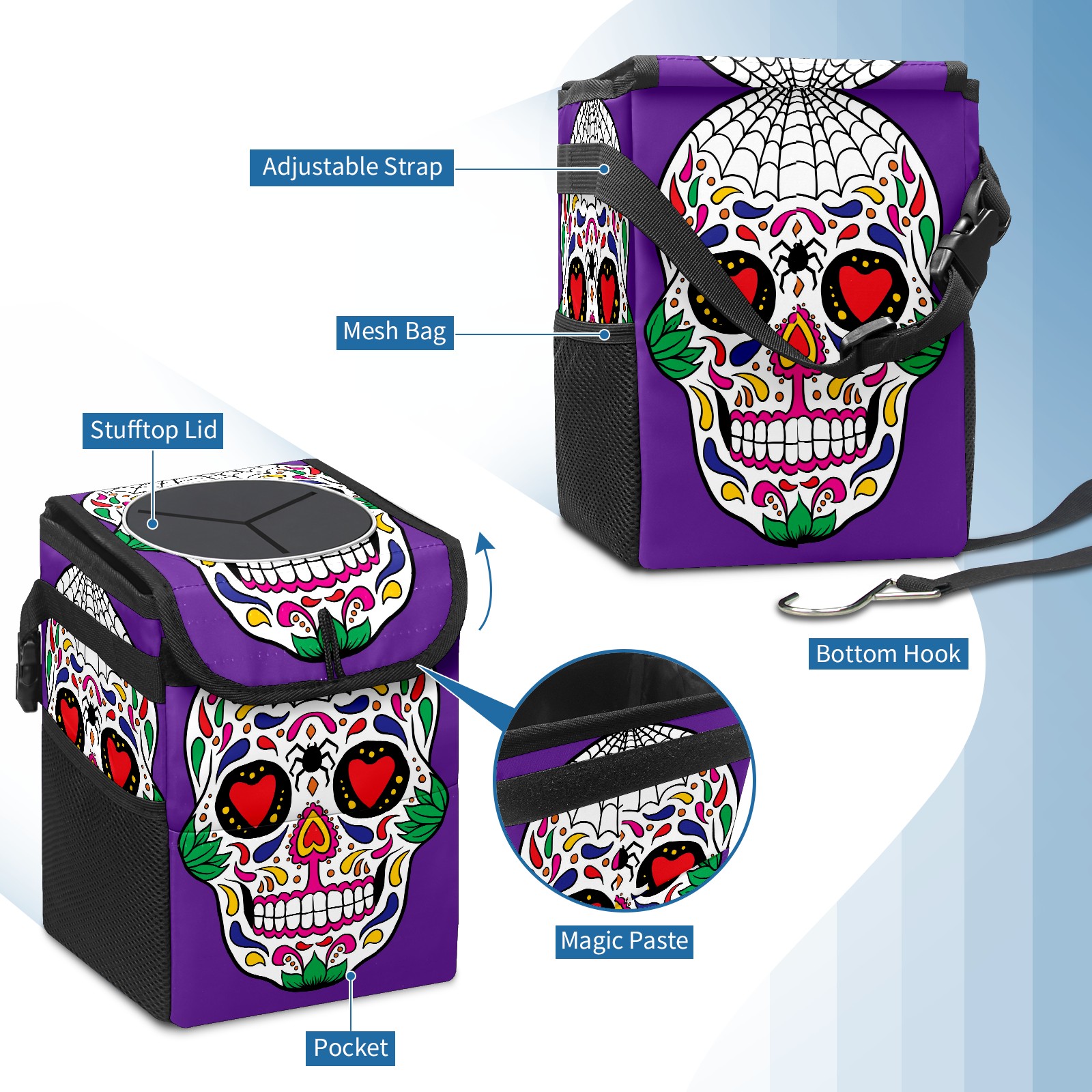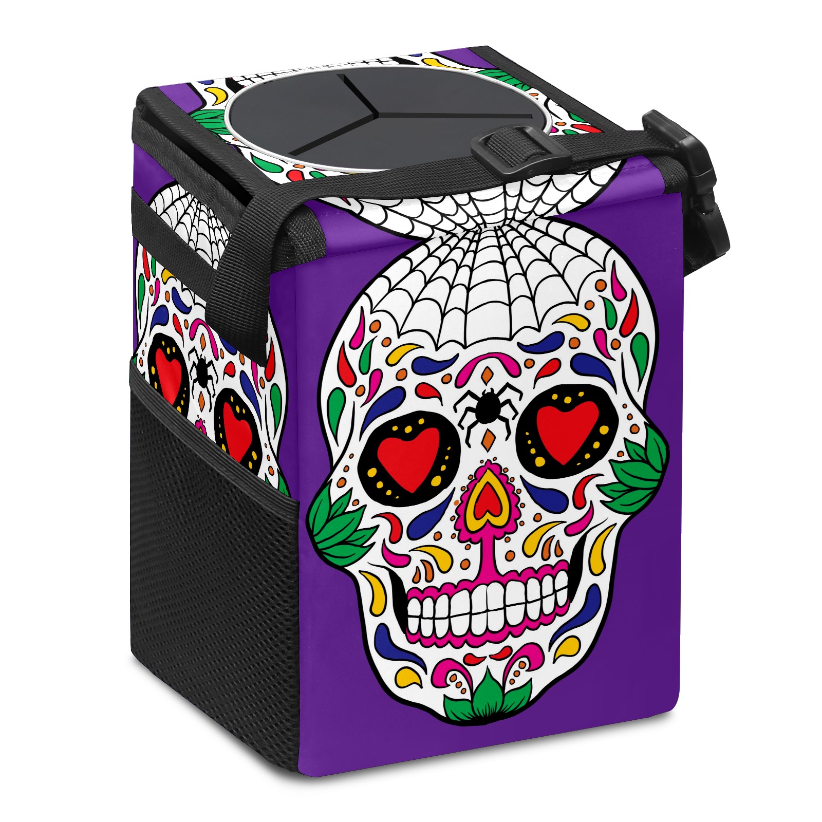 Car Garbage Can — Multi-functional, Lightweight Portable, Reusable Vehicle Trash Can, Waterproof with Sufficient Storage Capacity Colorful Skull Purple