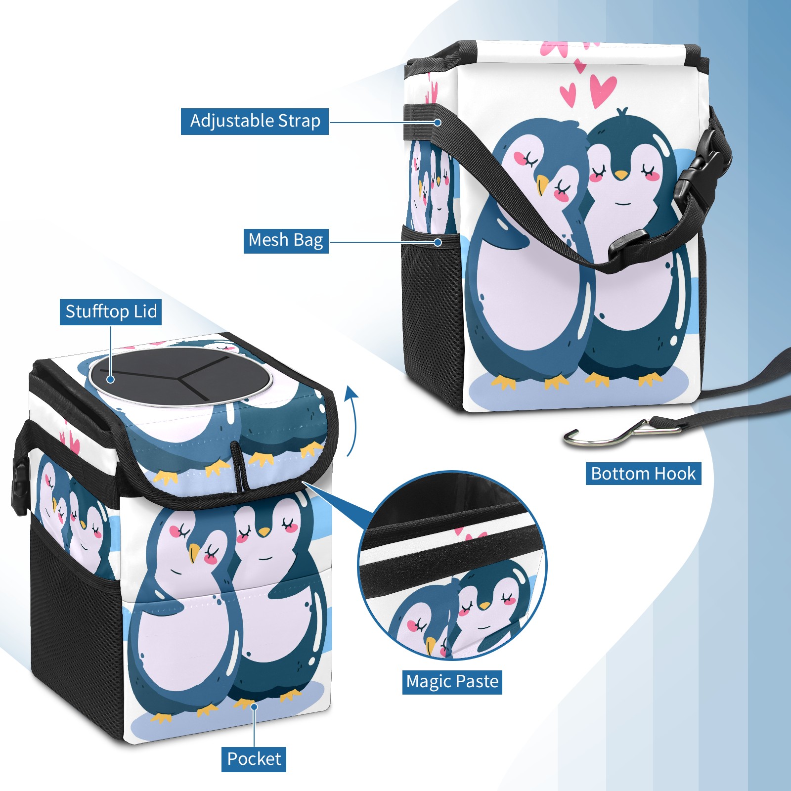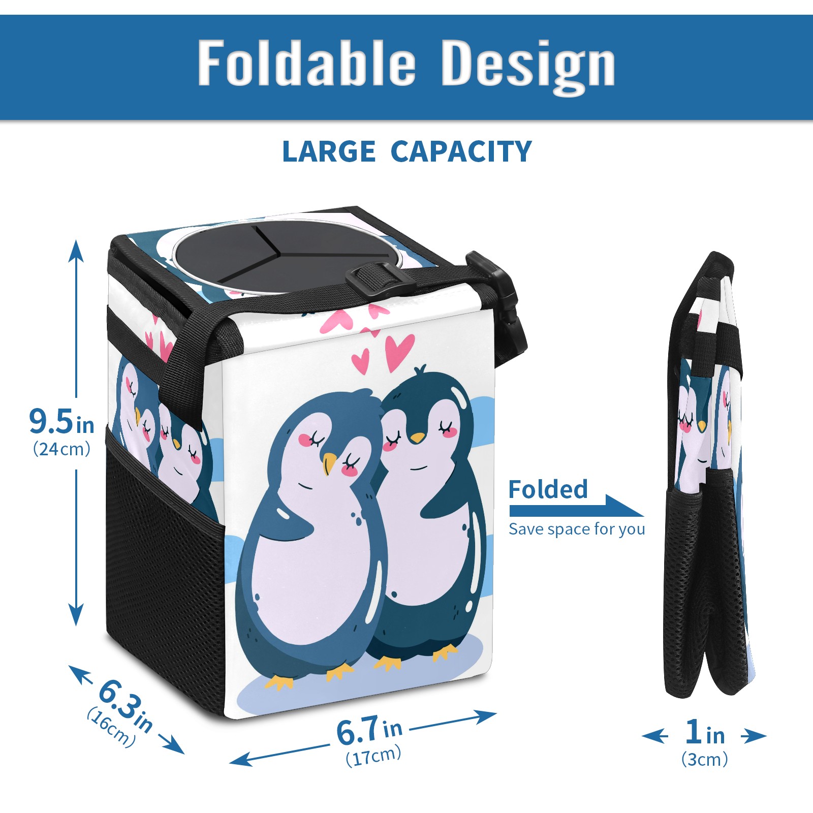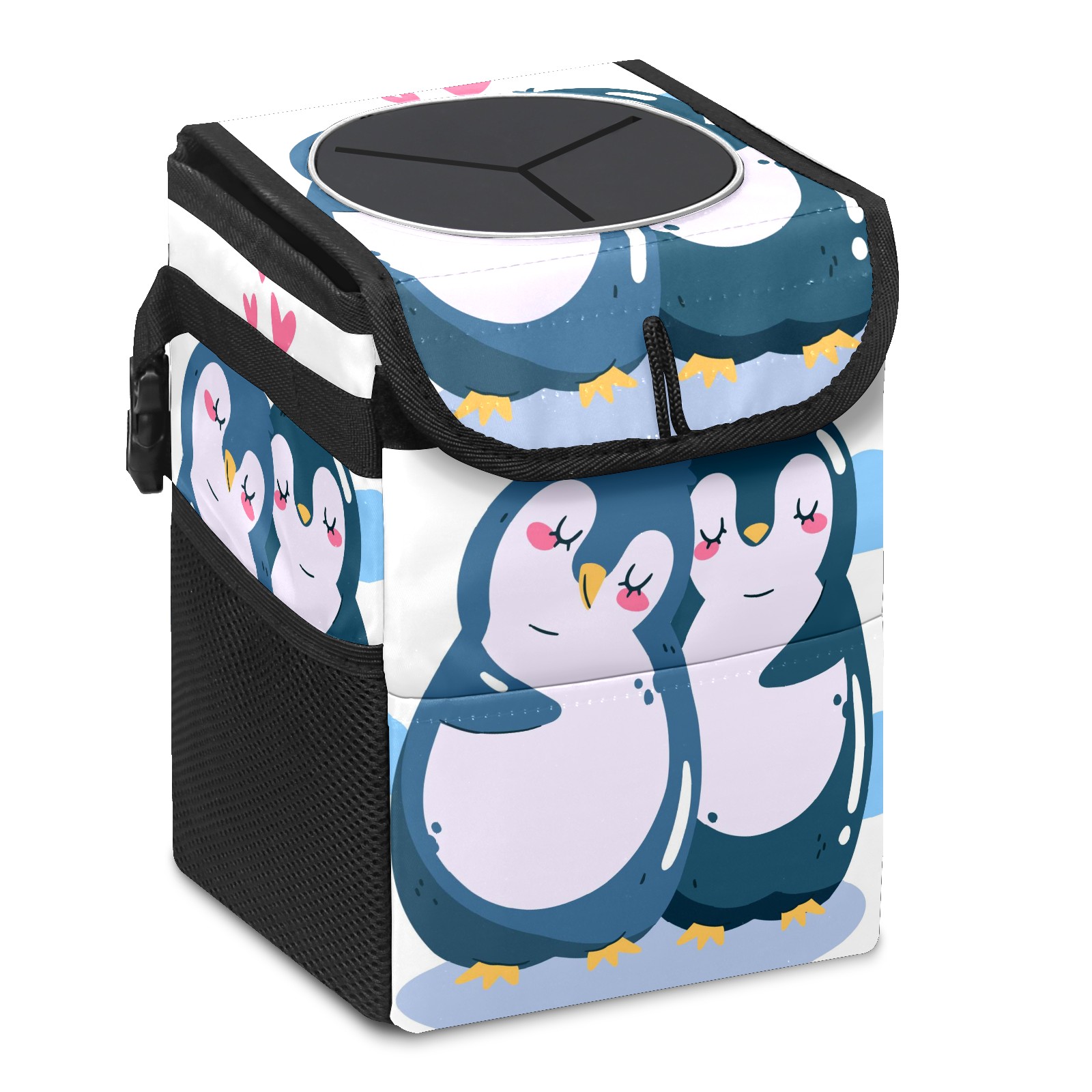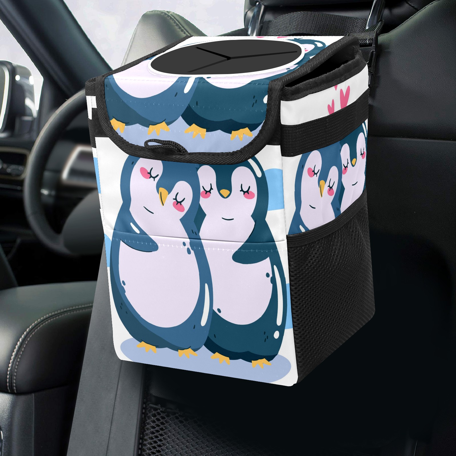 Car Garbage Can — Multi-functional, Lightweight Portable, Reusable Vehicle Trash Can, Waterproof with Sufficient Storage Capacity Cute Penguins