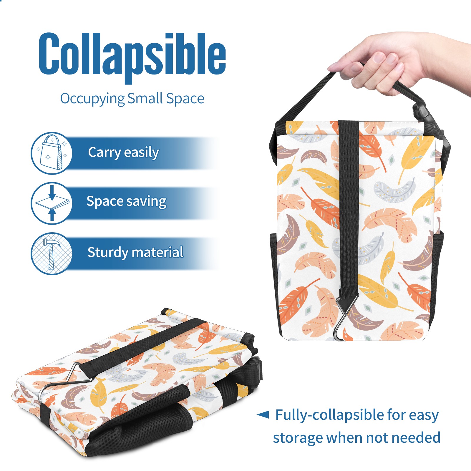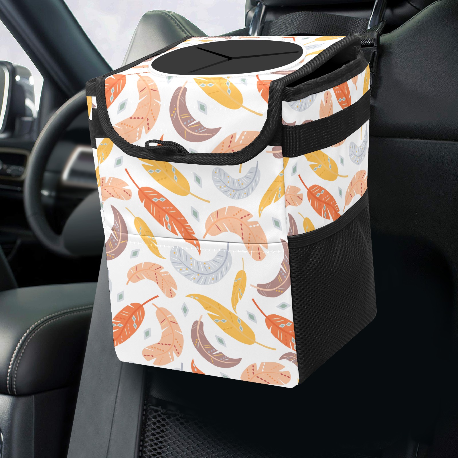 Car Garbage Can — Multi-functional, Lightweight Portable, Reusable Vehicle Trash Can, Waterproof with Sufficient Storage Capacity Feathers Seamless Pattern