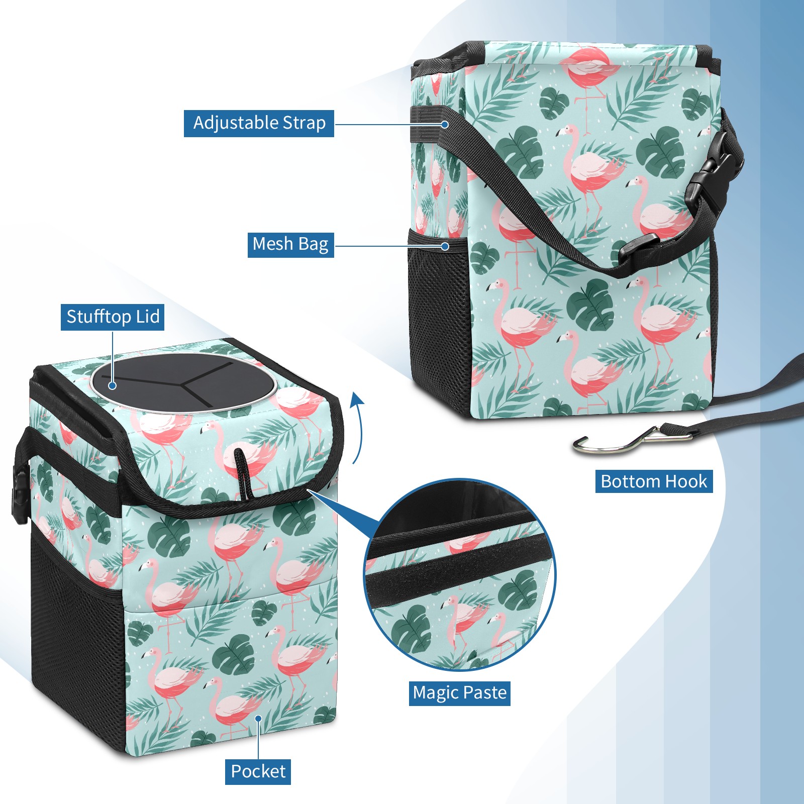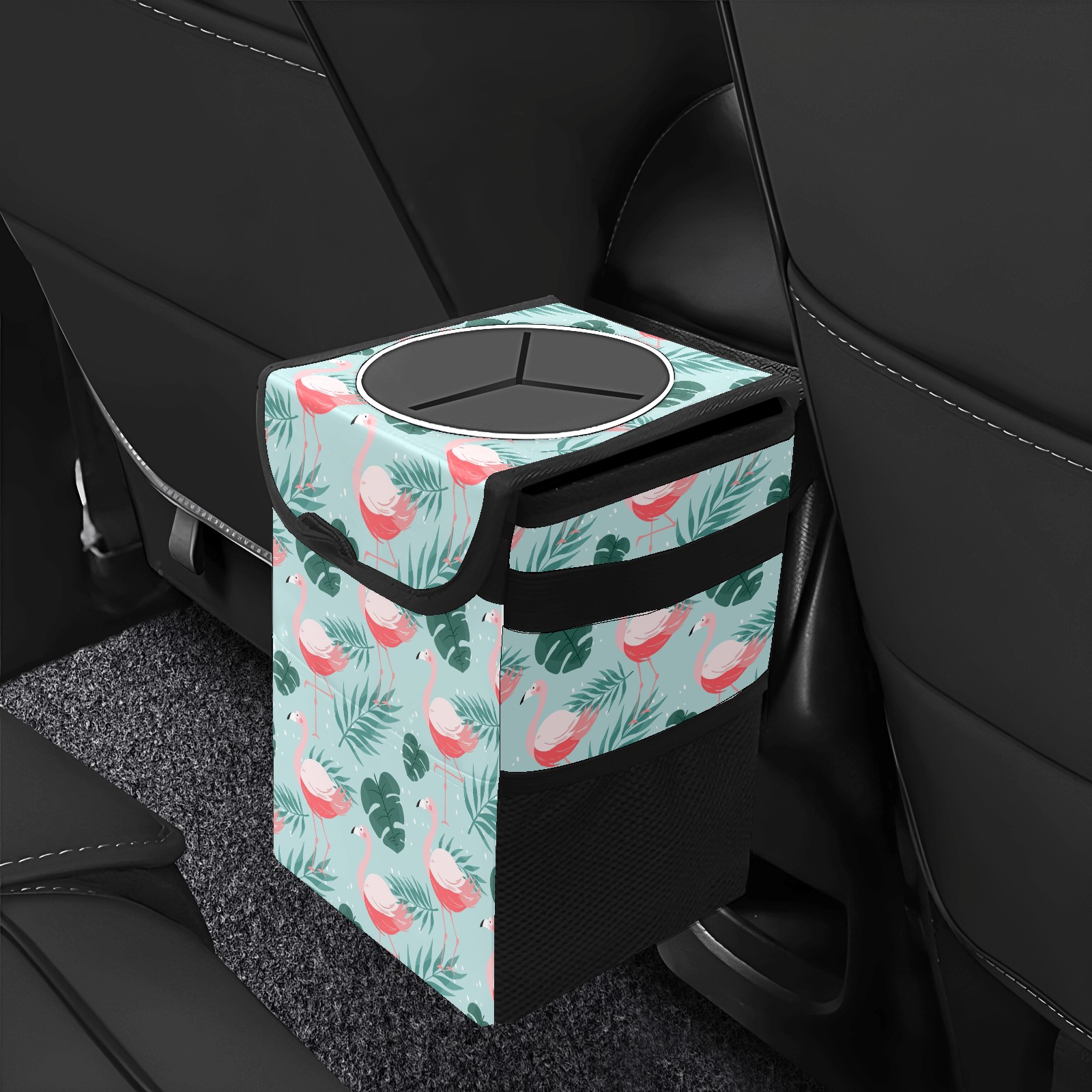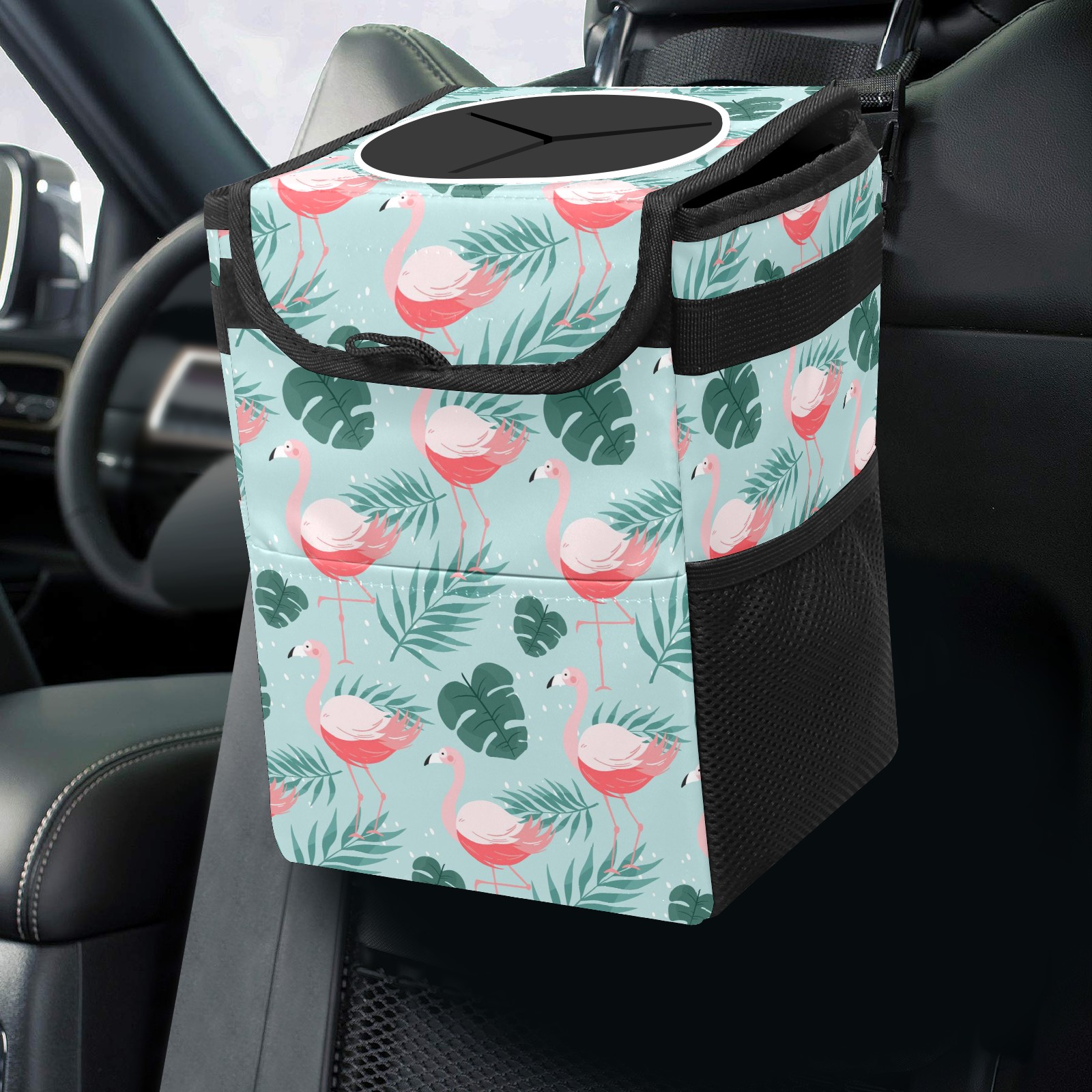 Car Garbage Can — Multi-functional, Lightweight Portable, Reusable Vehicle Trash Can, Waterproof with Sufficient Storage Capacity Flamingo Pattern