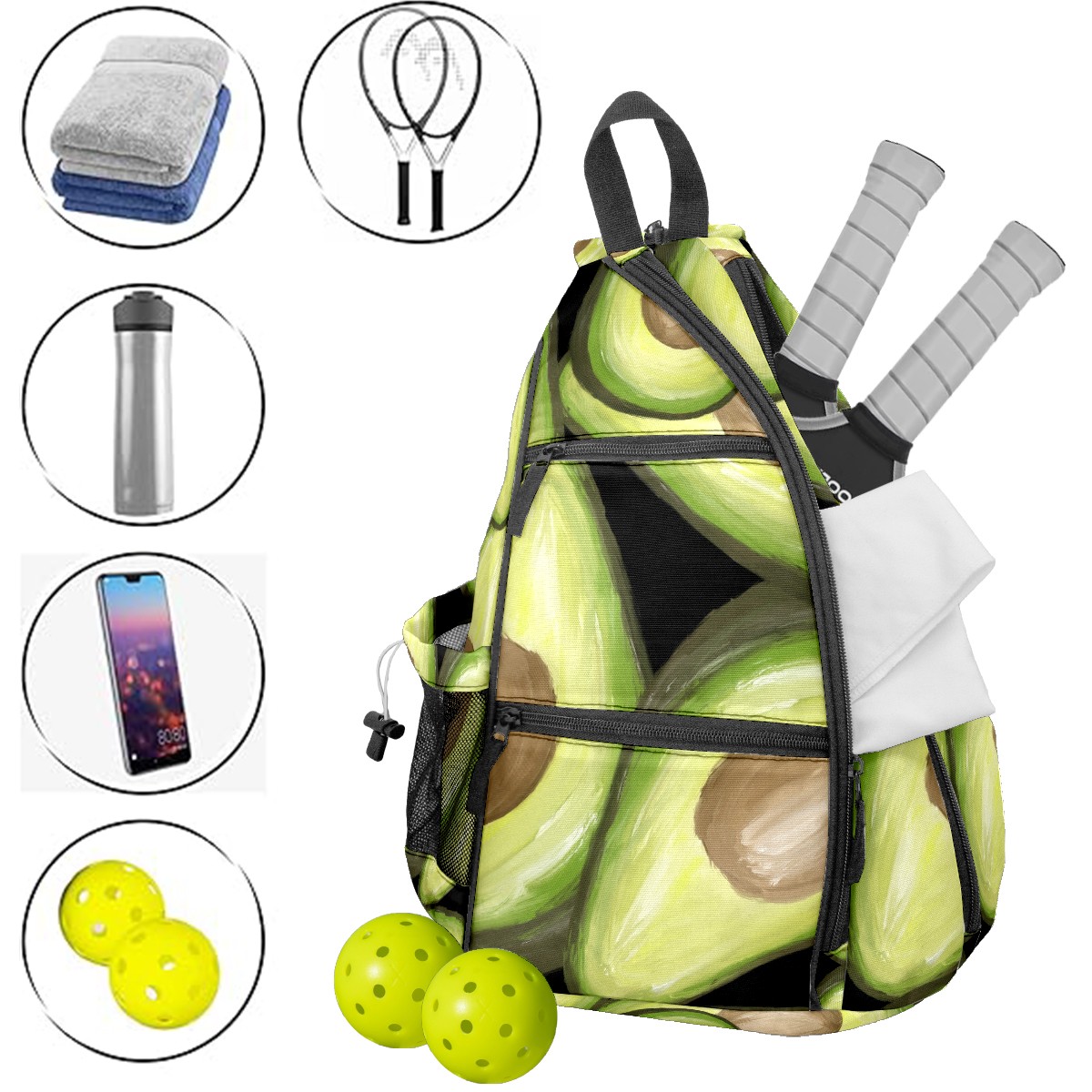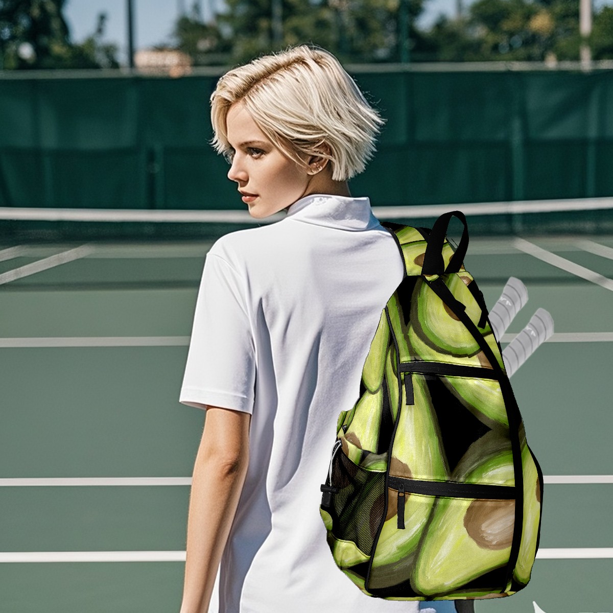 Multifunctional Pickleball Bag,Large Capacity Sports Pickleball Racket Bag, Water Bottle Holder and Fence Hook,Suitable for Both Men Women -Avocados Fruit Green Painted
