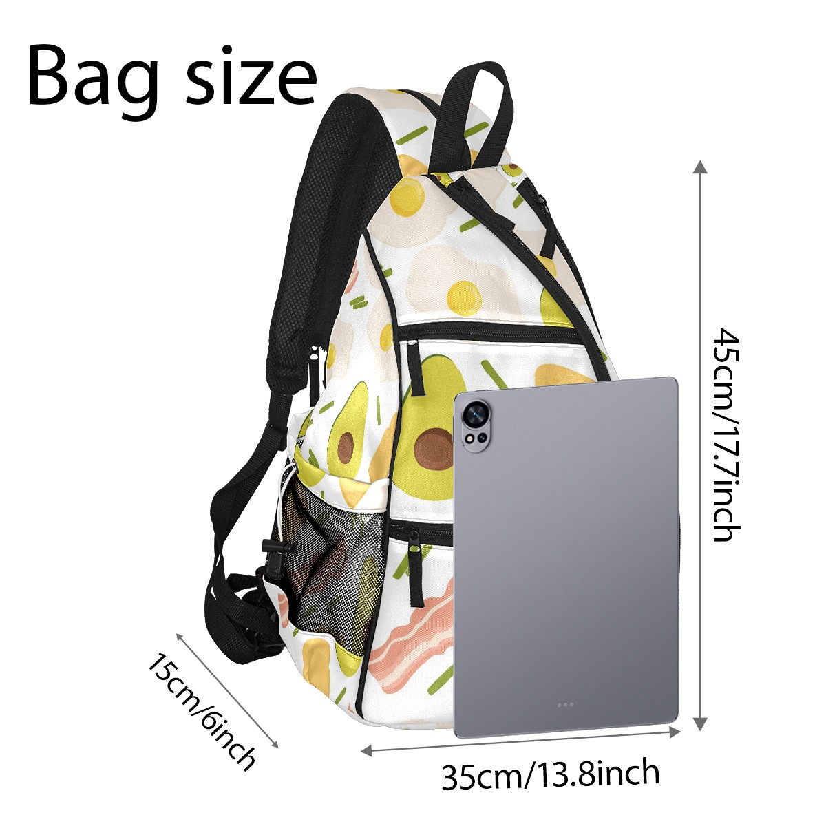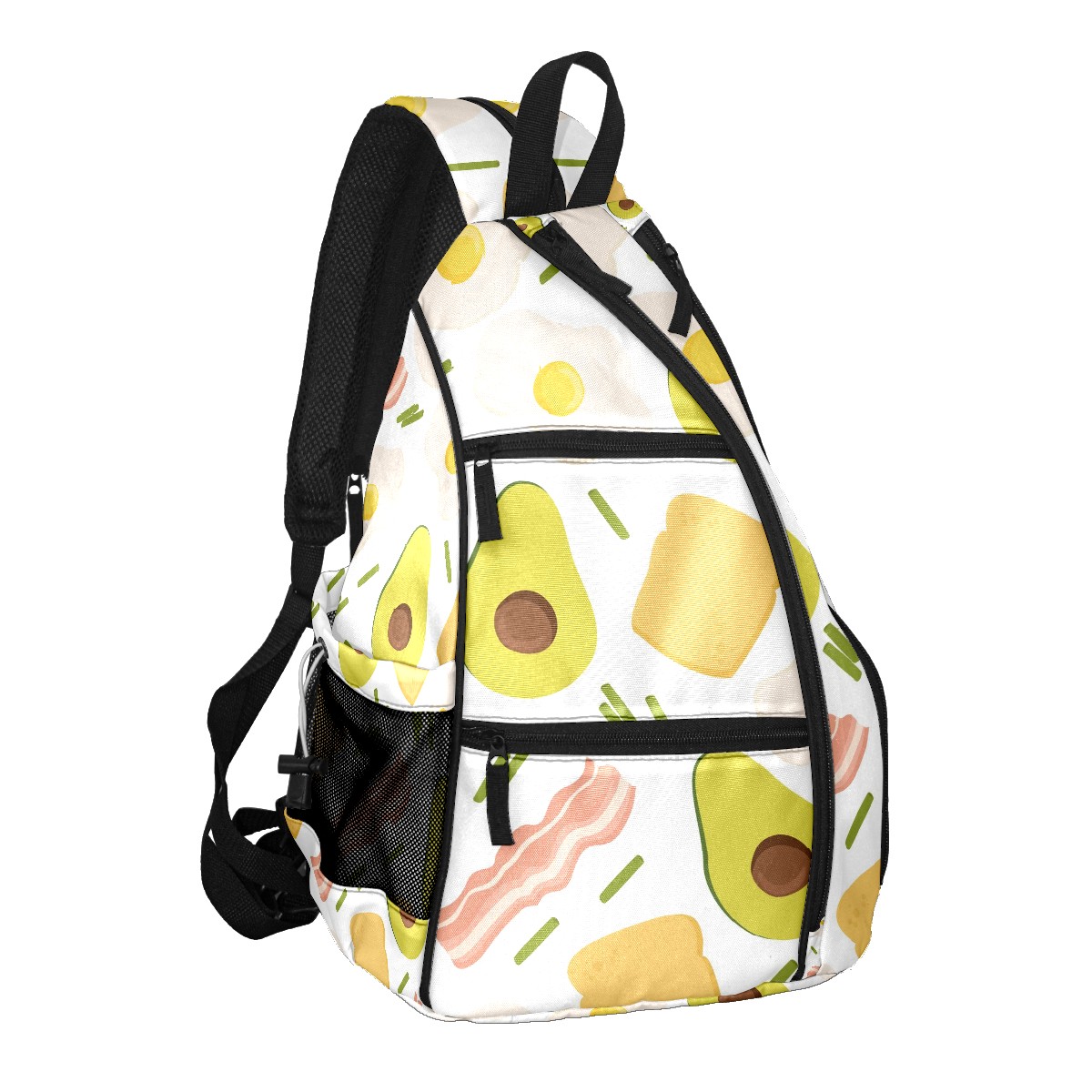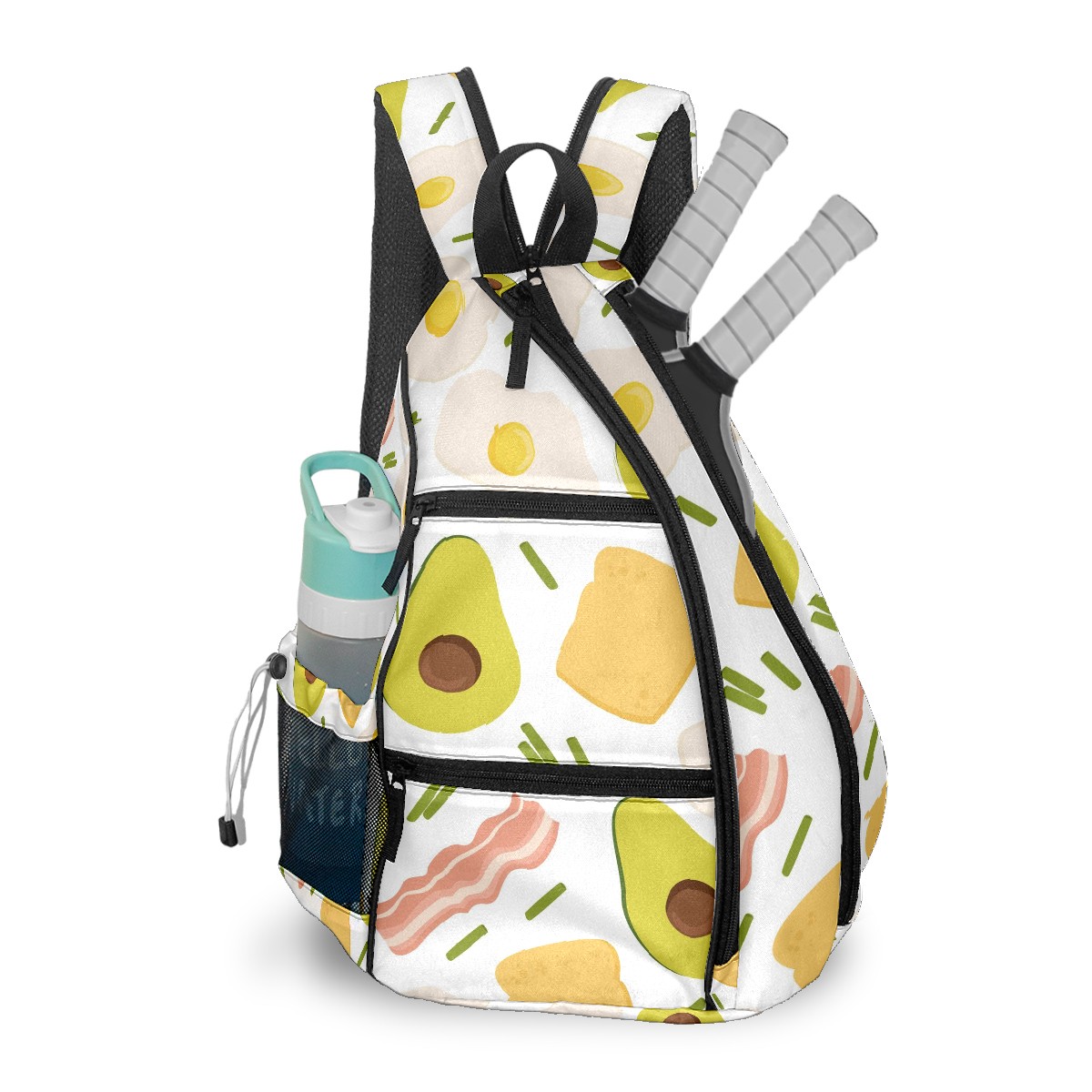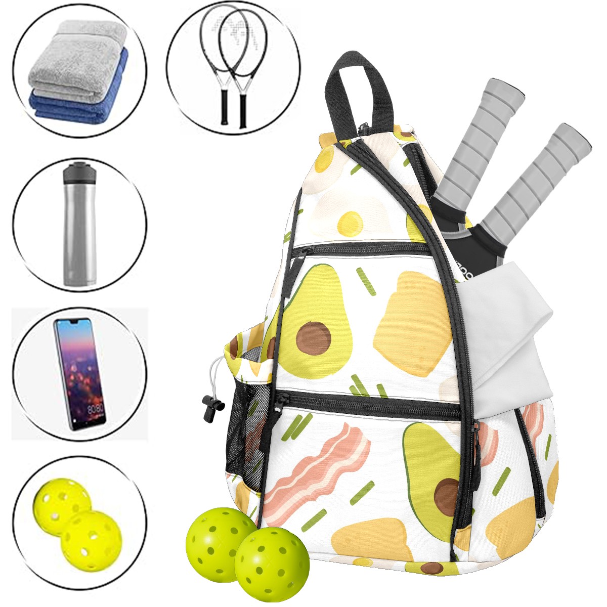 Multifunctional Pickleball Bag,Large Capacity Sports Pickleball Racket Bag, Water Bottle Holder and Fence Hook,Suitable for Both Men Women -Avocado Eggs Beef Vegetables Food