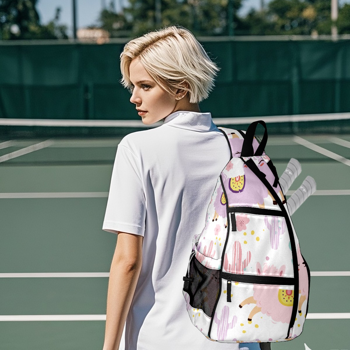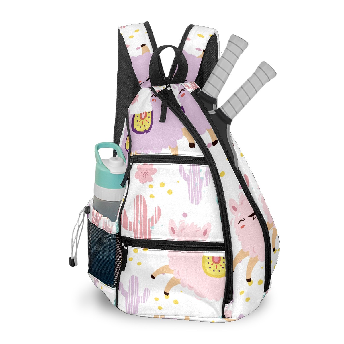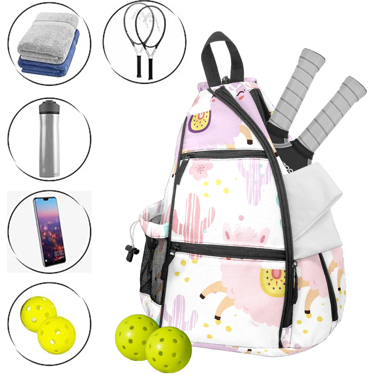 Multifunctional Pickleball Bag,Large Capacity Sports Pickleball Racket Bag, Water Bottle Holder and Fence Hook,Suitable for Both Men Women -Alpacas Llamas Purple Pink Cactus Cartoon