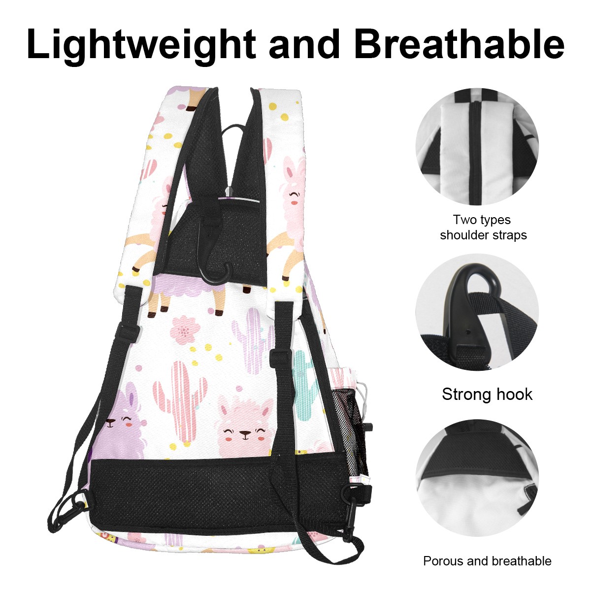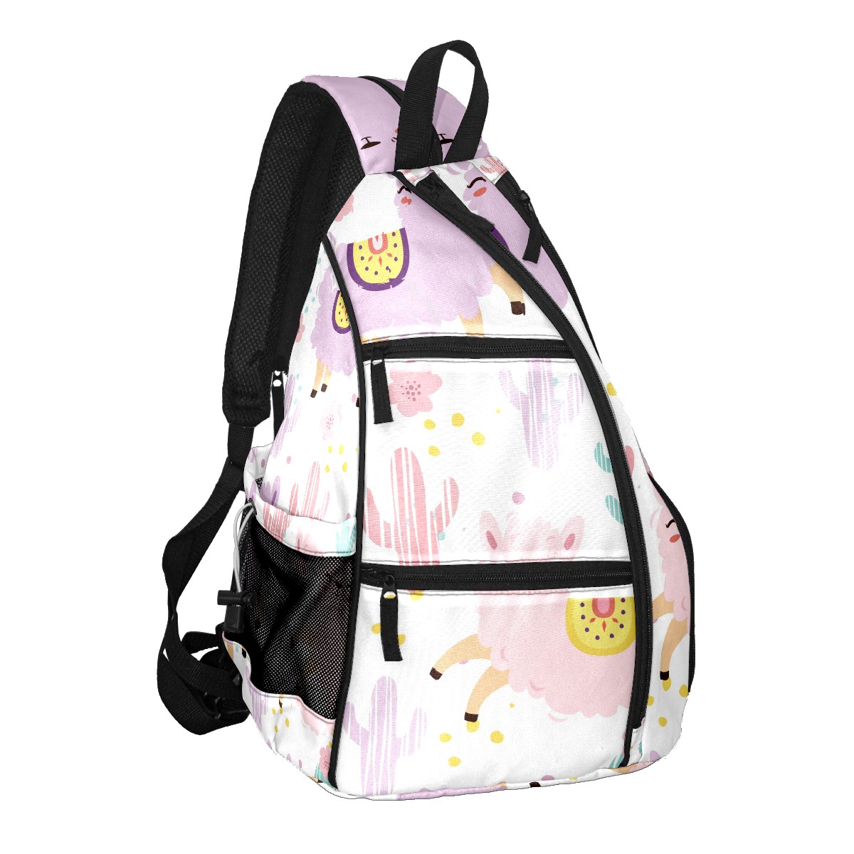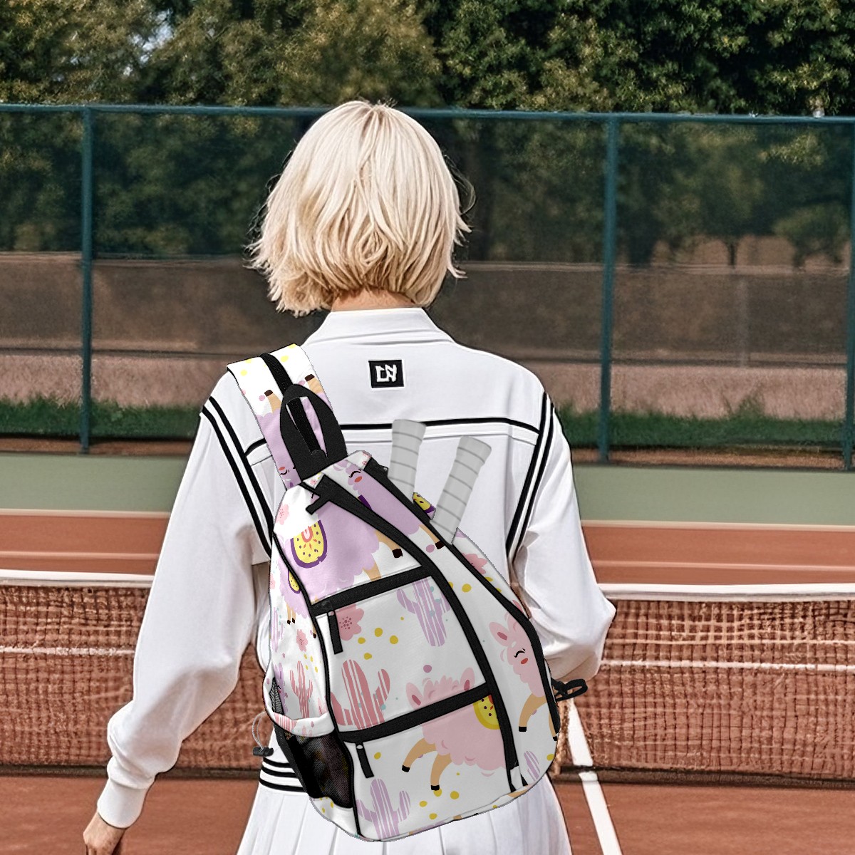 Multifunctional Pickleball Bag,Large Capacity Sports Pickleball Racket Bag, Water Bottle Holder and Fence Hook,Suitable for Both Men Women -Alpacas Llamas Purple Pink Cactus Cartoon