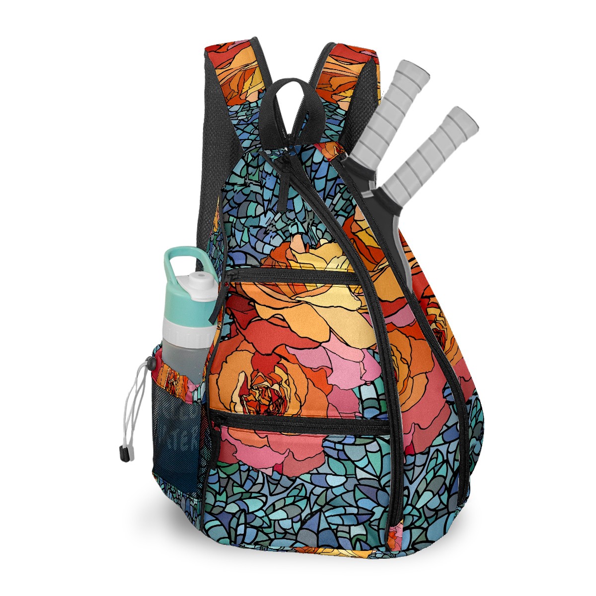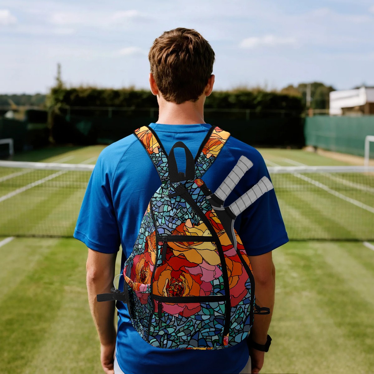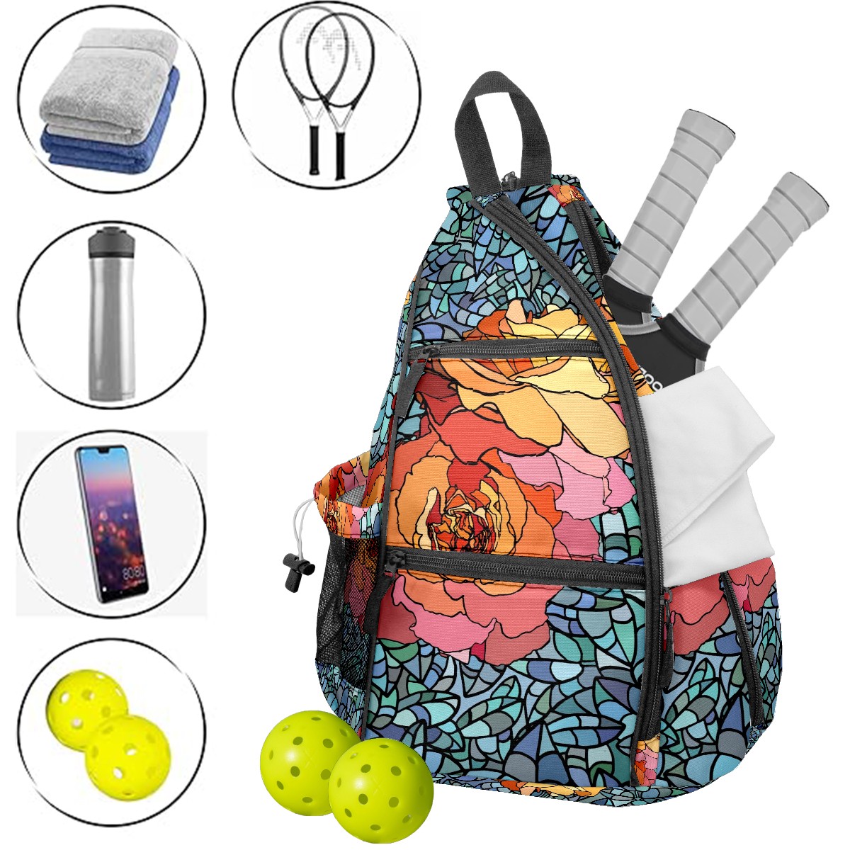 Multifunctional Pickleball Bag,Large Capacity Sports Pickleball Racket Bag, Water Bottle Holder and Fence Hook,Suitable for Both Men Women -Yellow Pink Flowers Blooming Rose Green Blue