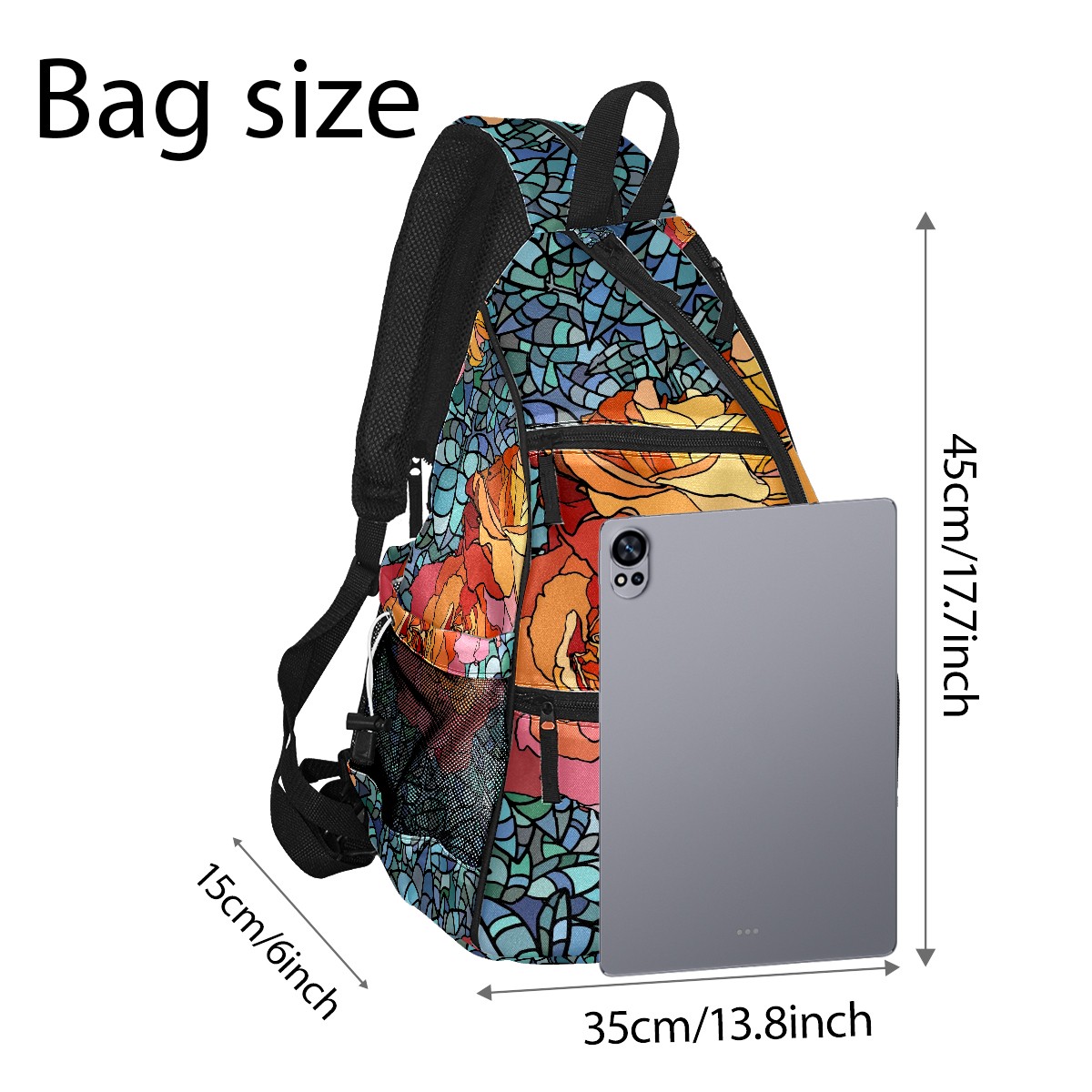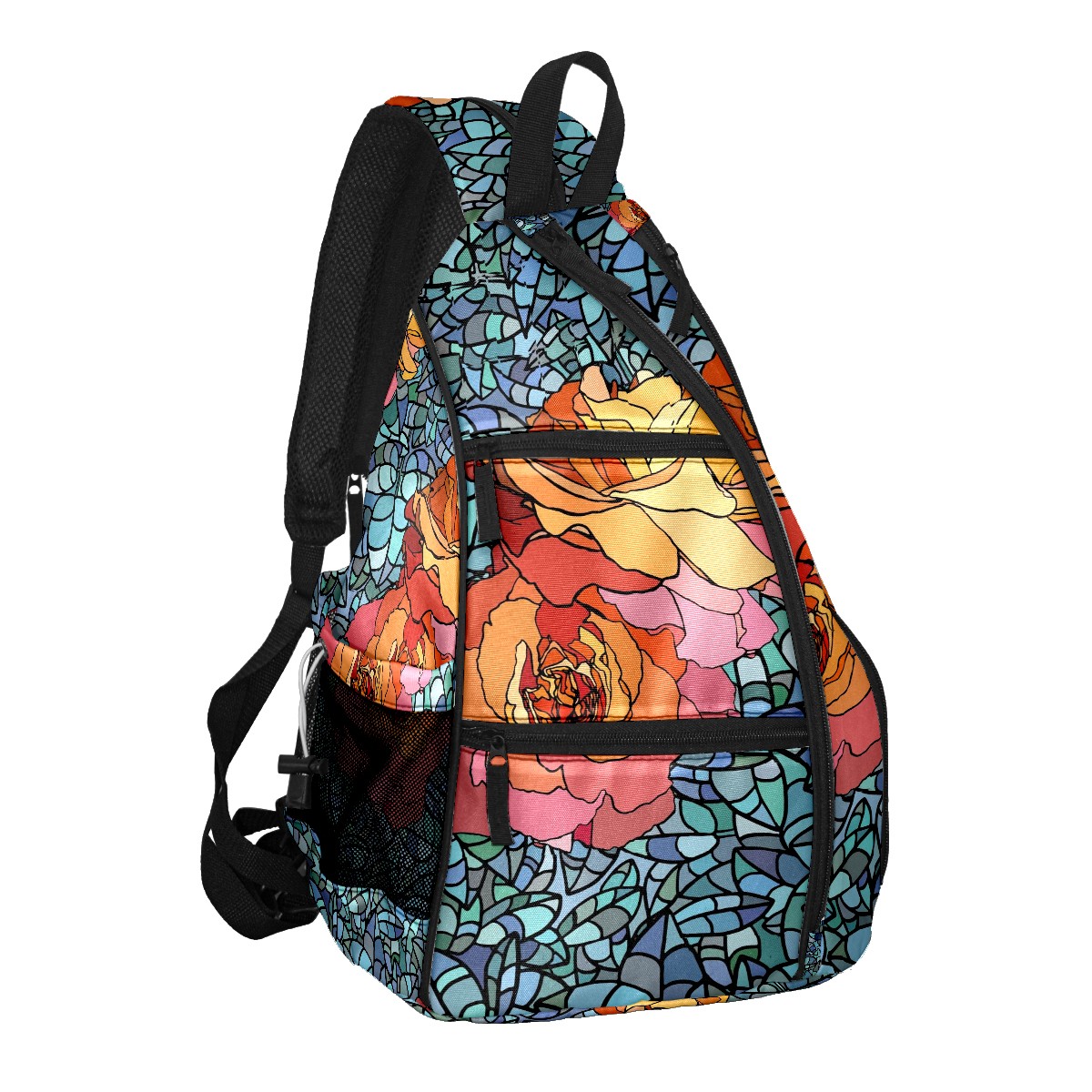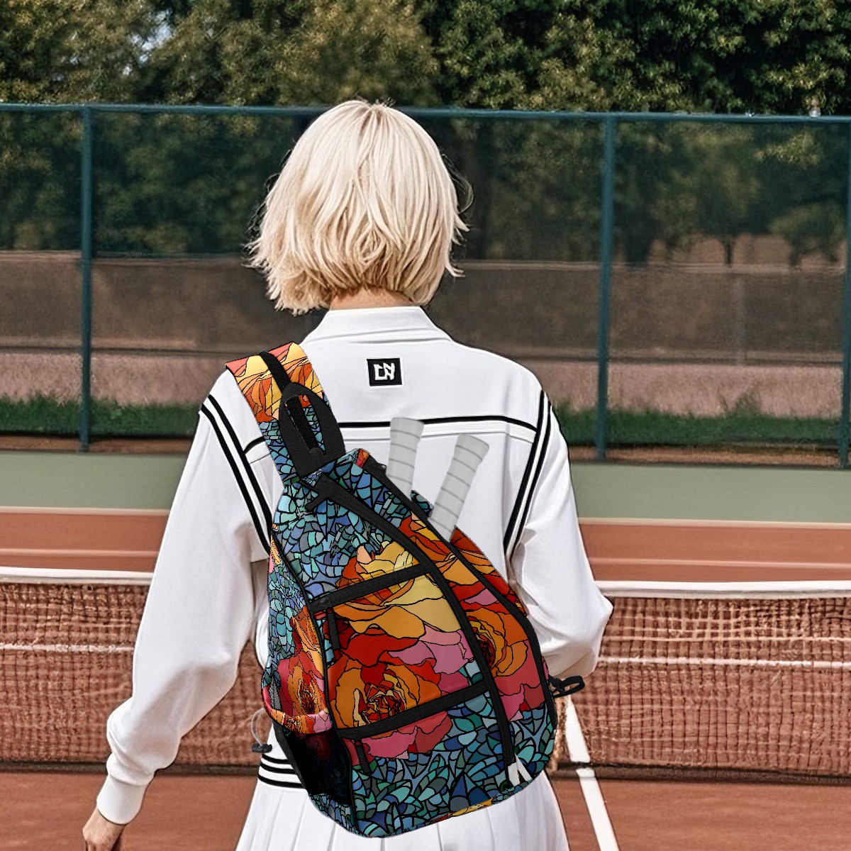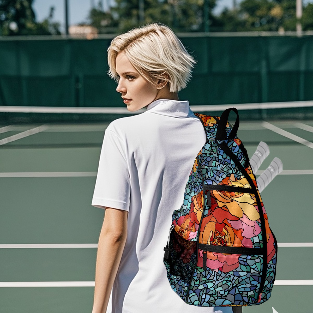 Multifunctional Pickleball Bag,Large Capacity Sports Pickleball Racket Bag, Water Bottle Holder and Fence Hook,Suitable for Both Men Women -Yellow Pink Flowers Blooming Rose Green Blue