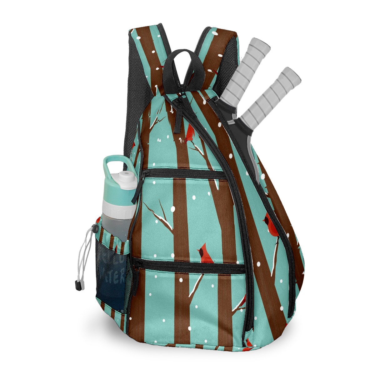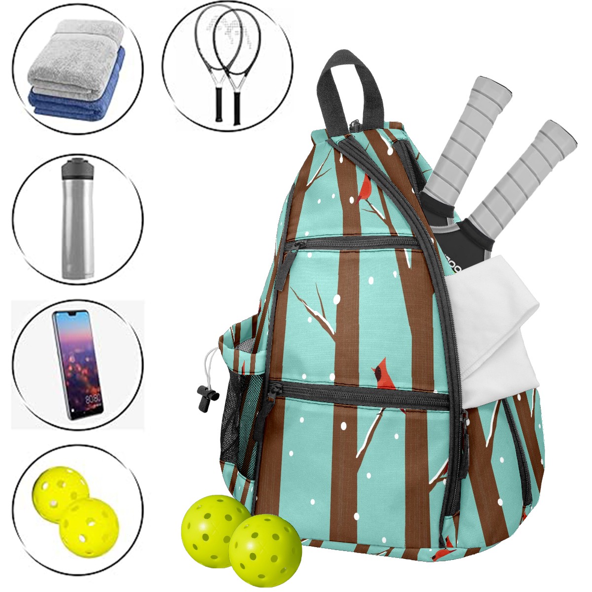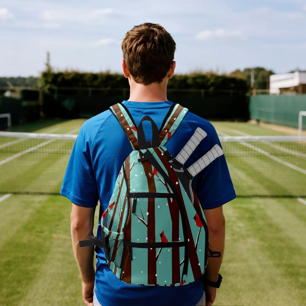 Multifunctional Pickleball Bag,Large Capacity Sports Pickleball Racket Bag, Water Bottle Holder and Fence Hook,Suitable for Both Men Women -Winter Birch Tree Snow Red Bird
