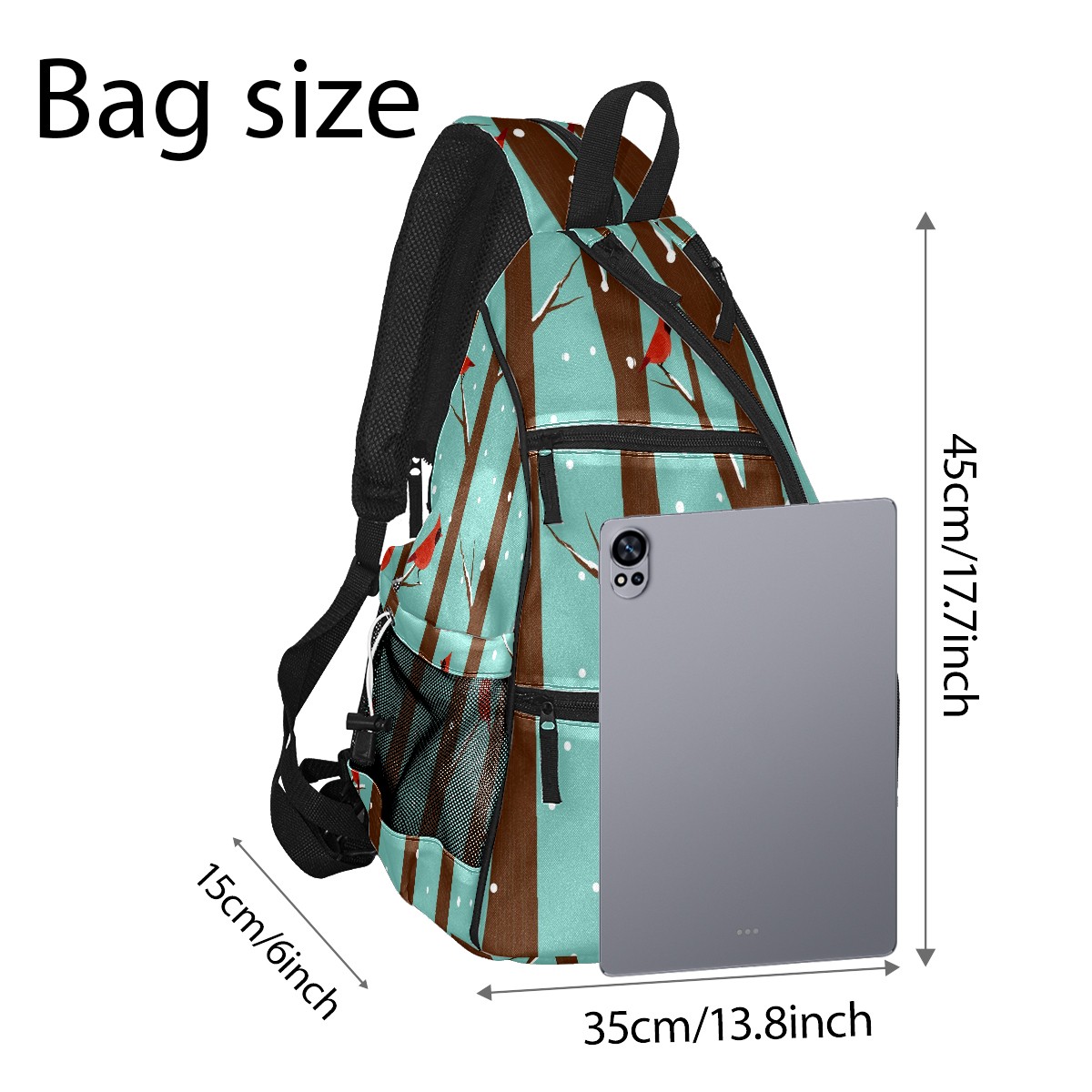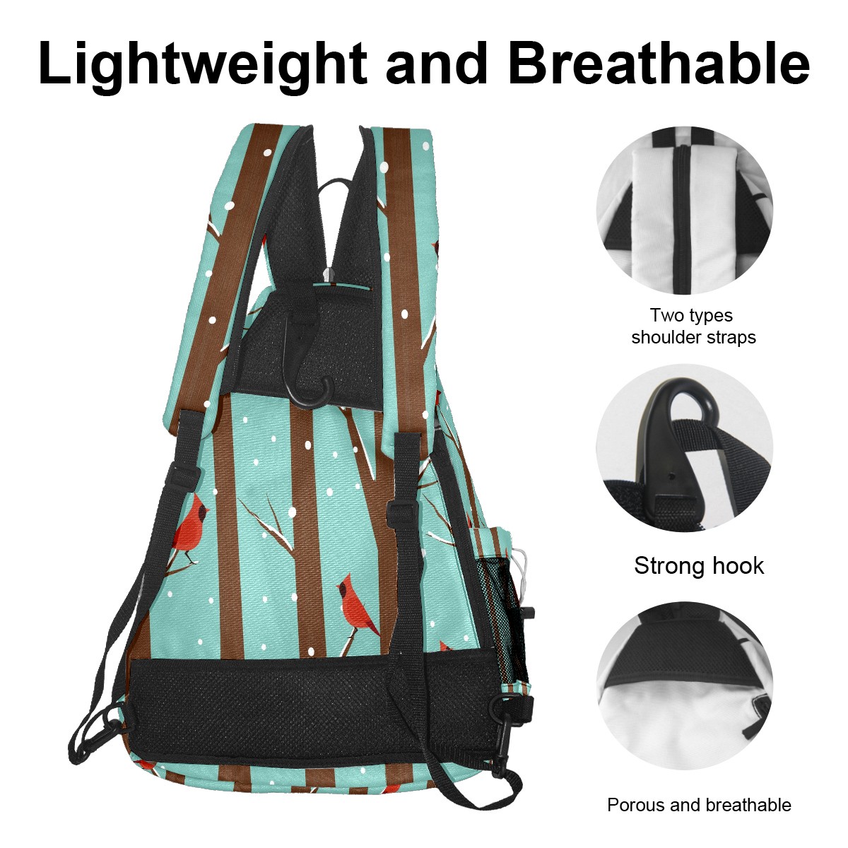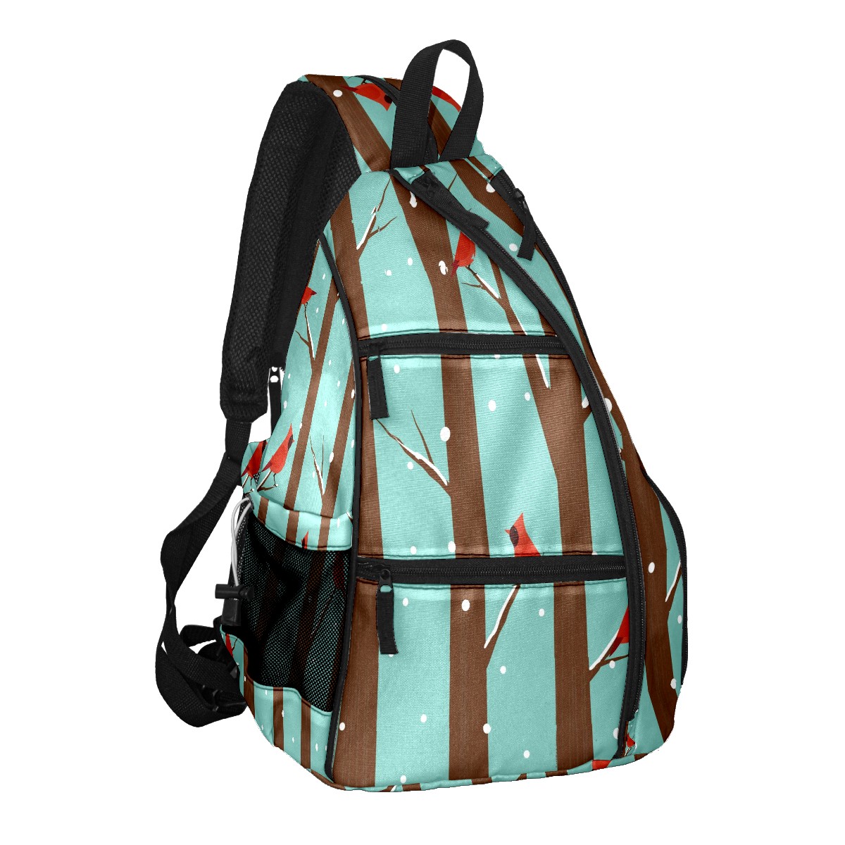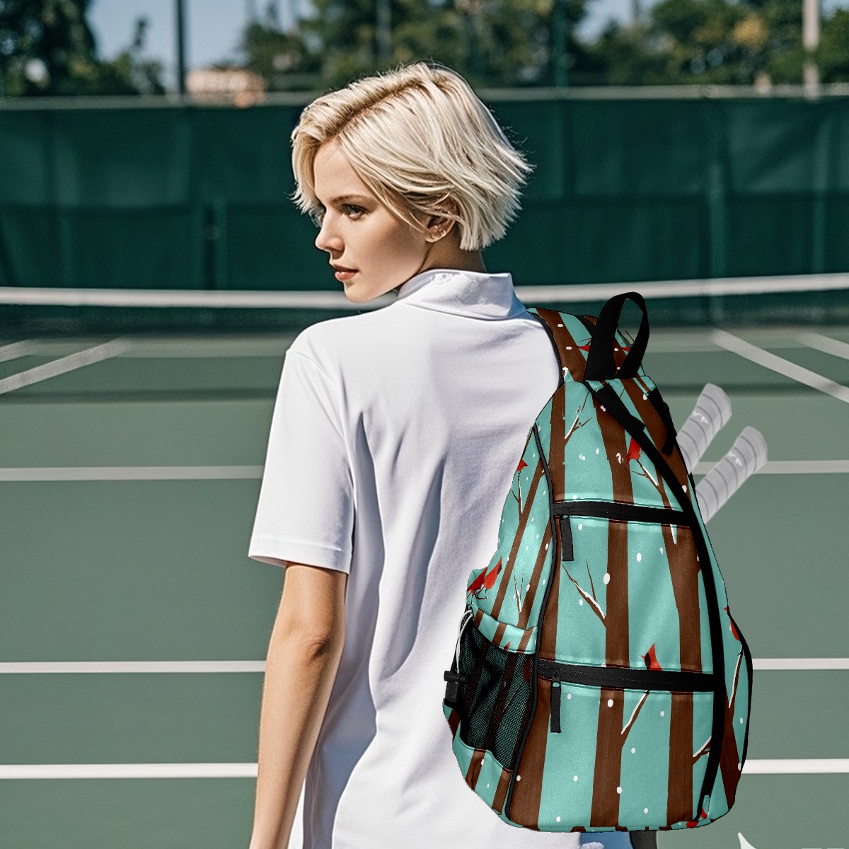 Multifunctional Pickleball Bag,Large Capacity Sports Pickleball Racket Bag, Water Bottle Holder and Fence Hook,Suitable for Both Men Women -Winter Birch Tree Snow Red Bird