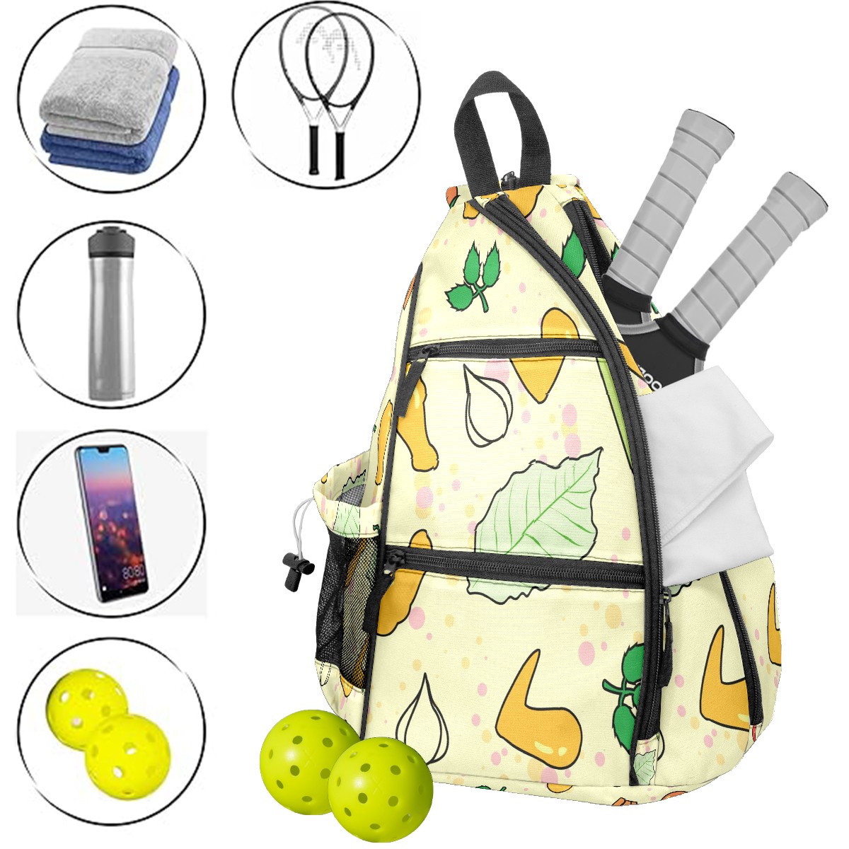 Multifunctional Pickleball Bag,Large Capacity Sports Pickleball Racket Bag, Water Bottle Holder and Fence Hook,Suitable for Both Men Women -Buffalo Wings Vegetables Tomato