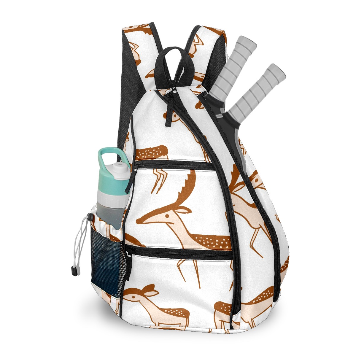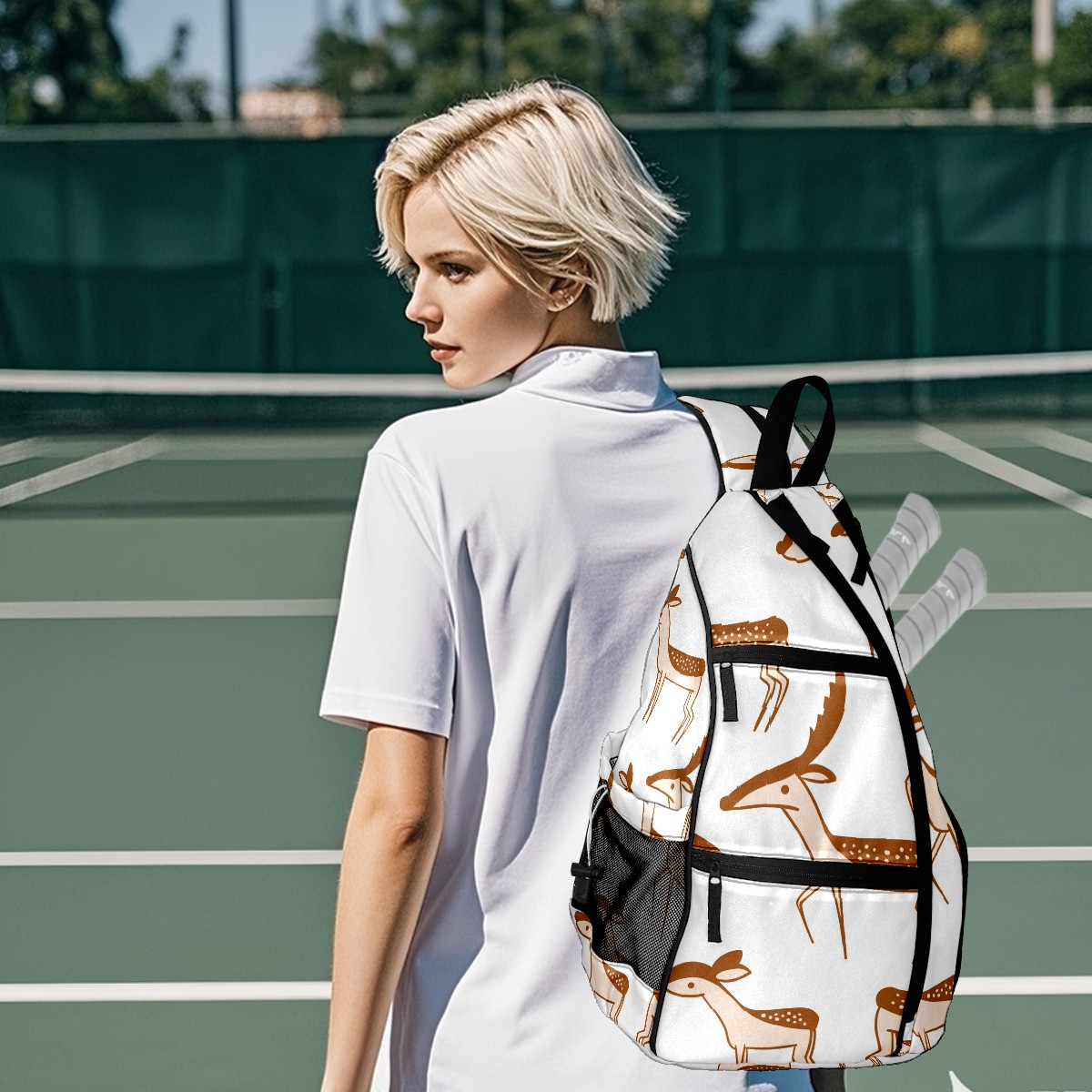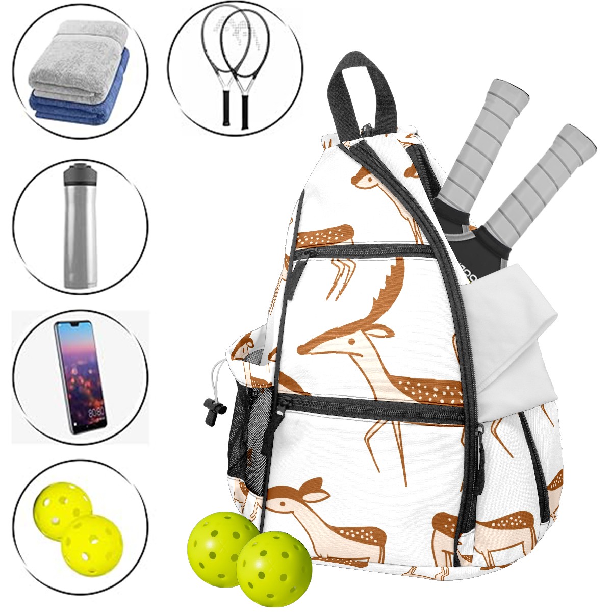 Multifunctional Pickleball Bag,Large Capacity Sports Pickleball Racket Bag, Water Bottle Holder and Fence Hook,Suitable for Both Men Women -Brown Deer Pattern Animal