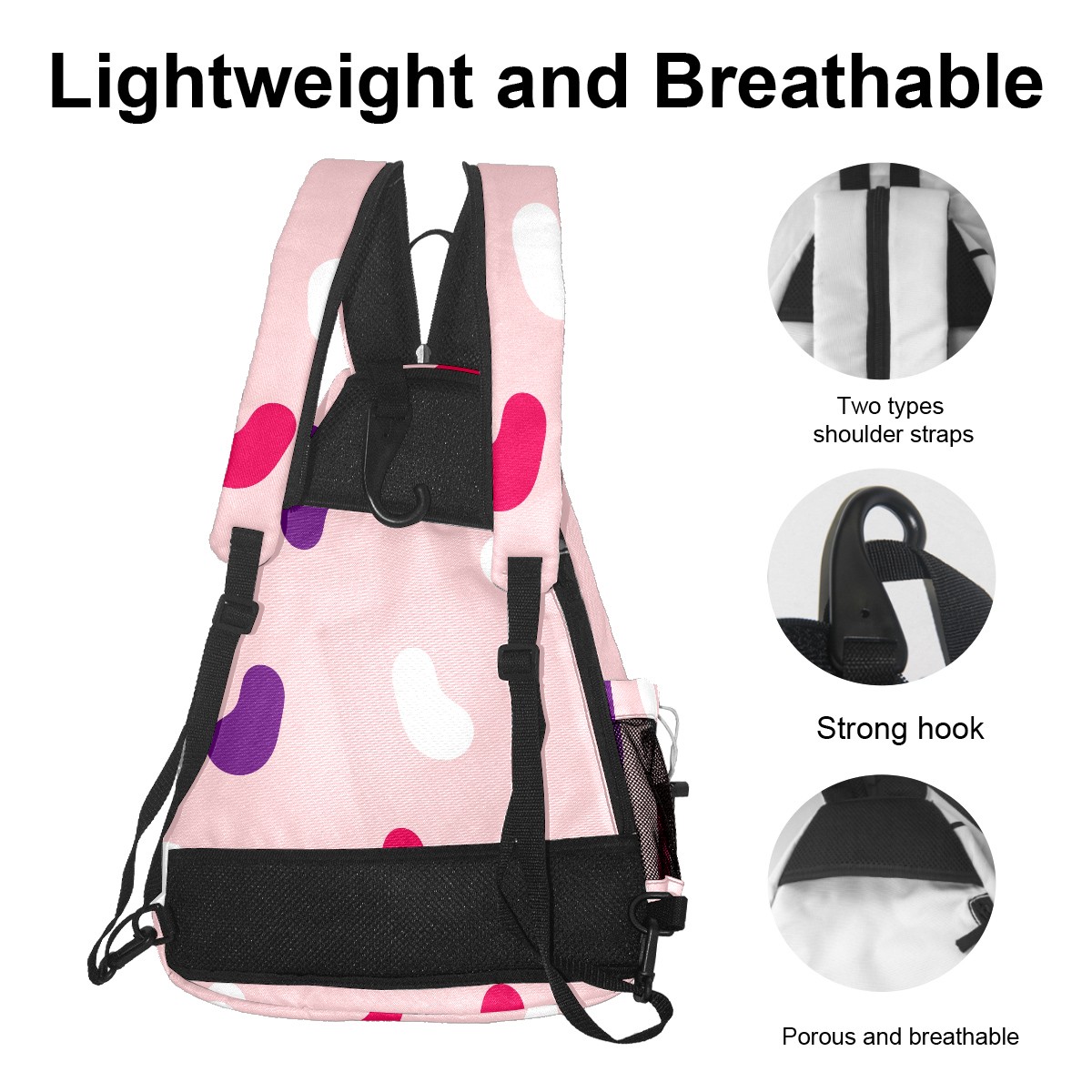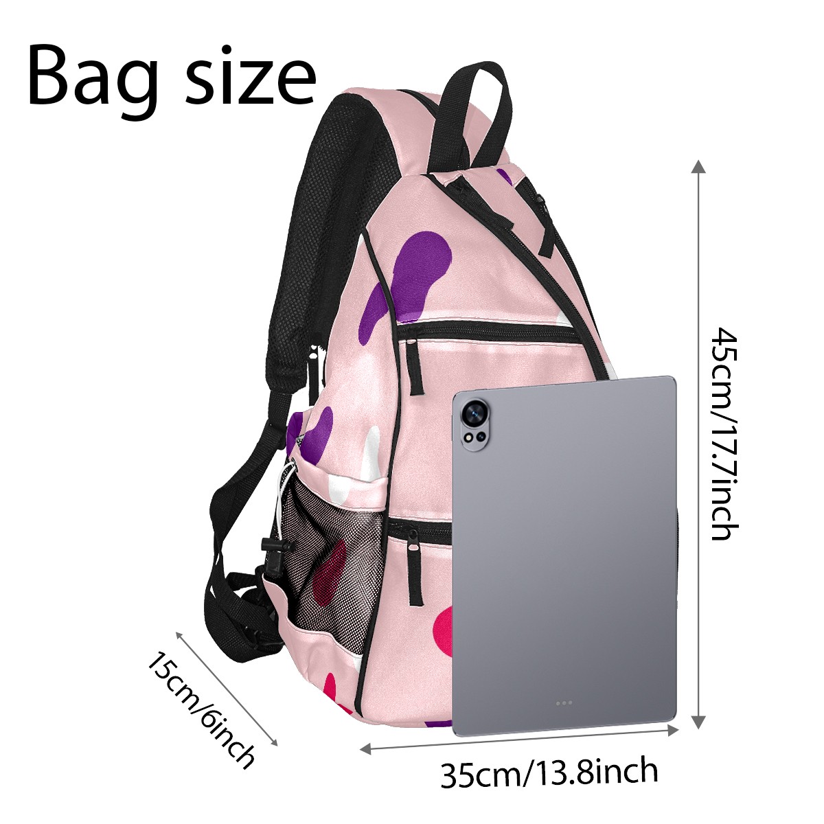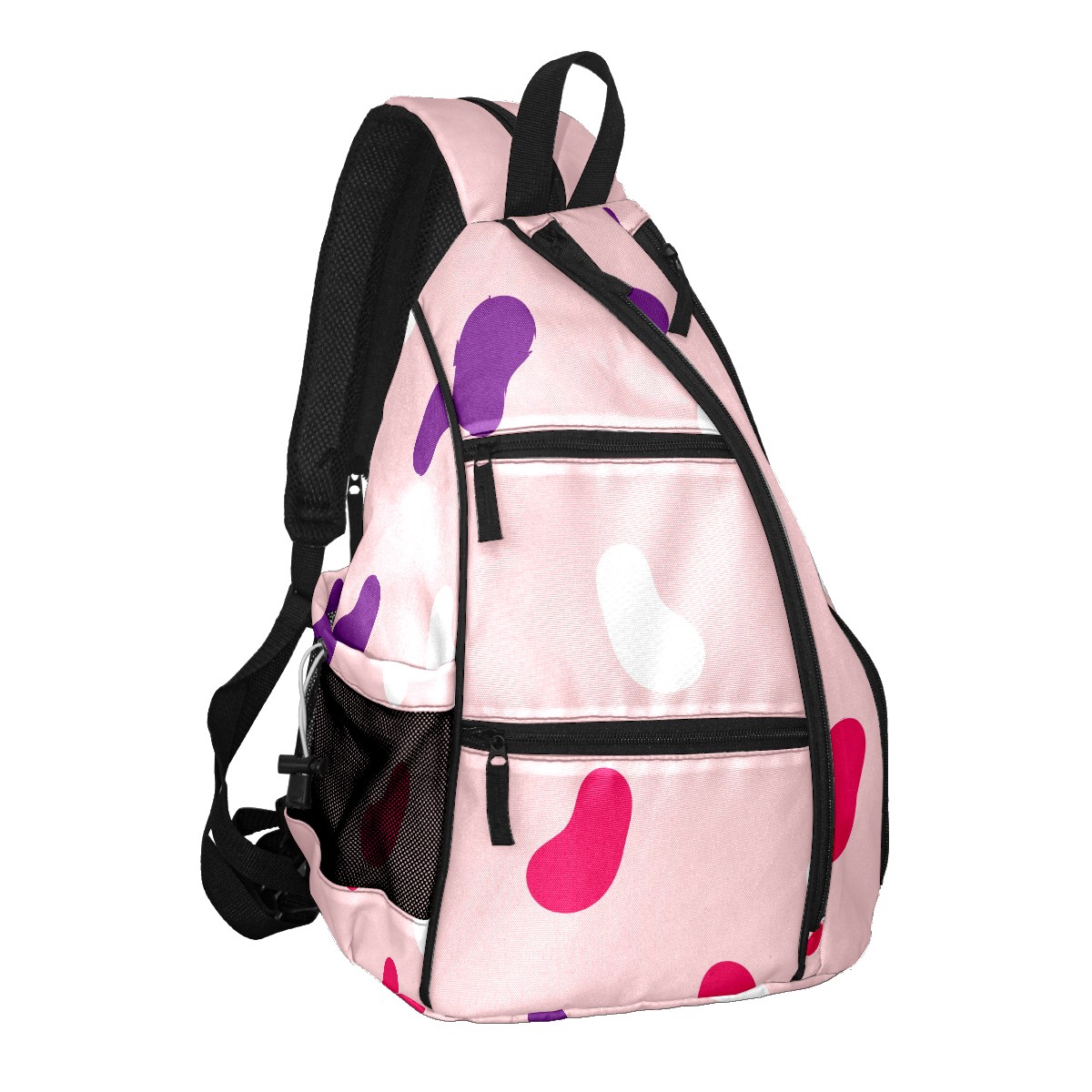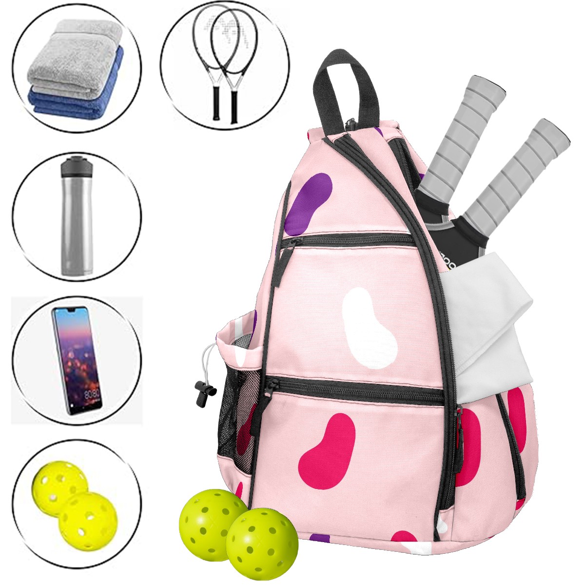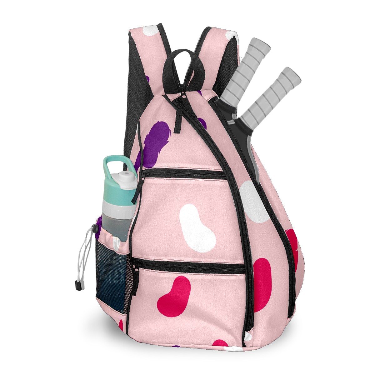 Multifunctional Pickleball Bag,Large Capacity Sports Pickleball Racket Bag, Water Bottle Holder and Fence Hook,Suitable for Both Men Women -White Purple Rosy Print Pink Background