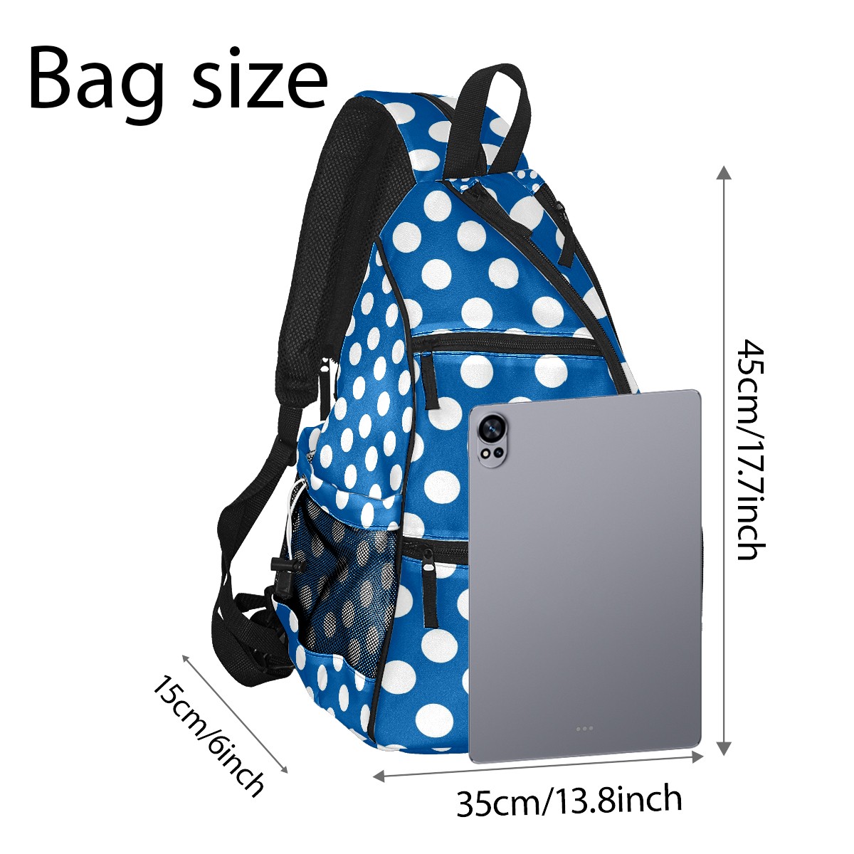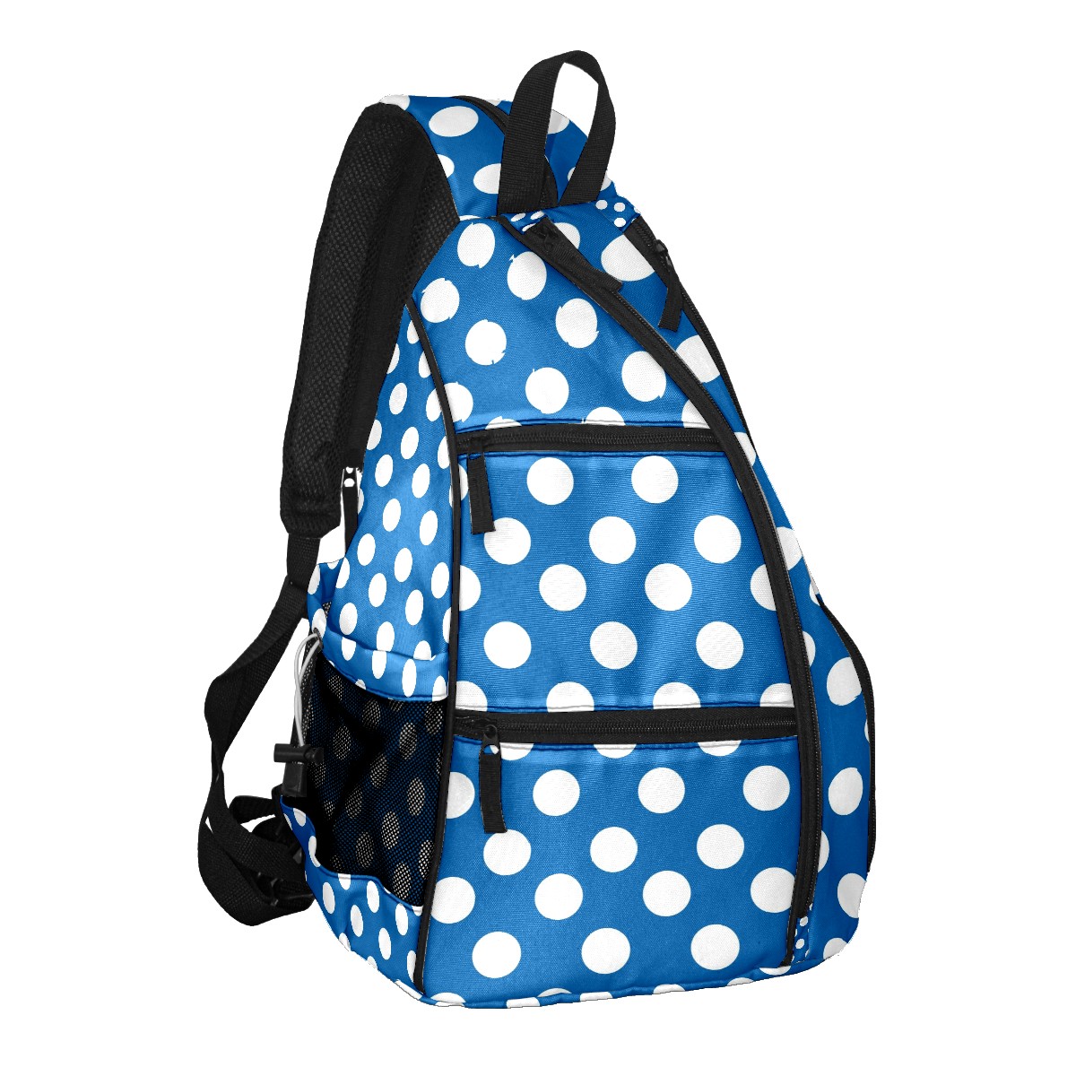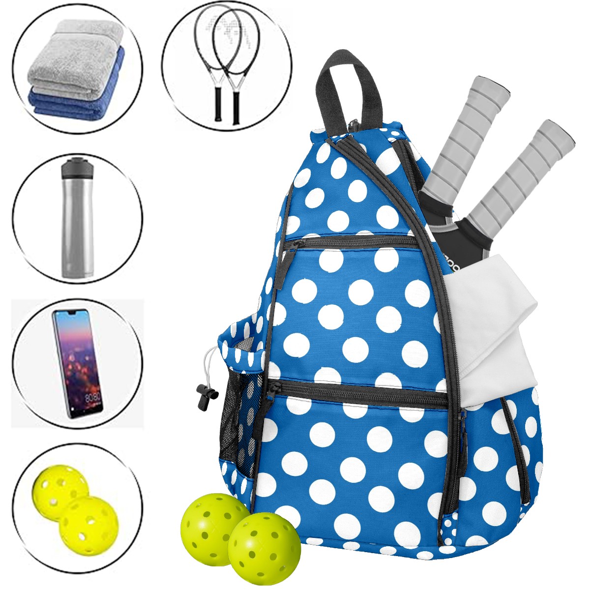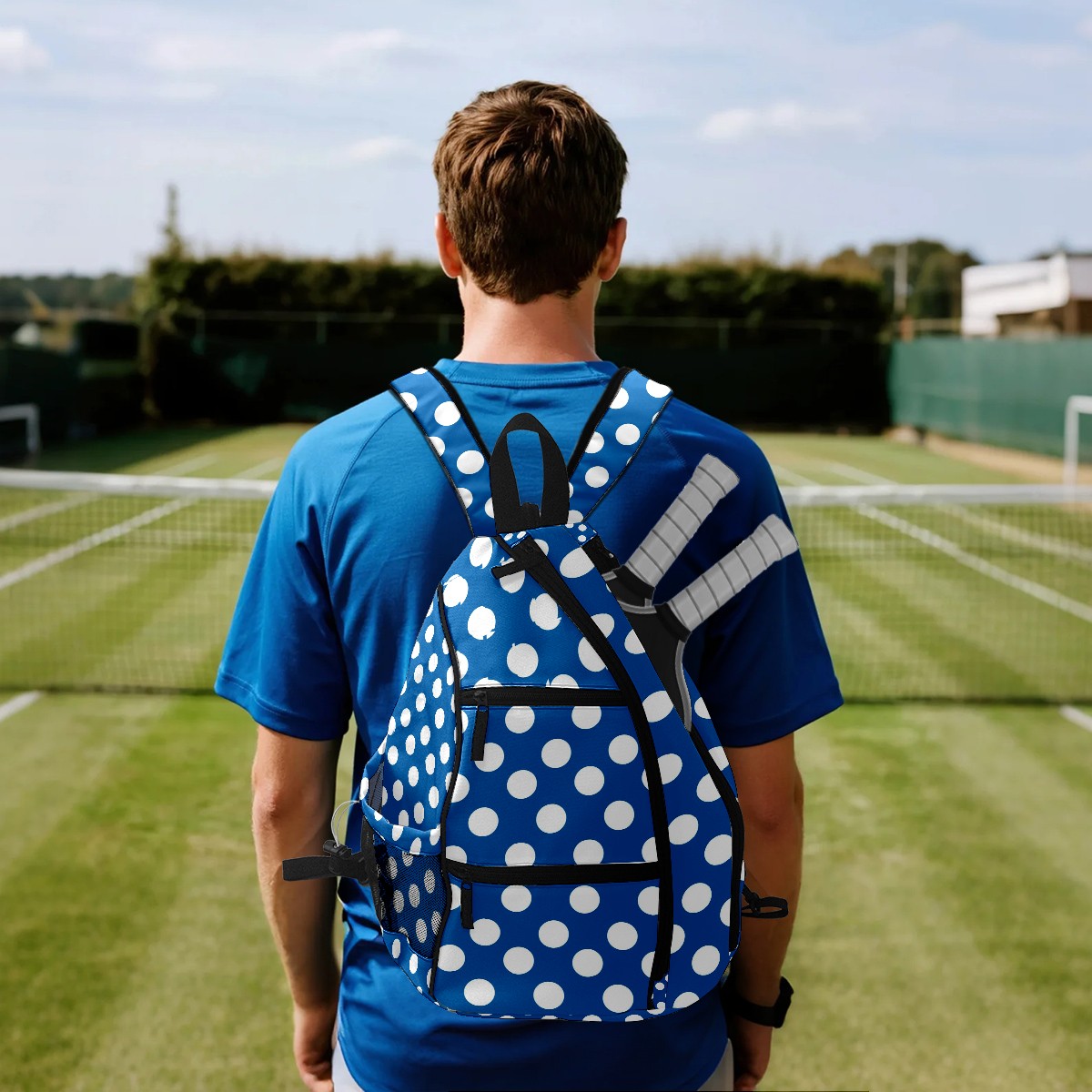 Multifunctional Pickleball Bag,Large Capacity Sports Pickleball Racket Bag, Water Bottle Holder and Fence Hook,Suitable for Both Men Women -White Dotted Pattern Blue Background