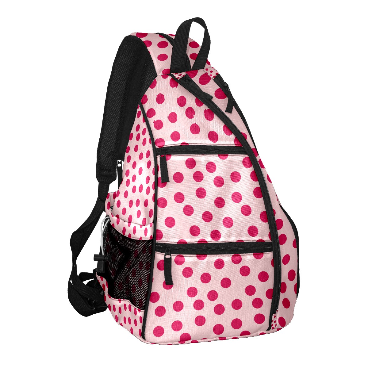 Multifunctional Pickleball Bag,Large Capacity Sports Pickleball Racket Bag, Water Bottle Holder and Fence Hook,Suitable for Both Men Women -Rosy Polka Dot Pink Background